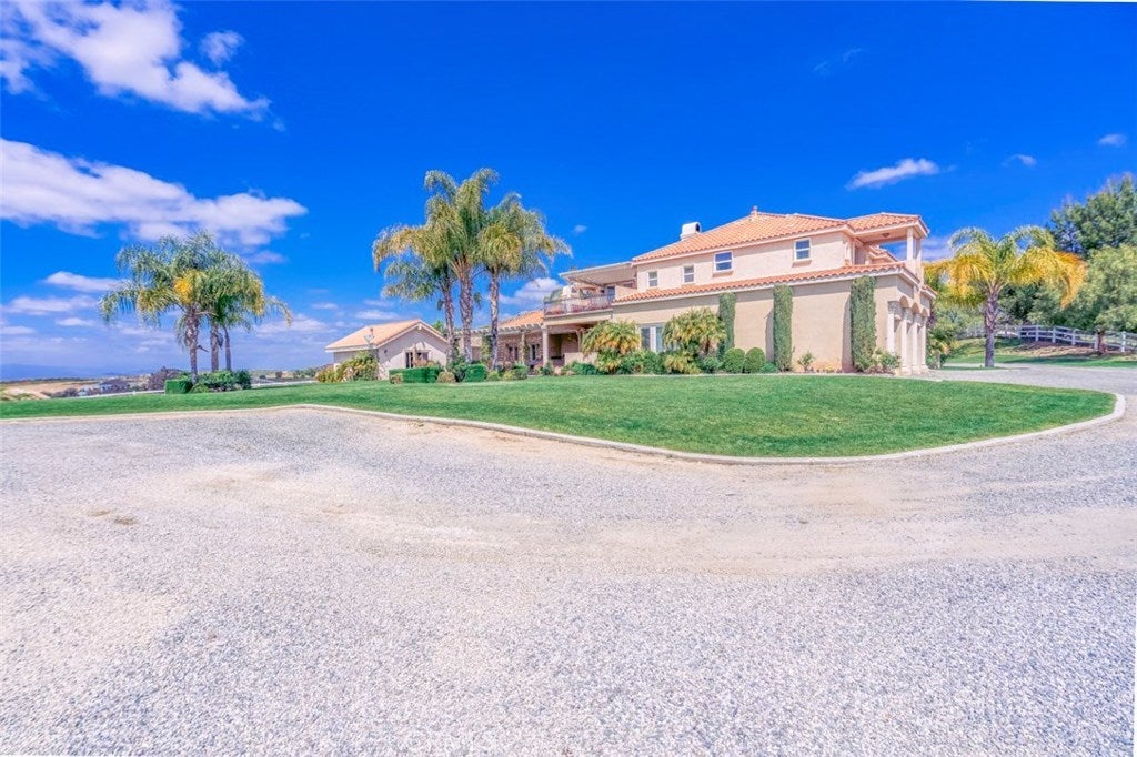 SPECTACULAR CUSTOM ESTATE with an AMAZING VIEW OF WINE COUNTRY. The view of HOT AIR BALLOONS RISING UP FROM THE VINYARDS BELOW in the morning & the SUNSETS in the afternoons are unique. LUXURY LIVING at its finest with a touch of COUNTRY LIVING & CITY LIVING in one. IMMACULATE MANSION w/ PAID SOLAR. As you walk thru the beautiful front doors, the grand FLOOR TO CEILING WINDOWS make you fall in love with this property. TRAVERTINE FLOORING & CROWN MOLDINGS THROUGHOUT. LUXURIOUS MASTER SUITE W/FIREPLACE, HEATED MASTER TUB/SPA W/LIGHT & MARBLE SHOWERS. OFFICE DOWNSTAIRS. 2 LAUNDRY ROOMS up & down, 2 FAMILY ROOMS up & down, 2 BARS up & down. GOURMET KITCHEN WITH TOP OF THE LINE APPLIANCES, GRANITE COUNTERS & WINE COOLER. 3 BEDROOM SUITES up w/LARGE CLOSETS. LARGE LOFT with SUNDECK UPSTAIRS with GORGEOUS VIEWS. CENTRAL VAC & DUSTPAN IN BASEBOARDS. Enjoy entertaining with an amazing OUTDOOR KITCHEN/BBQ AREA, OUTSIDE FIREPLACE & COVERED PATIO, pre-wired for a pool/spa. HOT WATER CIRCULATING SYSTEM. An amazing separate GAME ROOM & BAR w/WOOD BURNING STOVE, and a DECK w/TRACTOR SEATING to enjoy the gorgeous SUNSETS. ADDITIONAL HUGE 1600 SQ. FT. (40X40) FREE STANDING, HIGHLY UPGRADED R.V. GARAGE/WORKSHOP FITS MOST MOTORHOMES OR TRAILERS. 3 A/C ZONES. GARAGE PARKING FOR 9 CARS. Another separate STORAGE BARN 28'X40' with two 8'x40' STORAGE CONTAINERS. ALL FENCES are WHITE VINYL. Variety of FRUIT TREES. ROOM FOR HORSES & all other TOYS. METICULOUSLY BUILT with PERFECTION EVRYWHERE