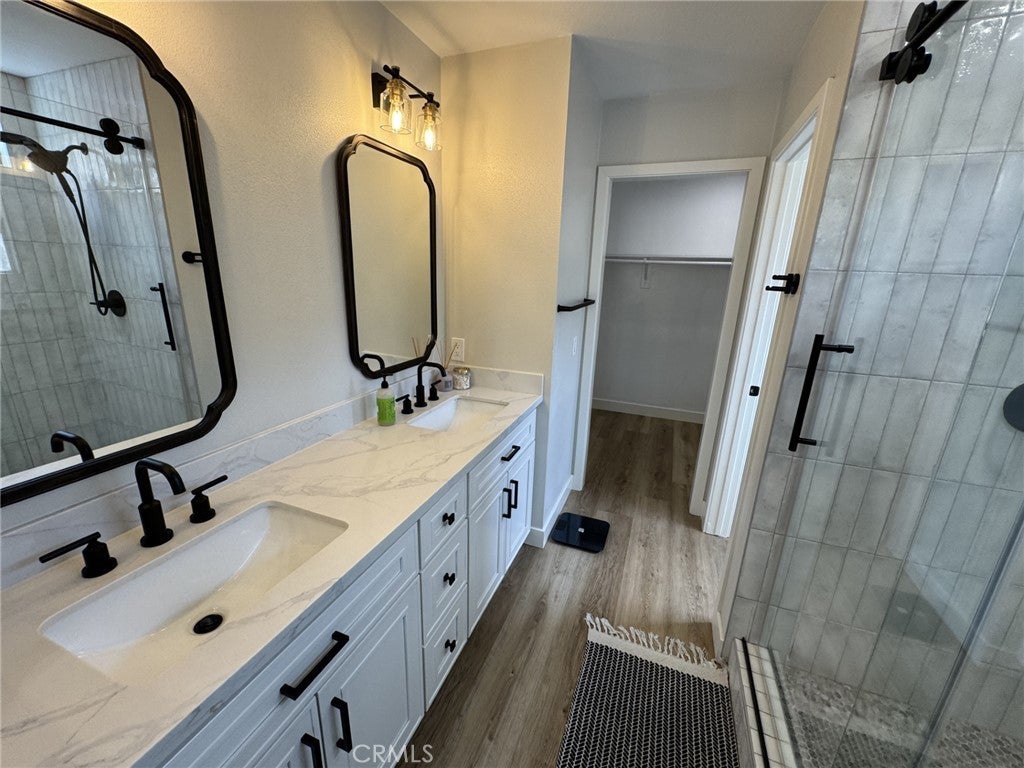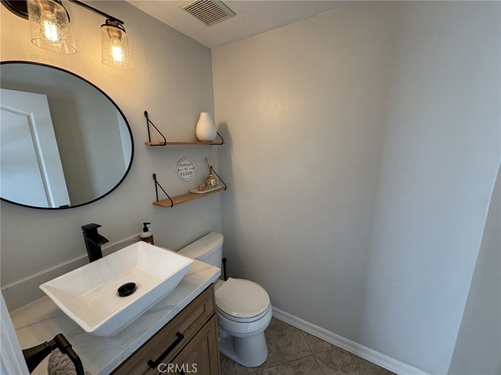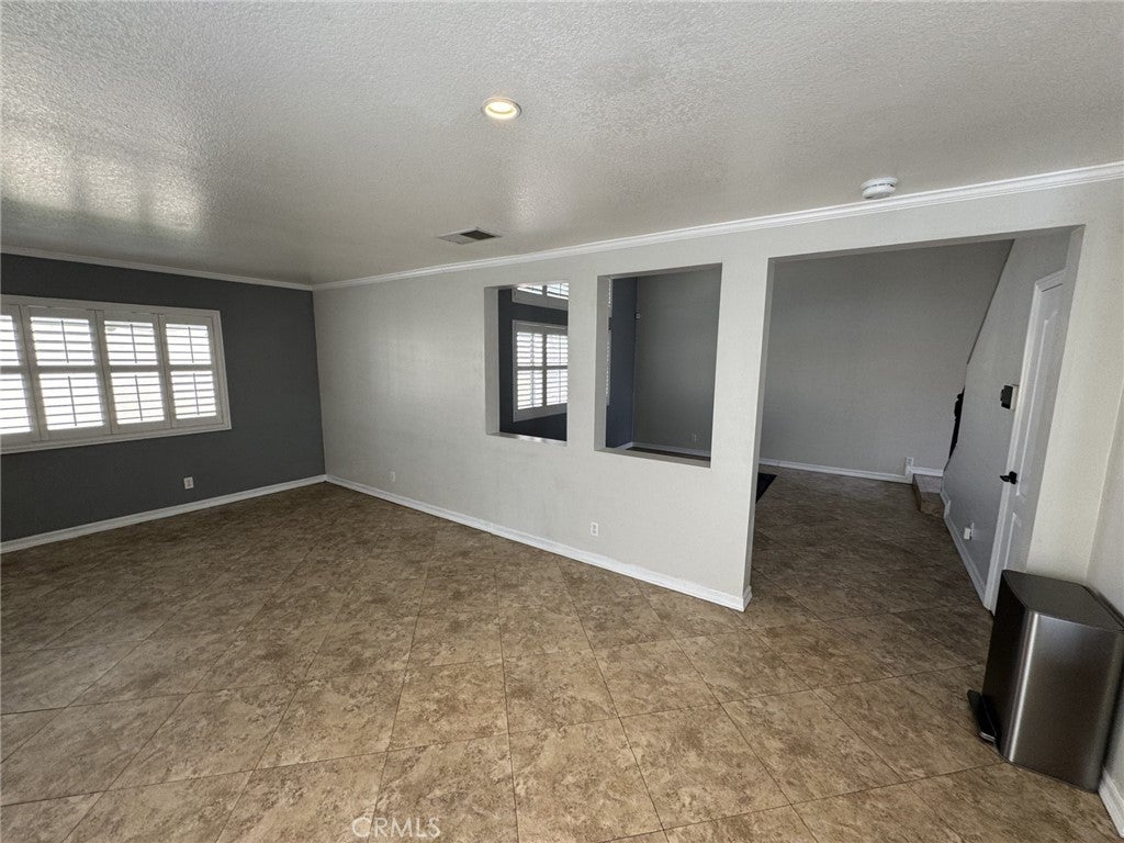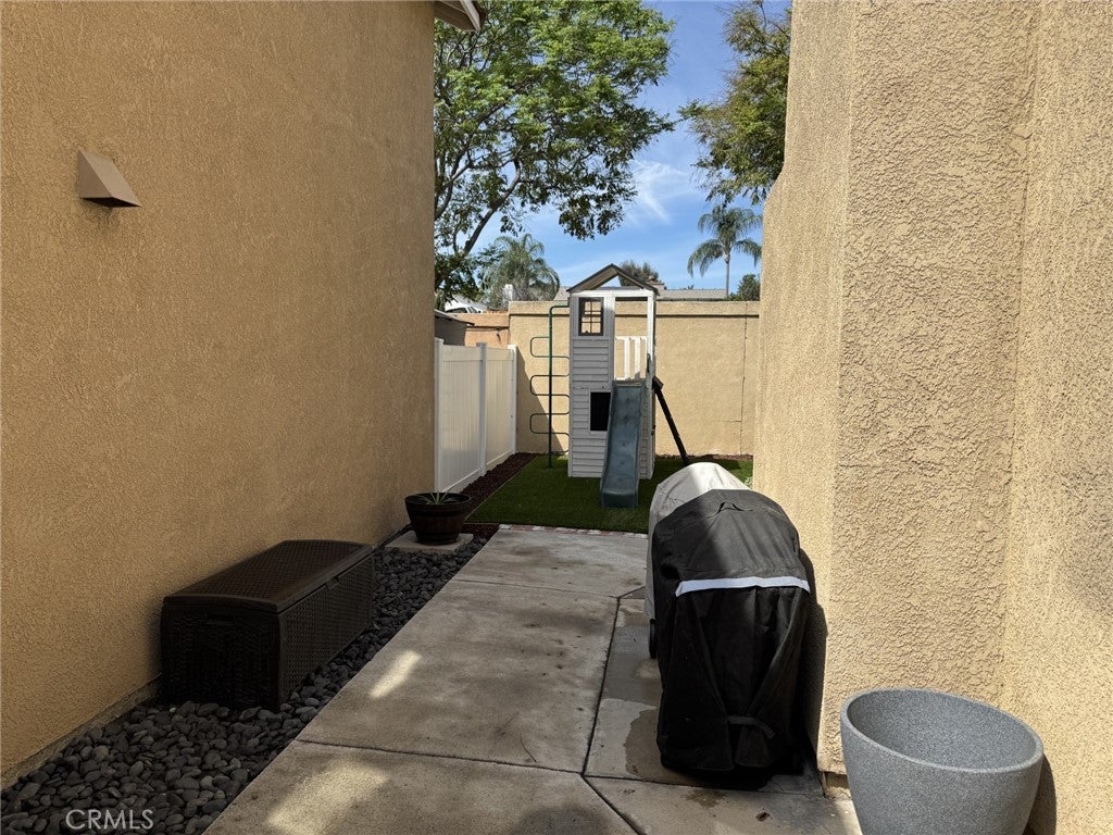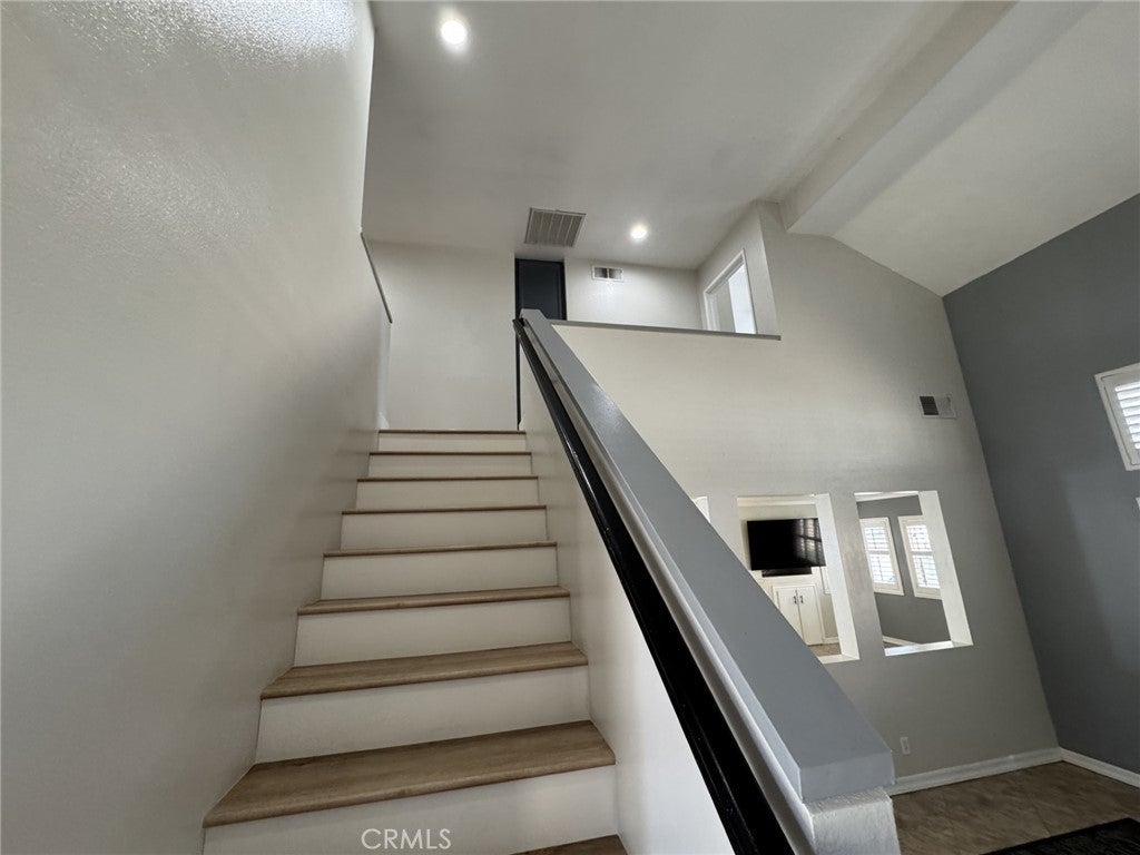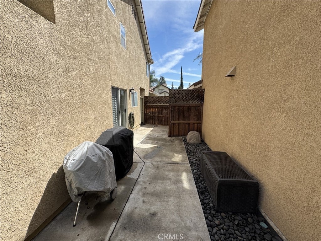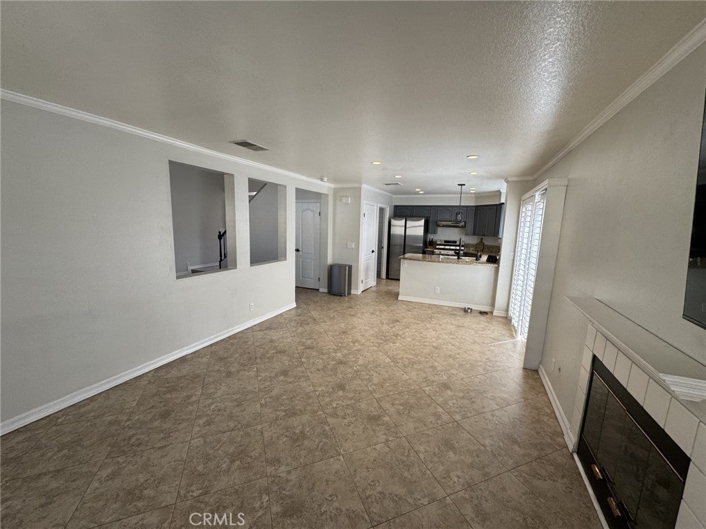 Welcome to this cozy two-story home located in the gated community of Parkside Green. Upon entering, you are greeted by a tiled entryway that steps down into the formal living room, featuring 20-inch ceramic tile flooring, cathedral ceilings, large windows, and decorative wall niches that create an open and inviting feel while leading into the relaxing family room. The family room offers a warm and comfortable atmosphere with a cozy fireplace with mantle, ceramic tile flooring, and wood shutters, making it the perfect space to relax or entertain. The kitchen is beautifully upgraded with stainless steel appliances, granite countertops, and a granite backsplash, and is conveniently located next to the laundry room. Step outside to enjoy the private backyard, which includes partial block wall fencing for added privacy. All bedrooms are located upstairs, where you can enjoy a balcony-style overlook to the living room below, enhancing the home's open layout. The home also features new laminate wood flooring throughout. The primary bedroom includes a walk-in closet, and all three bathrooms have been recently upgraded and remodeled, offering a modern and stylish look. Additional upgrades include crown molding, upgraded baseboards, and paneled interior doors throughout the home. Residents of Parkside Green enjoy a well-maintained gated community with three security gates, a park, basketball court, jungle gym, and large grassy areas for recreation. Ideally located in the city of Corona, this home offers convenient access for commuters traveling to Orange County and Los Angeles County.