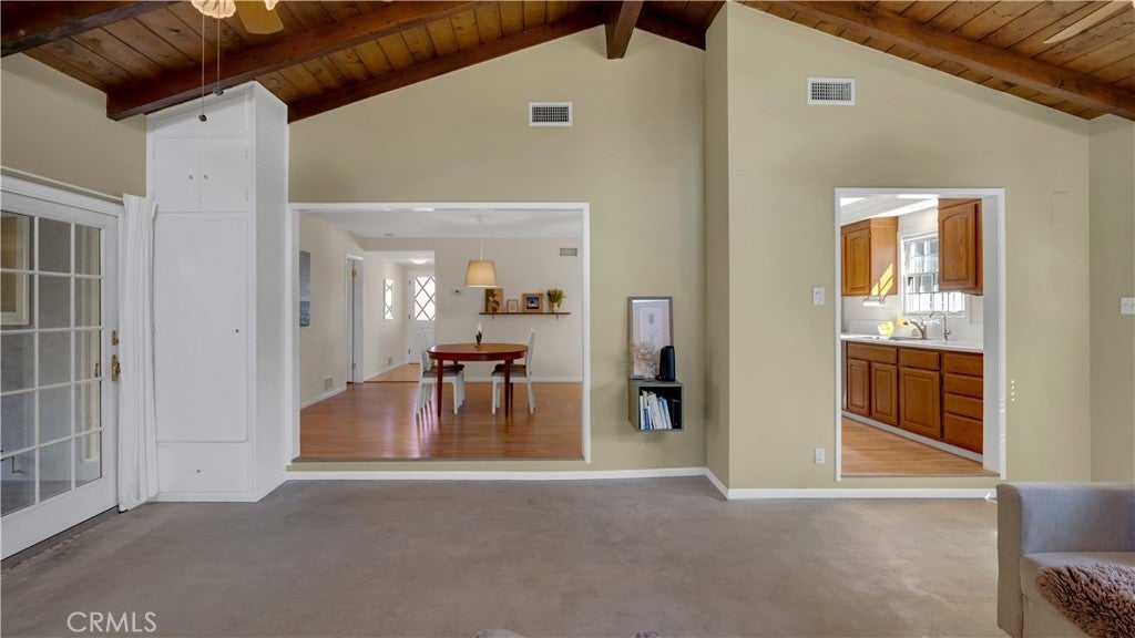 • Interior FeaturesBeamed Ceilings, Breakfast Bar, Cathedral Ceiling(s), Separate/Formal Dining Room, Open Floorplan, Quartz Counters, All Bedrooms Down, Galley Kitchen, Main Level Primary, Primary Suite