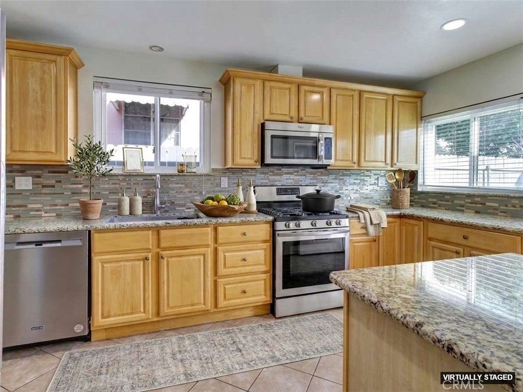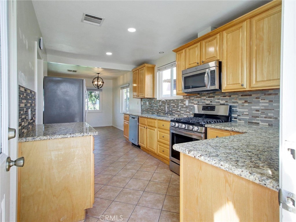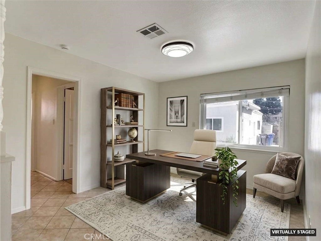Spacious and well-maintained 2-bedroom home with a versatile bonus room—ideal for a home office, den, or potential third bedroom—offering 1,264 sq ft of comfortable living space on a generous 6,543 sq ft lot. This inviting property features a bright and open layout, complete with a cozy gas fireplace, central heating and air, and ceiling fans throughout for year-round comfort. The remodeled kitchen features granite countertops, stainless steel appliances, and ample cabinetry—perfect for both everyday living and entertaining. The home includes one full bathroom and one three-quarter bath, thoughtfully designed for functionality and convenience. A major highlight is the fully permitted 364 sq ft ADU studio, complete with its own bathroom—ideal for extended family, guests, or potential rental income. Additional features include a two-car garage with laundry hookups and a spacious backyard adorned with mature fruit trees, including lemon and orange—creating a perfect outdoor retreat. This property offers versatility, comfort, and income potential—don’t miss this incredible opportunity!