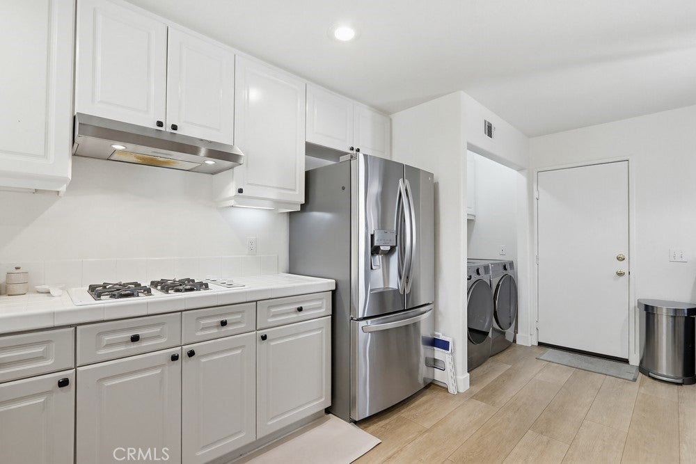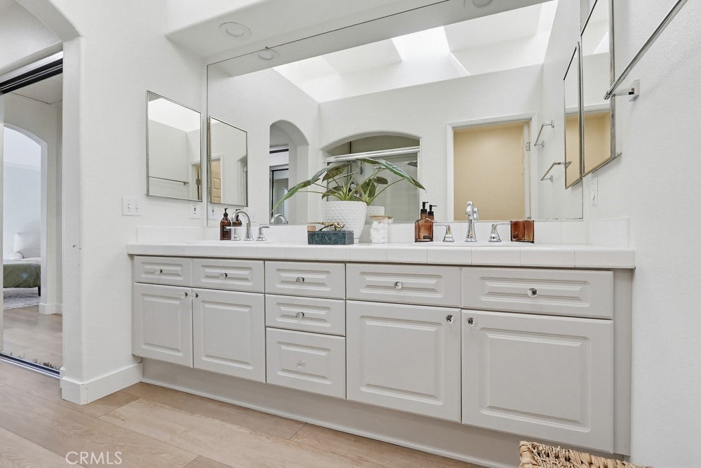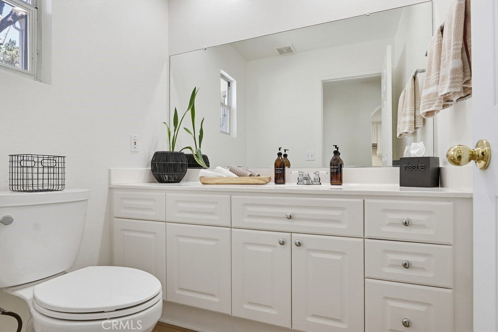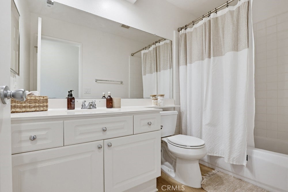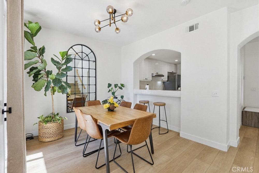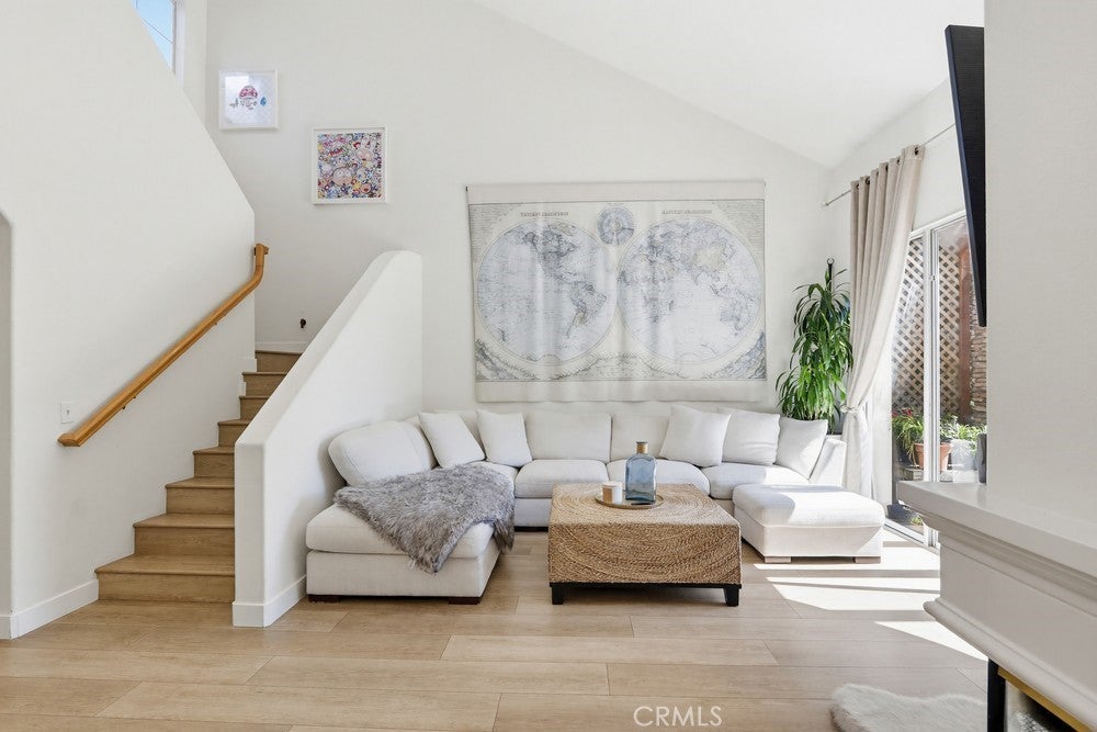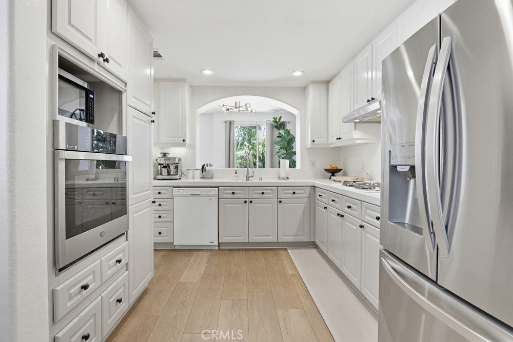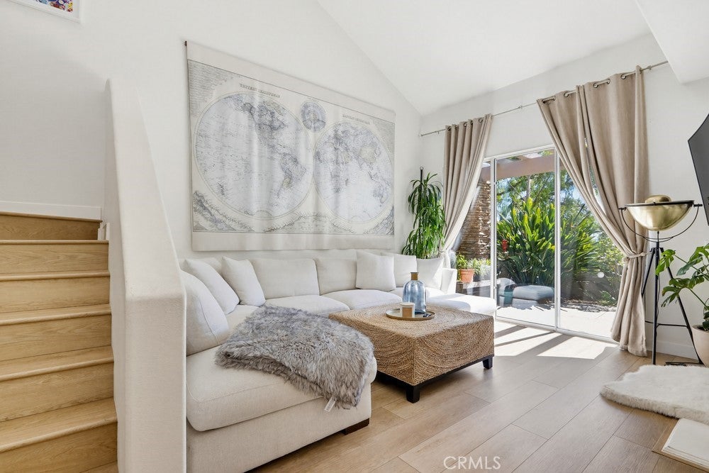 Welcome to your dream home nestled in the scenic hills of Aliso Viejo. This beautifully appointed 3-bedroom, 2.5-bath residence offers an exceptional blend of comfort, convenience, and picturesque surroundings. Step inside to a bright and airy living room, where soaring ceilings and abundant natural light create an inviting, open atmosphere. The thoughtfully designed main level features a seamless open-concept layout connecting the living room, dining area, and kitchen—perfect for both everyday living and entertaining. The kitchen is ideally positioned with a breakfast bar that opens to the dining space, while also providing direct access to the laundry area, which accommodates full-size washer and dryer units, and the attached two-car garage for added convenience. The garage is pre-wired for EV charging. Upstairs, you’ll find three well-proportioned bedrooms offering flexibility for a home office, guest room, or additional living space. The spacious primary suite is a true retreat, highlighted by vaulted ceilings, large, south-facing windows, and oversized dual mirrored closets. The en-suite primary bathroom features dual vanities, a private water closet, and a large skylight that fills the space with natural light throughout the day. A standout feature that runs throughout the home is the newly installed wood-toned vinyl plank flooring throughout—stylish, durable, and incredibly easy to maintain, making it ideal for busy lifestyles or pet owners. Enjoy indoor-outdoor living with a private back patio accessible from both the living and dining rooms. Surrounded by lush hillside landscaping and mature trees, this tranquil space also offers charming peek-a-boo views of the surrounding hills. Residents of the desirable La Mirage community enjoy access to resort-style amenities, including a private pool, spa, BBQ area, and tennis court—all nearby within the well maintained complex. Ideally located near award-winning schools, scenic hiking and biking trails in Aliso and Wood Canyons Wilderness Park, recreational facilities at Soka University, and the shopping, dining, and entertainment of Aliso Viejo Town Center, this home truly captures the best of South Orange County living.