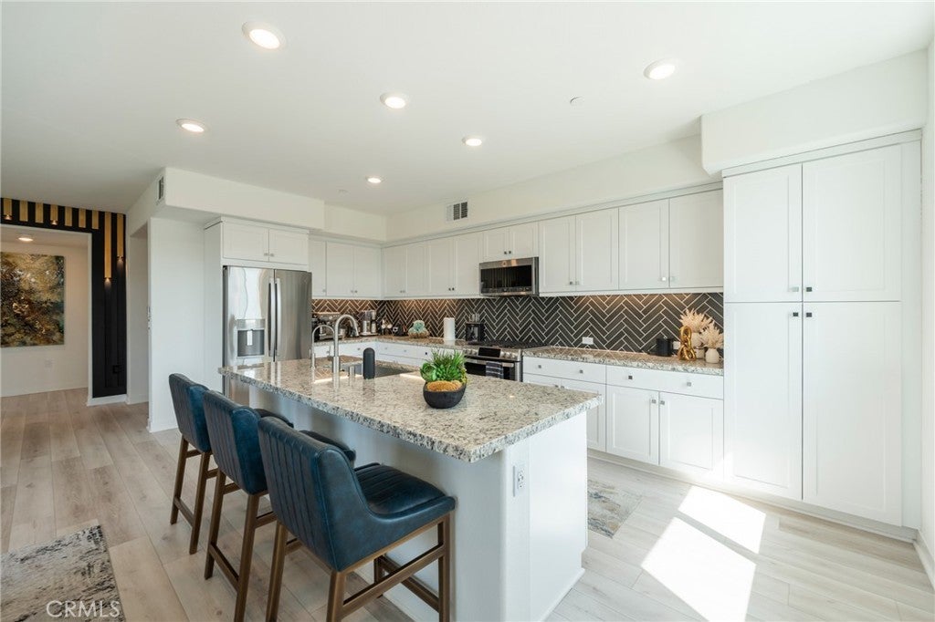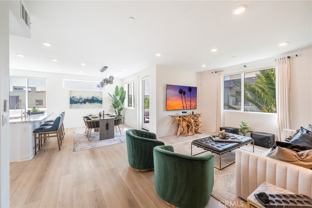 Modern Luxury Living at Alia at A-Town! Experience the pinnacle of contemporary living in this absolutely incredible, corner-unit condo, located at 1867 South Union, Anaheim. Built in 2022, this 1,691 sq. ft. residence located on the top-floor of an interior building within the community offers an expansive, single-level layout defined by high-end designer finishes, motorized shades, and an abundance of natural light in every room. Your journey begins through a private, secure entrance where an elevator whisks you directly to your third-floor sanctuary. The heart of the home is a sprawling open-concept floor plan, featuring a gourmet kitchen with a massive eat-in island bar that flows seamlessly into the formal dining and living areas. Step outside onto your spacious private balcony to enjoy serene views of the sparkling community pool. The home boasts three perfectly sized bedrooms, including a luxurious primary suite complete with a spa-like ensuite bathroom and a walk-in closet. For added convenience, the unit includes a two-car detached garage and a reserved permit-only parking space for your third car (annual permit). Beyond your front door, the lifestyle is unmatched. You are perfectly positioned within walking distance of the "hip" soul of A-Town and the transformative OC Vibe development. From the excitement of the Honda Center, Angel Stadium, and Disneyland to world-class shopping and dining, everything North Orange County is buzzing about is just a short stroll away. Located in the heart of Orange County, access to central and south county is just a few minutes away with quick access to three major freeways, the 5, the 57, and the 22. Major destinations are oh-so-close: only 12 minutes to John Wayne Airport and Irvine Business Complex, 14 minutes to South Coast Metro, and 36 minutes to LAX. This is a rare opportunity to own a top-floor, corner residence with courtyard views in one of Anaheim’s most exciting growth corridors. Premier Community Amenities... Private Onsite Pool & Jacuzzi: Exclusive access to resort-style relaxation. Aloe Greens Park: Massive open green spaces located directly adjacent to the community. Family-Friendly: Onsite playground for the little ones. Social Spaces: Dedicated picnic and BBQ areas perfect for weekend gatherings.