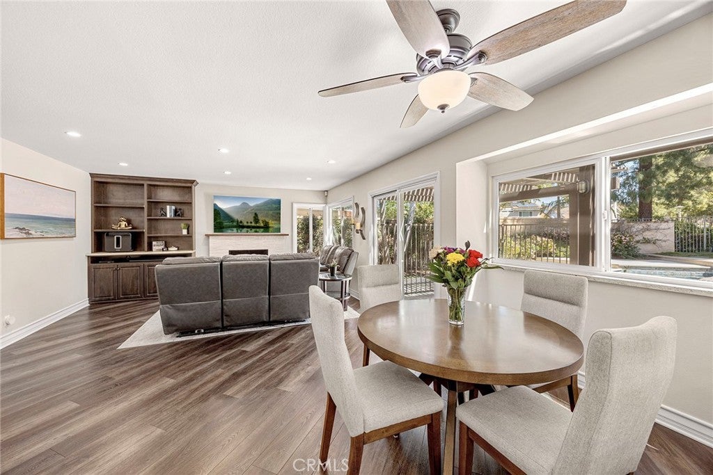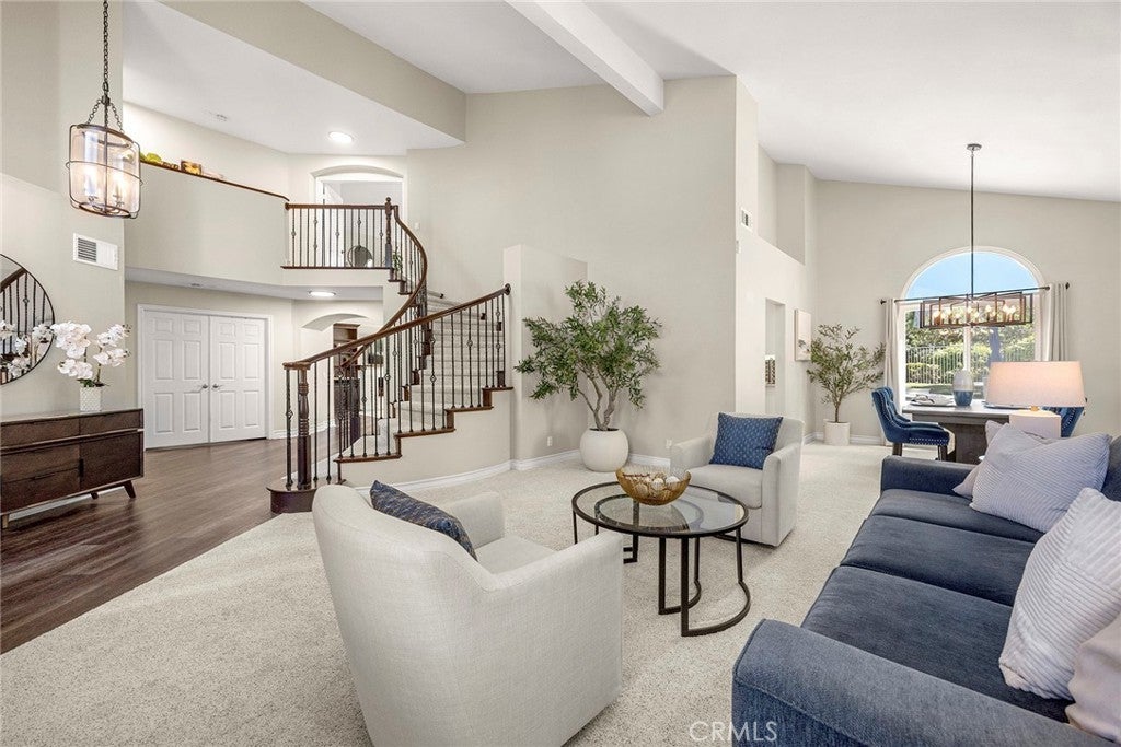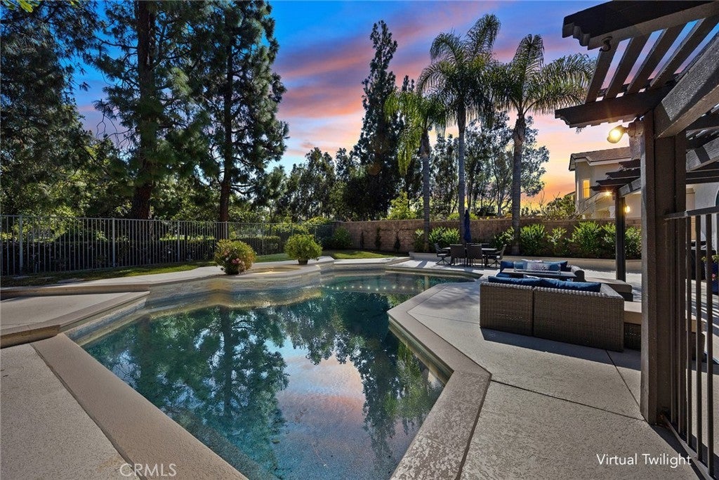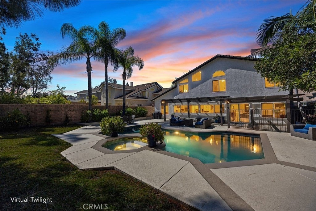 Welcome to this move-in ready 4-bedroom, 3-bathroom home located in the desirable Santiago Hills community of Cowan Meadows in the City of Orange. With a functional layout, inviting living spaces, and thoughtful updates throughout, this home offers comfort and flexibility for a variety of lifestyles. A gated walkway leads to custom double doors that open into a welcoming foyer with a curved staircase. The living and formal dining areas feature vaulted ceilings, creating a bright and open environment. Interior upgrades include new carpet, new vinyl flooring, refreshed kitchen cabinetry, and updated bathrooms with new vanities, sinks, fixtures, toilets, and finishes. The kitchen features quartz countertops and opens directly to the family room, complete with a fireplace—creating a central gathering space for everyday living. Sliding access to the backyard provides a seamless indoor-outdoor connection, ideal for hosting and enjoying time at home. The backyard offers a covered patio and a saltwater pool with a pebble finish, updated tile, heater, and filter—providing a great setting for outdoor enjoyment. A downstairs office provides flexible living space and may be converted to a bedroom. Conveniently located near parks, dining, shopping, and outdoor recreation, including nearby nature trails and open spaces. This home is situated in a well-established Orange community with access to a variety of local amenities.