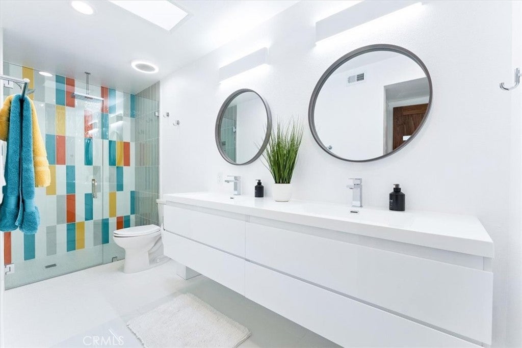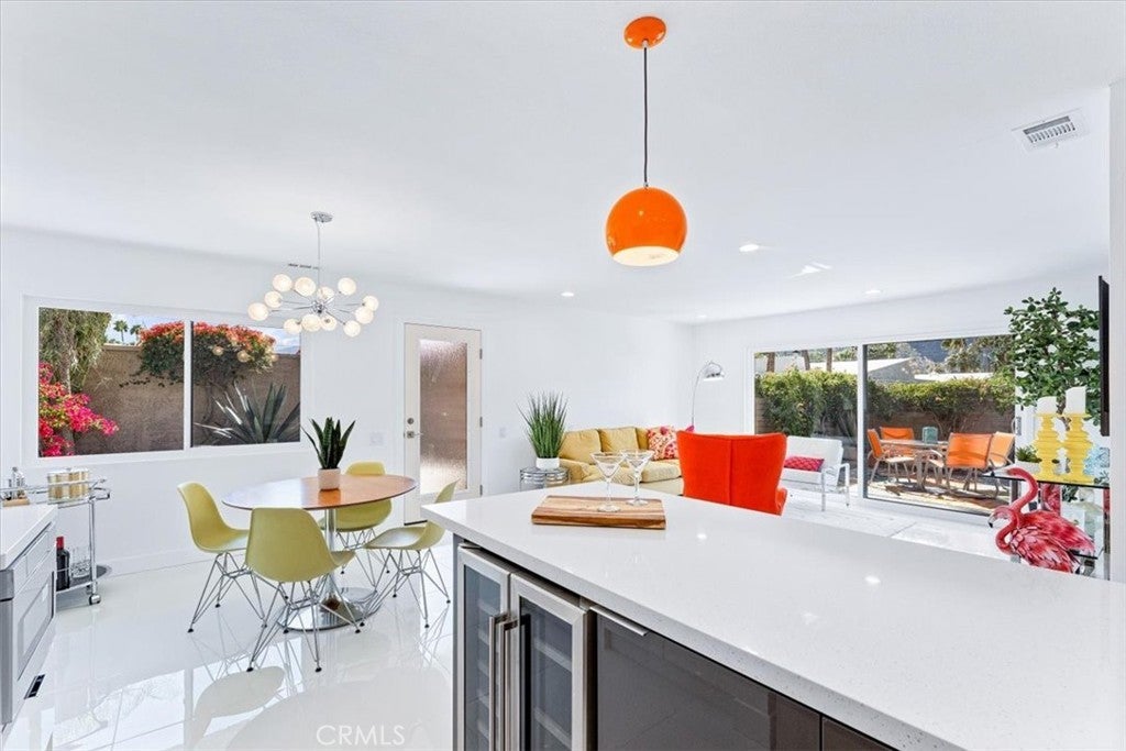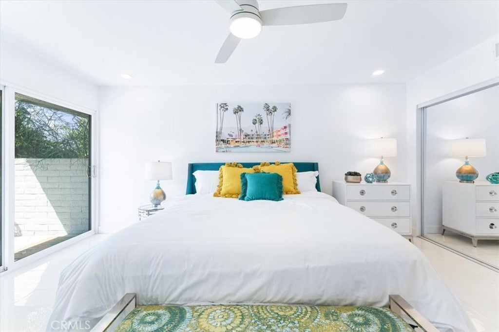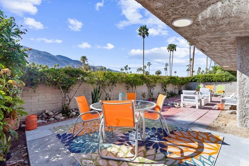 Absolutely fabulous with a quintessential Palm Springs vibe! A reimagined, remodeled and beautifully upgraded single story 3 bedroom 2 bath condo in the highly sought after Gated community of Ramona Villas. Designed by the renowned architect Richard Harrison of the Wexler and Harrison fame and perfectly situated in the popular Warm Sands neighborhood. A mile from all of the excitement of Downtown Palm Springs yet a peaceful retreat for your seasonal retreat enjoyment! Come enjoy the always enticing Palm Springs lifestyle for a month or more in this Fully Furnished, high end contemporary mid century mod styled home. Highlights include an open main living area with WOW inspiring finishes throughout. Custom cool white tile flooring, a showplace kitchen with brilliant white lacquer finished cabinetry, huge grey lacquer finished island with seating for 4, custom quartz counters, custom Palm Springs confetti backsplash, a Forno 6 burner range, wine and bev fridge and stainless appliances. The sensational baths feature giant custom tiled showers and white lacquered vanities. There's even blue tooth speakers in each bath exhaust vent to stream your favorite tunes or podcast while showering. The spacious bedrooms are comfy and inviting and offer exceptional views of the mountains. Sliding doors from the living area and the primary suite open on to the enormous private patio and lounge area. Sit back and enjoy the spectacular west facing mountain views, catch some rays, show off your skills on the BBQ, enjoy an alfresco meal, relax with a beverage by the fire feature or just chill and take in the sunset or the starlight sky. The home comes with 1 covered carport as well as open parking for you and your guests. There is also an interior laundry closet with a full size washer and dryer! The extremely well maintained and visually appealing community offers a splendid large pool and spa area, a gym, a clubhouse and a tennis court for your enjoyment. There are also 4 EV chargers for your convenience! This home personifies Palm Springs Living. Come Enjoy it All! Rates do vary based on time of year.