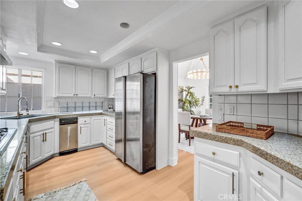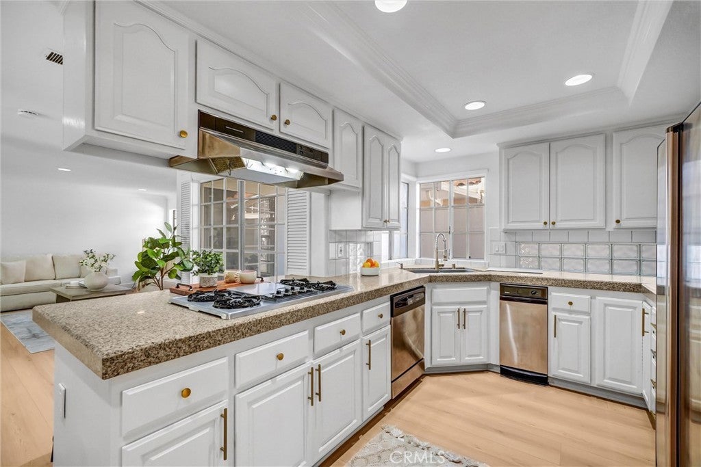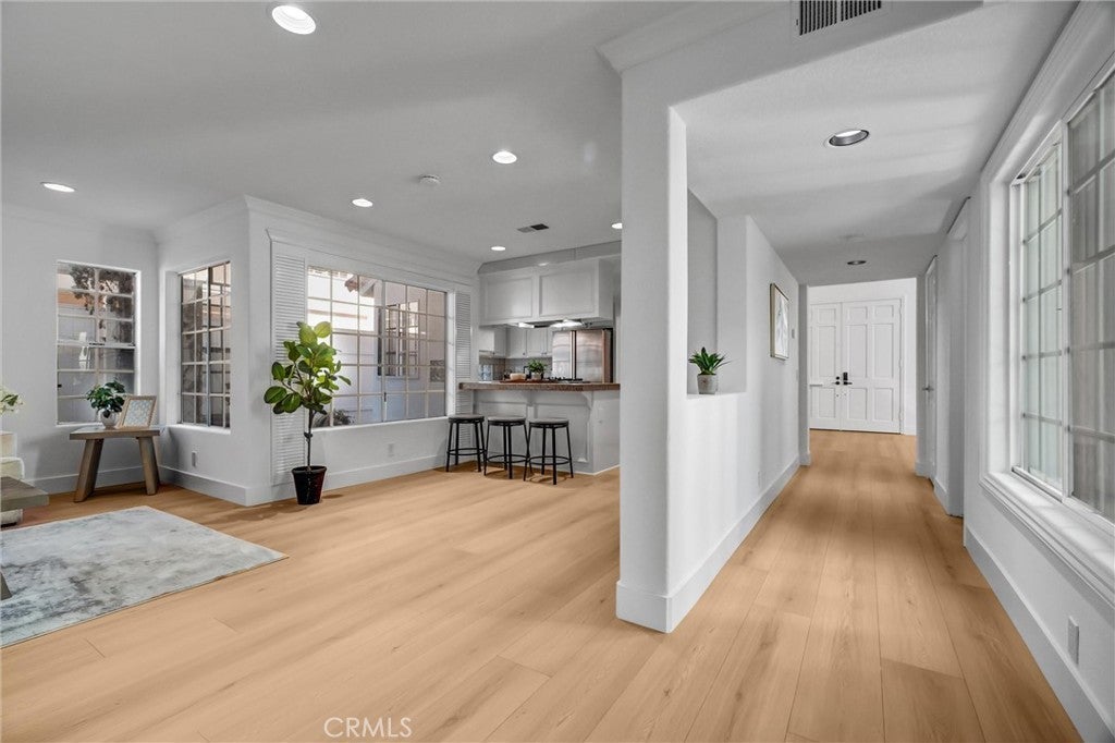Beautifully remodeled home in the highly sought-after Los Cerritos neighborhood of Long Beach! This 4-bedroom, 3-bathroom residence has been fully upgraded with new paint, vinyl flooring, and modern lighting throughout, offering a bright and inviting living space. The updated kitchen features quartz countertops, custom cabinetry, and ample space for cooking and entertaining. Both bathrooms have been elegantly renovated with contemporary finishes. Additional highlights include a tile roof, three-car garage, laundry room, and intercom and built-in speakers throughout the home. The property is professionally landscaped for curb appeal and private outdoor enjoyment. Nestled on a quiet street, this home is just minutes from Los Cerritos Center Mall, boutique shops, cafes, parks, and excellent schools including Los Cerritos Elementary, Hughes Middle, and Long Beach Polytechnic High School. With easy access to Lakewood Blvd, CA-710, and I-405, commuting throughout Long Beach, Seal Beach, and nearby cities is a breeze. This turn-key home perfectly combines modern upgrades, functional living spaces, and a prime location in one of Long Beach’s most desirable communities.