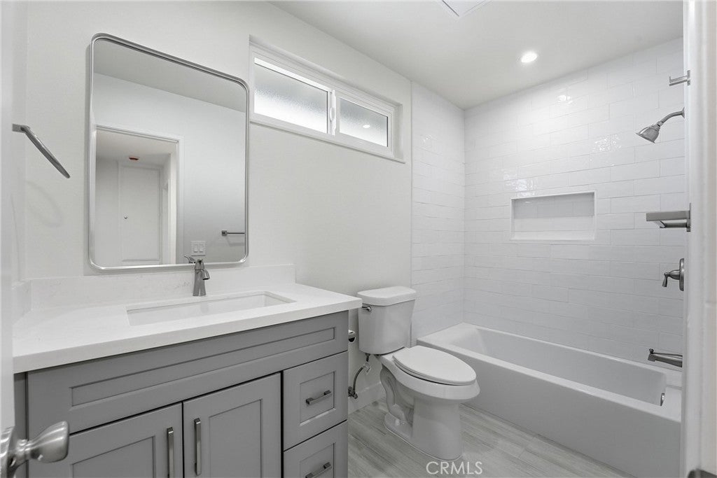 Welcome to 6686 Moselle Circle in the highly desirable Fair Green Homes community of Yorba Linda! This beautifully remodeled single-family attached home offers 4 bedrooms, 2.5 bathrooms, and an abundance of natural light throughout, creating a bright and inviting living environment. Thoughtfully upgraded from top to bottom, the home features all new dual-pane windows and sliding glass doors, enhancing both energy efficiency and indoor-outdoor flow. The brand-new kitchen showcases white cabinetry, quartz countertops, stainless steel appliances including a refrigerator, and soft-close doors and drawers, all designed with both style and functionality in mind. Enjoy LED recessed lighting, neutral-toned paint, and luxury vinyl plank flooring that flows seamlessly throughout the home. The versatile downstairs bedroom features a sliding glass door that opens to the gated private front courtyard, making it ideal for guests, a home office, or flex space. Upstairs, the spacious primary suite offers a relaxing retreat with an en suite bathroom complete with dual sinks, a large vanity, a walk-in shower with glass enclosure, and two closets. Two additional upstairs bedrooms provide generous closet space, while the hallway bathroom includes a tub/shower combination. Additional highlights include new window blinds throughout, a separate laundry room with washer and dryer included, and ample storage. The attached two-car garage offers direct access to the private front courtyard, while the backyard with white vinyl fencing provides a peaceful and private outdoor space perfect for relaxing or entertaining. Residents of Fair Green Homes enjoy access to community amenities including a pool and spa, while the interior living area is complemented by a cozy gas fireplace and a dining area adjacent to the living room. Conveniently located near the 91, 55, and 241 freeways, shopping, dining, and within the award-winning Placentia-Yorba Linda School District, this turnkey lease offers comfort, style, and an exceptional location.