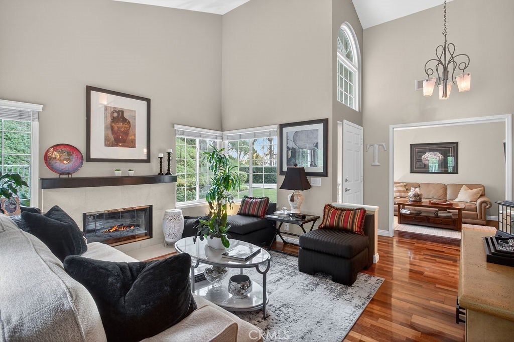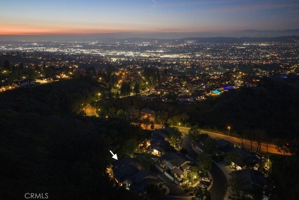 This one is special - One of the Best Lots within its small, prestigious community. A beautiful home nestled high in the hills within a small, peaceful neighborhood, surrounded by nature. The essence of indoor/outdoor easy living. Light & Bright - Abundant windows provide natural light throughout. Enter to a fireside living room with high, cathedral ceilings for that large, open feel. Kitchen opens to the family room which flows nicely to the spacious low maintenance backyard. The backyard is peaceful and private, and surrounded by greenery and nature - ready for outdoor relaxing, entertaining and making memories. Bedroom with full bath downstairs. Dual ensuite bedrooms with walk-in closets upstairs. This model allows for attic space to be converted to an additional bonus space/room that many used as an office, workout space or storage. A three, yes 3-car garage with lots of storage - the least expensive 3-car-garage-house currently on the market in Anaheim Hills. Amber Lane is safe, quiet and very well maintained. HOA covers roofs, exteriors, front landscaping and insurance on the structure. Highly rated schools. Walking-close to golf, hiking, parks, nature center, saddle club. Close-by shopping, restaurants and entertainment. This area of Anaheim Hills has gorgeous views, lush hillsides, a constant breeze, and a rural-feeling of being far away from it all while still being close to so much. A truly wonderful place to live.
