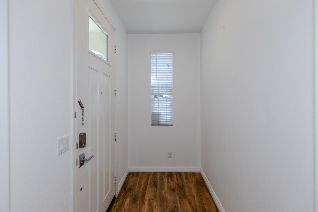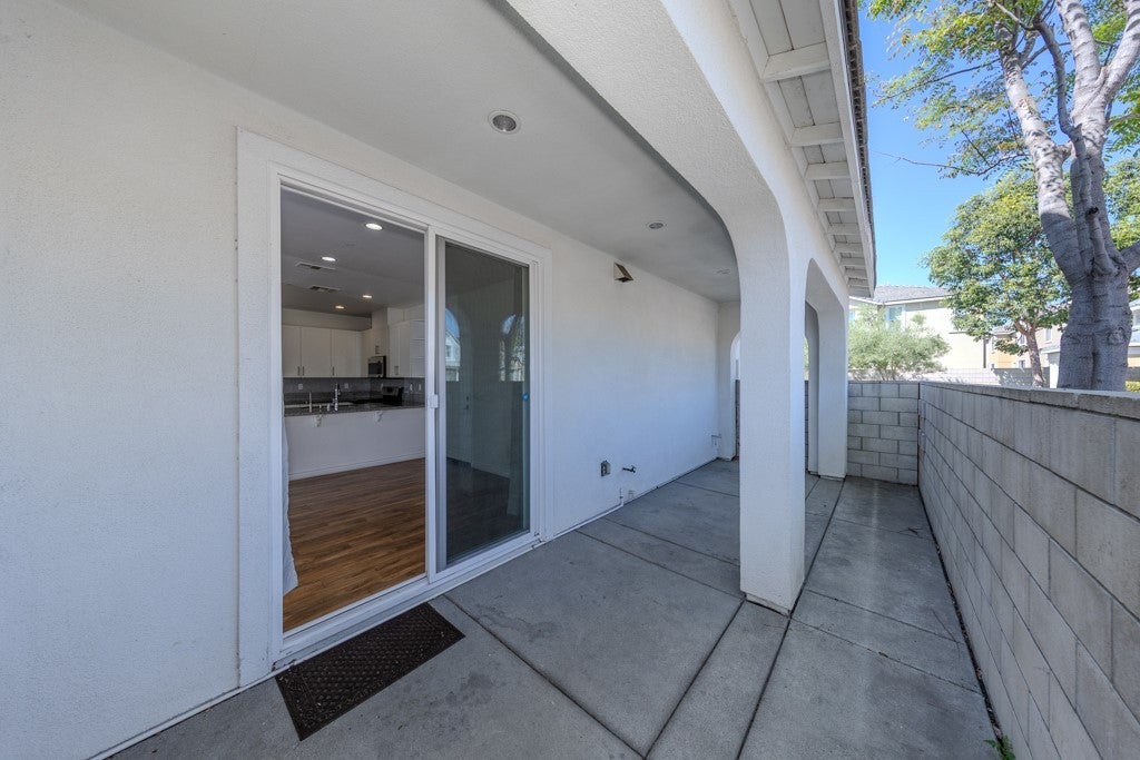 Welcome to this beautifully maintained two-story home offering 4-Bedroom, 3-Bath, 1,609 sq.ft of living space in the desirable Liberty Walk community of Fullerton. Enter through a charming gated front patio that provides a cozy and private outdoor space. The main level features a convenient bedroom and a three-quarter bathroom with granite countertops, ideal for guests. The spacious living and dining areas offer abundant natural light and sliding glass doors that open to the private patio, perfect for relaxing or entertaining. The kitchen features granite countertops, a modern tile backsplash, stainless steel appliances, and recessed lighting. Laminate wood flooring runs throughout the main level. Upstairs, the oversized primary suite includes dual vanities with granite countertops, an oversized soaking tub, a separate shower, and a walk-in closet. Two additional bedrooms share a hall bathroom with granite counters. Additional highlights include solar panels to help lower energy costs, an EV charger in the garage, a first-floor laundry room, and a two-car attached garage with direct access. All utilities are to be paid by the tenant. This desirable corner-lot home is a must-see in the Liberty Walk community.