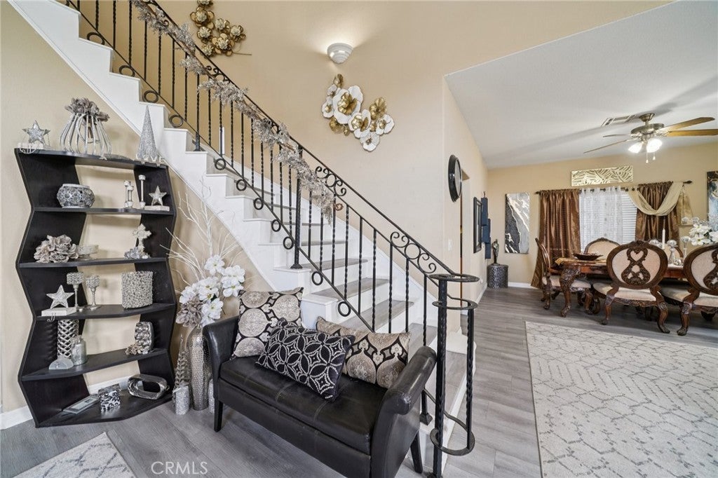 UPGRADED LARGE 4 BEDROOM AND 3 BATHROOM HOME LOCATED IN A CUL DE SAC, CATHEDRAL CEILINGS WITH A BEAUTIFUL STAIRCASE LEADING TO THE 2ND FLOOR, UPGRADED KITCHEN WITH DINING AREA, ALSO A FORMAL DINING ROOM, MODERN FIREPLACE IN THE LIVING AREA, ONE BEDROOM DOWN STAIRS AND THE OTHER 3 BEDROOMS ARE LOCATED UPSTAIRS, ONE MASTER BEDROOM UPSTAIRS WITH WALK IN CLOSET WITH LARGE BATHROOM THAT HAS A JACUZZI TUB AND SHOWER, DOUBLE SINKS, UPGRADED WOOD FLOORING IN THE LIVING ROOM, FAMILY ROOM, KITCHEN, LAUNDRY ROOM, STAIRS. LARGE FRONT AND BACK YARD WITH LARGE PATIO IN THE BACKYARD, NEW SOLAR PANELS, BRAND NEW SPRINKLES INSTALLED, EV CHARGING IN THE GARAGE, LARGE CARPORT ON THE SIDE OF THE HOME, LONG OPEN DRIVEWAY FOR PARKING SEVERAL CARS OR LARGE RV. LOCATED CLOSE TO ENTERTAINMENT, SHOPPING, SCHOOLS, FREEWAYS.