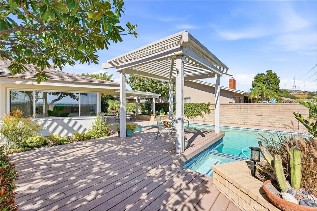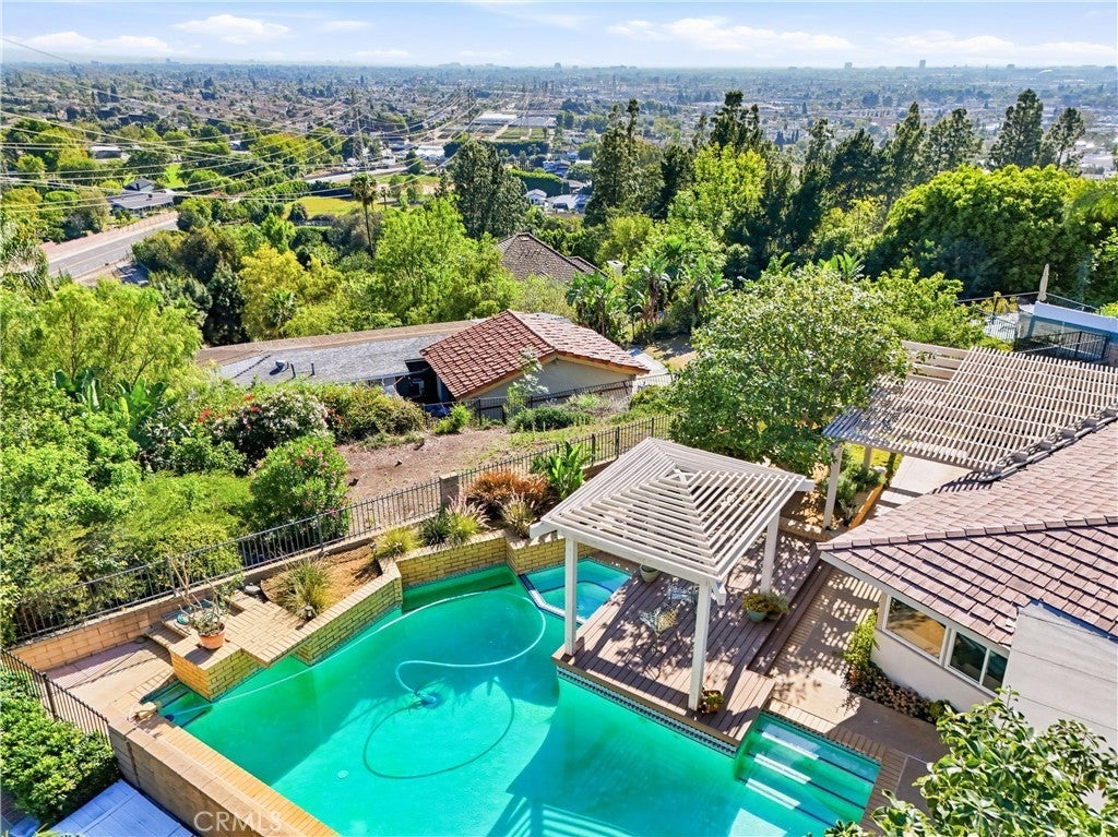 An incredible and rare opportunity to reimagine a once-celebrated showplace in one of the most sought-after hillside neighborhoods in the Orange. Perfectly positioned high above the OC basin on an expansive approximately 14,400 square foot lot, this single-story residence showcases truly spectacular panoramic views of city lights, skyline, sunsets, and the world beyond. From the moment you pass through the gated entry into the private front courtyard, a sense of arrival and possibility is undeniable. Step through the front door and you are immediately greeted by breathtaking horizon views that set the tone for the home’s incredible potential. The welcoming entry flows into an oversized living and dining space highlighted by walls of glass and captivating vistas. The adjacent kitchen with breakfast nook overlooks the backyard, pool, and endless views beyond — offering the perfect footprint for a stunning future transformation. A versatile den or family room with a sliding door to the courtyard provides ideal space for a home office, media room, or additional entertaining area. A powder room and service porch with direct patio access add convenience and functionality. Privately situated, the light-filled primary suite enjoys remarkable views and features a spacious bath with soaking tub and separate shower. Two additional generously sized bedrooms, a large hall bath and a huge laundry room complete the home’s more than 2,500 square feet of living space. The backyard was originally professionally designed for grand-scale entertaining and features a large pool, spa, expansive decking, multiple patio and lounge areas, and mature landscaping — all set against a truly awe-inspiring panoramic backdrop. This well-loved home is ready for its next chapter. With outstanding bones, an unbeatable view setting, and located among beautifully maintained pride-of-ownership properties, this is a rare chance to purchase at an exceptional value and create your own hillside dream estate. If you’ve been waiting for the perfect opportunity to renovate, customize, and elevate a home in a premier location — this is the one.
