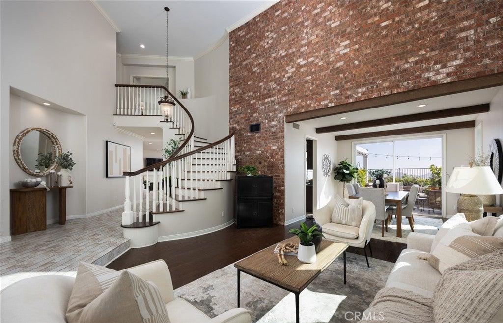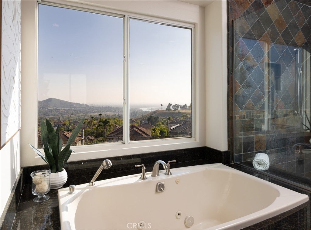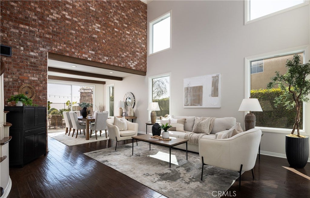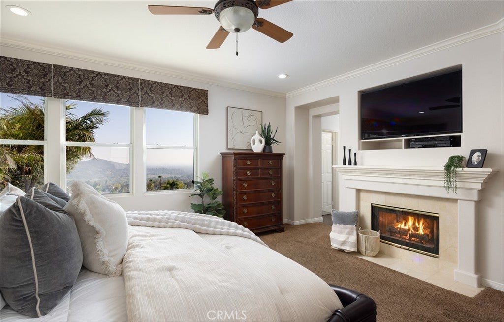 HILLSIDE VIEW HOME | PANORAMIC VIEWS | PRIVATE BACKYARD RETREAT | CUL-DE-SAC LOCATION | GATED PARKRIDGE COMMUNITY | Situated on a premium view lot within the prestigious gated community of Parkridge, this exceptional 5 bedroom, 4 bathroom residence offers 3,039 sqft of living space, blending privacy, comfort, and breathtaking scenery. Tucked away on a quiet cul-de-sac, the home delivers a rare sense of tranquility, with panoramic views stretching across city lights, rolling hills, and distant mountain ridgelines, extending toward Catalina Island and the ocean on clear days. From the moment you enter through the double front doors, a grand entry with soaring ceilings, expansive windows, and a sweeping staircase creates a dramatic first impression while filling the home with natural light. The formal living and dining rooms provide inviting spaces for entertaining, enhanced by large sliding doors that create a seamless indoor-outdoor connection. The kitchen serves as the heart of the home, featuring granite countertops, rich wood cabinetry, a center island, and a window framing the backyard and views. A breakfast nook and walk-in pantry enhance function, while the kitchen opens to the family room with a beautiful fireplace and built in bookcase. A main-level bedroom and full bathroom offer flexibility for guests or multigenerational living, along with a laundry room and three-car garage. Upstairs, the primary suite offers sweeping views of city lights and rolling hills to the ocean, with a cozy fireplace and complemented by a spa-inspired bath with dual sinks, soaking tub, walk-in shower, and two walk-in closets, plus an adjacent retreat ideal for an office, gym, or lounge. Additional bedrooms are generously sized, along with a bonus room or optional fifth bedroom. The backyard showcases the home’s elevated setting with a beach-inspired pool and spa, seating areas, outdoor fireplace, and built-in BBQ, all positioned to capture the views and create a private retreat. The property is located within a secure gated community featuring a neighborhood pool, spa, and sport court as well as being near top-rated schools, dining, and shopping. This is more than a home. It is a lifestyle defined by breathtaking views, privacy, and timeless elegance.