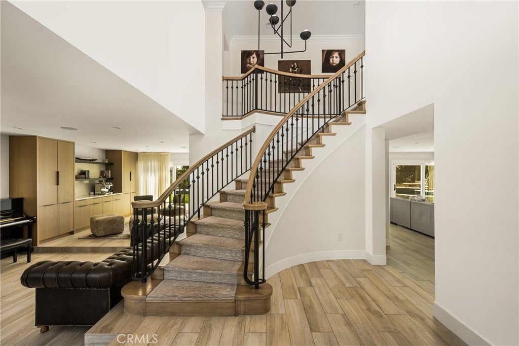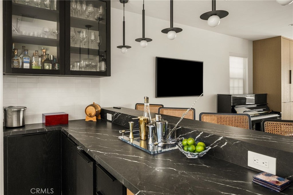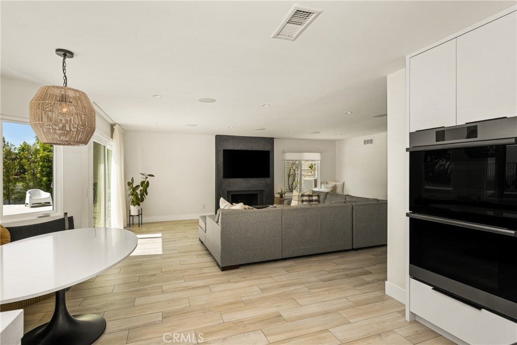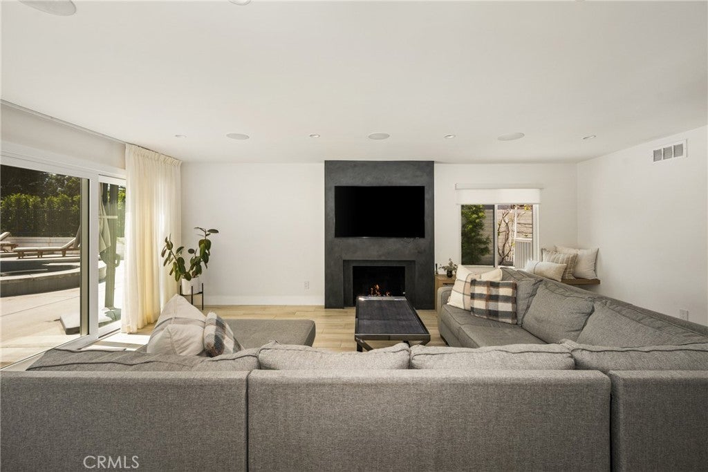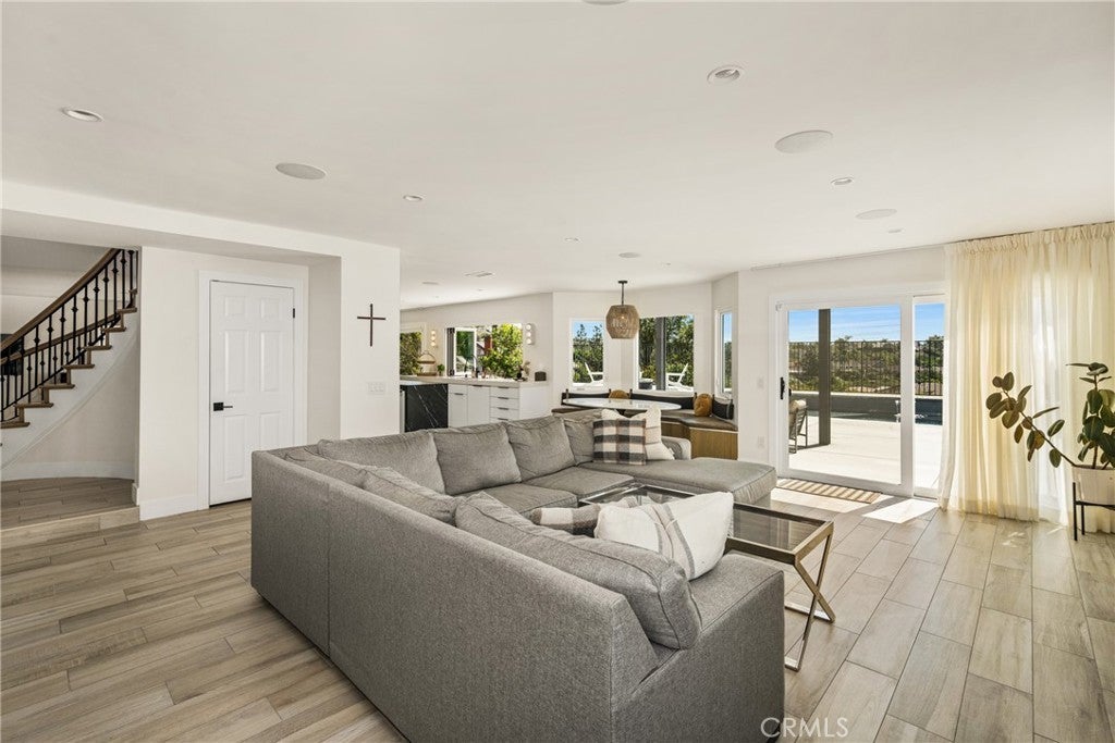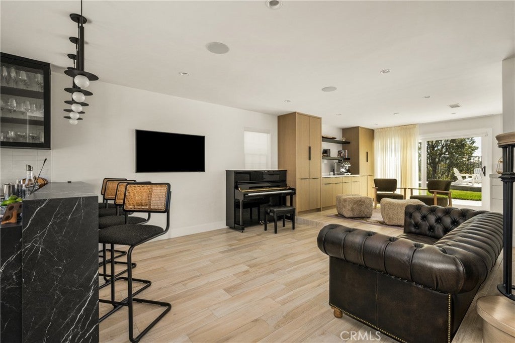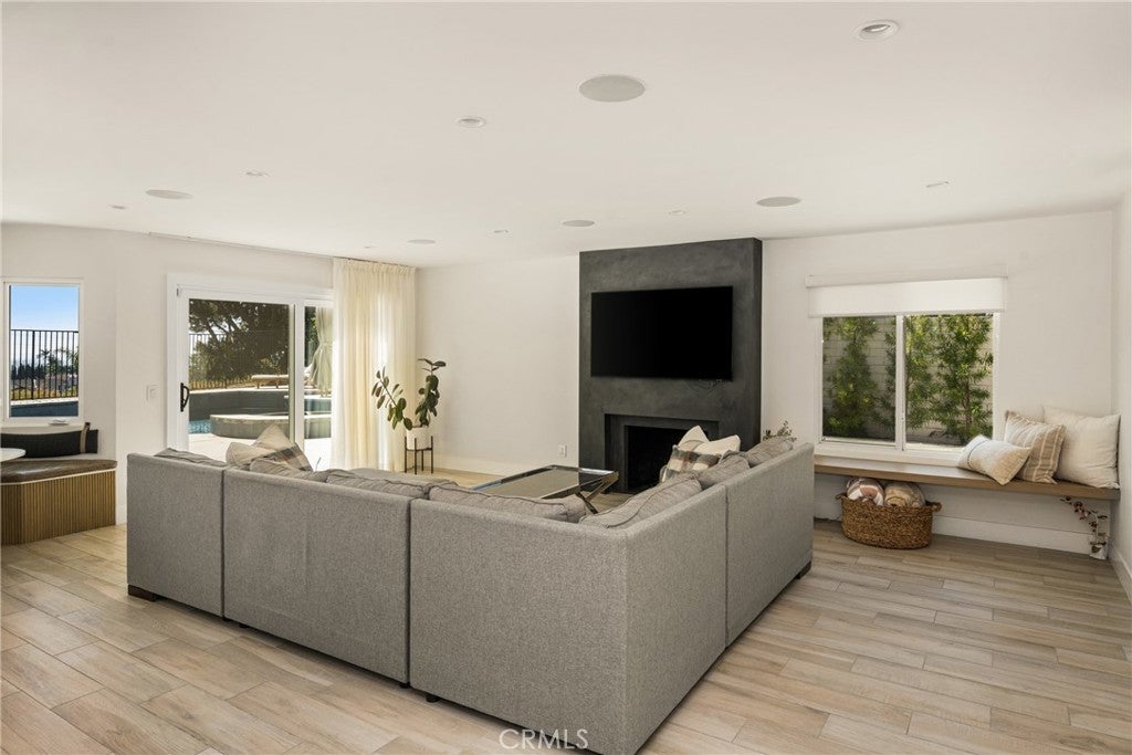 Absolutely stunning view home offering 4 bedrooms and 2.5 baths, thoughtfully reimagined for the most discerning buyer who values quality and timeless design. Completed in 2022, this extensive renovation showcases exceptional craftsmanship throughout, featuring custom cabinetry, a fully remodeled modern kitchen with premium Dacor Appliances, and high-end custom countertops. A beautifully designed bar with bespoke cabinetry and finishes creates the perfect space for entertaining. The main level is elevated with Level 5 smooth drywall and artisan hand-applied plaster accents at the fireplace and powder room, delivering a refined, custom-home feel. Additional upgrades include all-new windows, highlighted by a dramatic bi-fold pass-through window in the kitchen, and a full PEX repipe for long-term peace of mind. The outdoor living space was completely transformed in 2022 into a true resort-style retreat, featuring a remodeled pool with Baja shelf, custom concrete hardscape, a designer barbecue area with concrete countertops, and a built-in fire pit. Lush, professionally landscaped grounds with a drip irrigation system frame the space, all set against breathtaking panoramic city light views. A rare opportunity to own a turnkey home where no detail was overlooked—this is luxury, quality, and lifestyle combined.