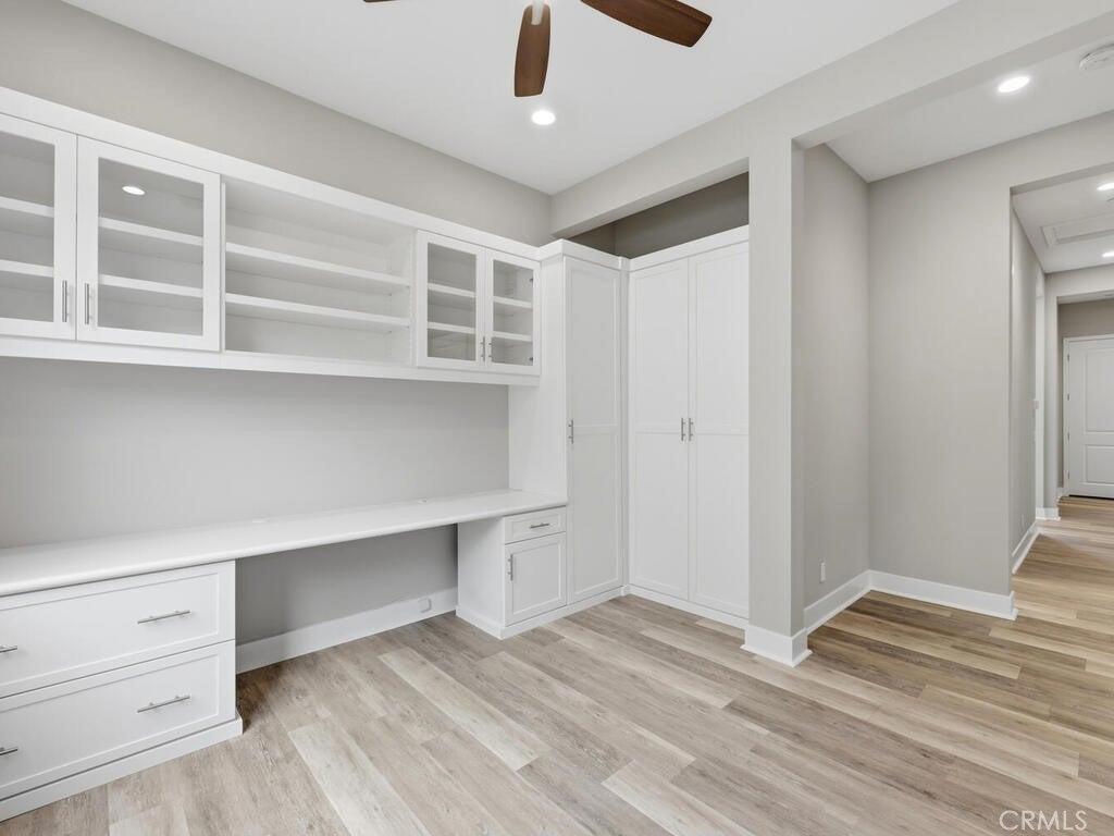 Welcome to 10866 Rojo Court, a fantastically maintained active senior residence tucked away on a perfectly quiet motor court in the heart of the prestigious Ovation at Flora Park. This is the very popular Plan 4 in the Bougainvillea phase of William Lyon’s flagship community for active 55+ residents. This upscale and inviting home feels almost new and is a perfect blend of comfort, style & elegance. Step inside to discover a bright, light, wide-open space filled with natural light. Upgrades throughout! Custom LVP plank flooring runs through all living areas, with low-pile carpet in the bedrooms (brand new in the downstairs bedrooms). The custom-built entertainment center is the centerpiece of this beautiful home. The zero-clearance gas fireplace has both programmable color and heat functions, reclaimed barn wood, a 65" TV with sound bar, and custom shelving and cabinets for all your needs. The spacious living area flows effortlessly into a well-appointed kitchen, featuring ample cabinetry, generous counter space, an oversized kitchen island w/ breakfast counter, plus ample dining space for a full dining table—perfect for both everyday living and entertaining. There are two downstairs primary bedrooms. The main has a gorgeous ensuite bath with a massive two-person shower, upscale tile and design, a walk-in closet, and a private commode closet with a top-of-the-line Toto bidet. There is an additional primary bedroom and a den/office downstairs, along with a powder room and a laundry room w/ washer/dryer included. The upstairs bedroom & full bath are an excellent upgrade. Outside offers a serene setting for outdoor gatherings. Another custom zero-clearance gas fireplace was added, along with professional landscaping and hardscaping, an automated sprinkler system, lighting, a water fountain, and a drainage system. A water filtration system and tankless water heater are included. The fully finished garage features built-in cabinets, epoxy flooring. The community area is amazing! Head to the photos to view all that is offered with this low association fee. Just for starters, take in the lap pool, huge in-ground jacuzzi, cabanas outfitted with charging stations, a fully equipped gym, yoga studio, and a banquet hall with a full kitchen that can be rented. There is also an outdoor fire pit, outdoor fireplace, outdoor TV, pickleball, bocce ball & pool table. There are classes, events, and meetings each month—the events board truly reads like a cruise!