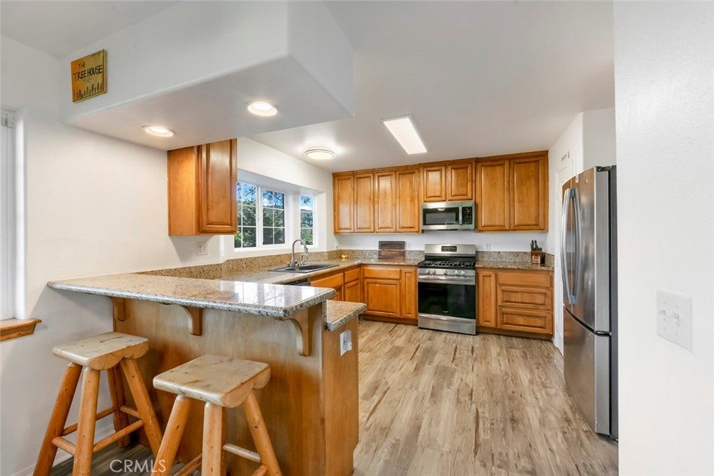 Priced to move! 4-bedroom + office + loft home in the highly desirable Arrowhead Highlands neighborhood, where classic mountain charm meets thoughtful modern updates. This well maintained property offers partial valley and peek-a-boo Lake Gregory views, plus spacious decks off every level. The main house boasts 3 generous bedrooms with ample closet space, a versatile loft/bonus room upstairs, two convenient office nooks adjacent to the loft, a dedicated office (with door) just off the kitchen, and 2.5 bathrooms—including a jetted tub in the primary suite. The finished basement provides an additional bedroom, bathroom and kitchenette; adding flexibility for guests, family, or rental income. Pride of ownership shines throughout with premium features like an extra-tall garage, abundant pantry storage, a new heat pump water heater, and a permanent natural gas line to a weber BBQ (included) on the deck. Appliances and furniture convey at no additional cost. Conveniently located just minutes from the excitement of Lake Gregory, Lake Arrowhead, and Santa's Village, this home delivers easy access to boating, wakeboarding, hiking, skiing, snowboarding, winter fun, shopping, and dining—without sacrificing peaceful, tree-lined privacy. Don't miss your chance to own this turnkey gem.