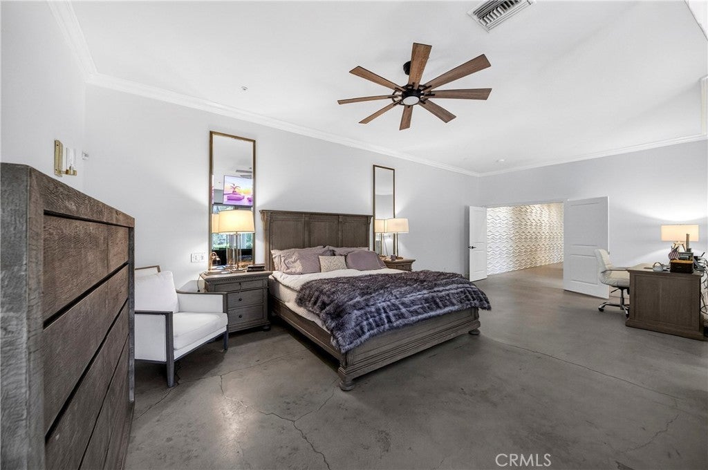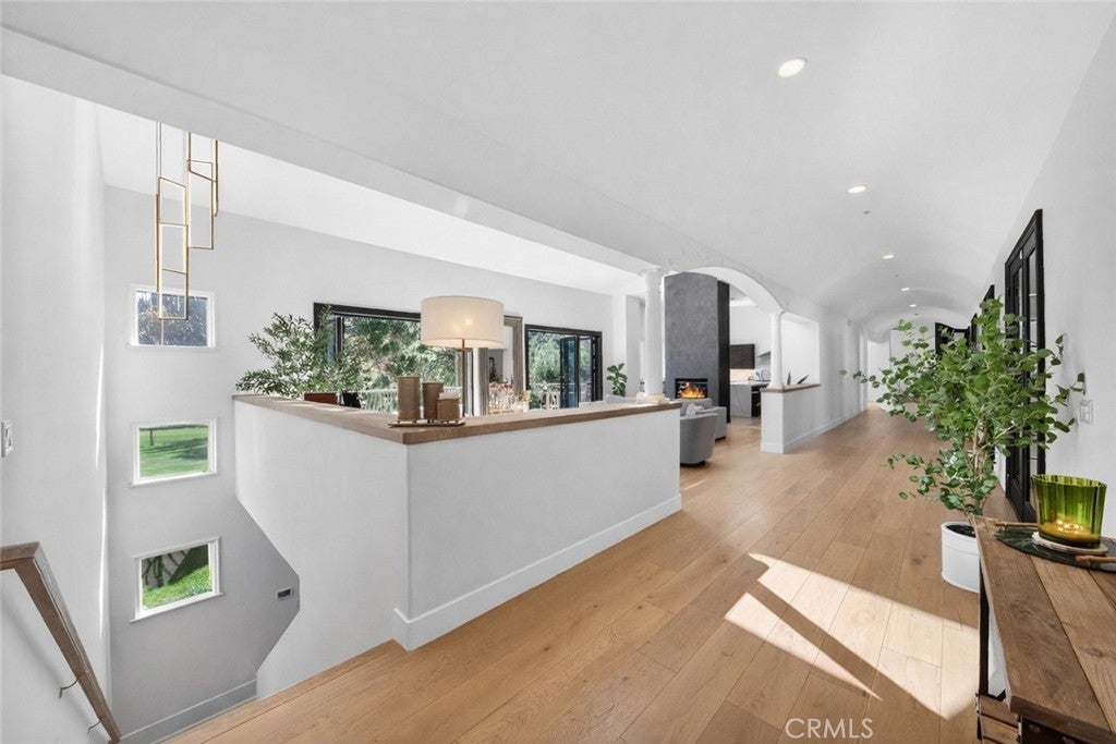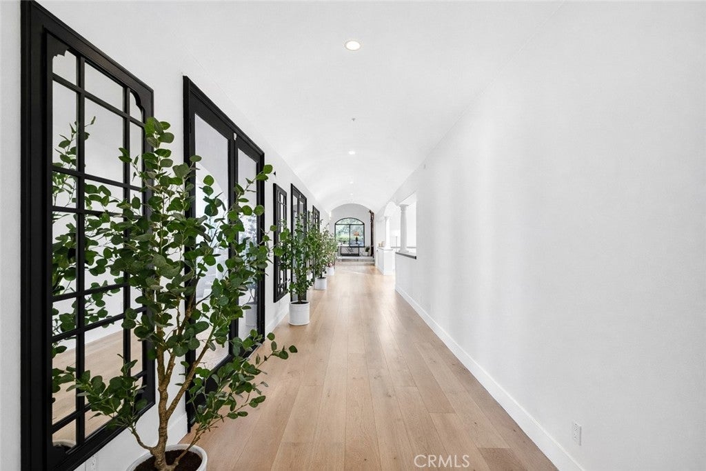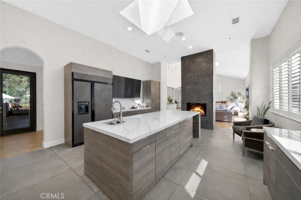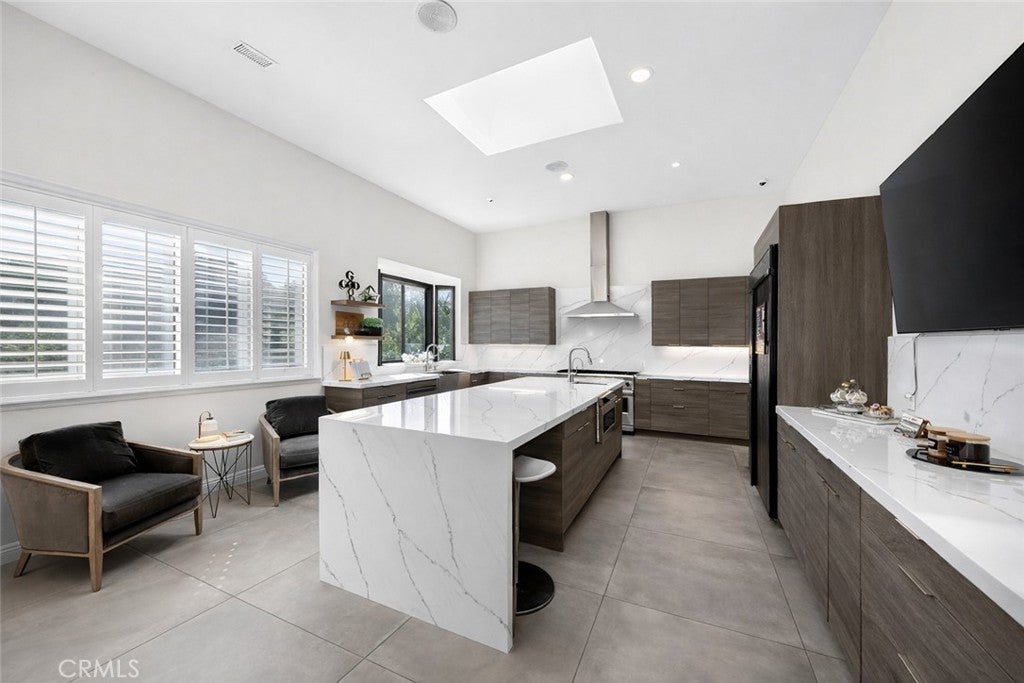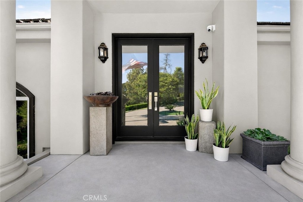 Experience elevated estate living in the prestigious gated enclave of Western Hills with panoramic golf course views. This custom architectural residence spans approximately 6,661 square feet on an expansive 55,750 square foot lot, offering 5 bedrooms and 6 bathrooms with exceptional scale and privacy. A custom modern gate and contemporary garage doors open to a circular motor court framed by manicured landscaping and sweeping fairway vistas. The double-door entry reveals a dramatic interior defined by soaring ceilings, skylights, upgraded flooring, and refined architectural detail. A stunning main hallway lined with French doors captures pool views on one side and golf course vistas on the other. Designed for entertaining, the living areas feature whole-home surround sound and a dual-sided fireplace flowing seamlessly into the remodeled chef’s kitchen showcasing a waterfall quartz island, rich European cabinetry, and integrated appliances. Expansive bifold door systems fully retract along the golf course side, creating true indoor-outdoor living with unobstructed views. The formal dining room opens to the golf course terrace, while a separate family and game lounge with a custom bar and wood beam accents connects to both the golf terrace and the private pool side. The main level also includes a private bedroom suite and guest bathrooms. The lower level forms a residential wing featuring four bedrooms and access to a full-length covered patio. The expansive primary retreat offers a sitting area and bifold doors framing fairway views. The spa-inspired bath includes dual vanities, a soaking tub, an oversized shower, and an extraordinary 1,400 square foot custom walk-in dressing room. A secondary bedroom features an ensuite bath, while two additional bedrooms share a beautifully appointed hallway bath. The resort-style grounds offer a private setting separate from the golf course exposure. The saltwater pool with waterslide and spa features updated equipment, complemented by a sport court, built-in BBQ, outdoor fireplace, and multiple entertaining decks. Additional highlights include a three-car garage with EV charging and 59 solar panels. A rare estate offering architectural presence and resort-caliber living in one of Chino Hills most exclusive gated communities.