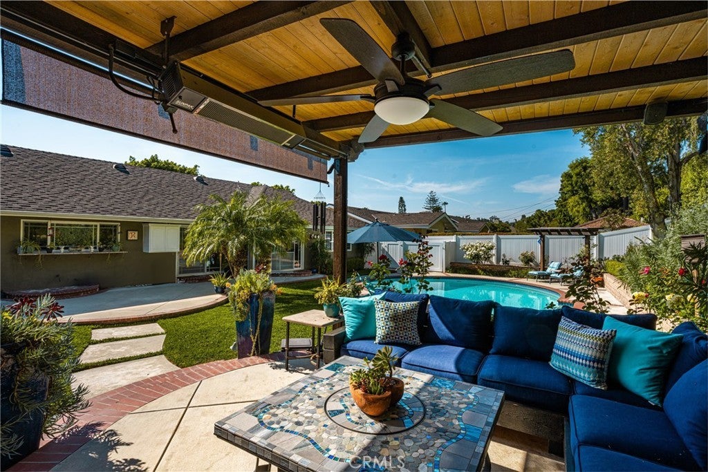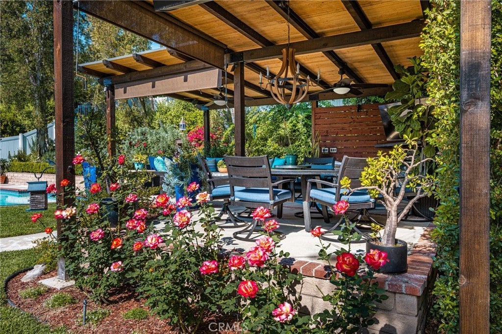 Welcome to this beautifully maintained home offering exceptional indoor-outdoor living in a highly desirable setting. The tranquil front yard welcomes you with a serene pathway, charming seating area, and a soothing fountain surrounded by lush, thoughtfully designed landscaping — creating a garden retreat and inviting first impression. Inside, the inviting living room is filled with natural light and features large picture windows with a stylish fireplace that serves as a warm focal point. The open floor plan allows for effortless flow between living spaces, ideal for both comfortable everyday living and entertaining. The spacious kitchen opens seamlessly to the dining area and showcases a large granite center island, abundant counter space, and ample cabinetry, making it the heart of the home. Four bedrooms and remodeled bathrooms add modern appeal, while multiple rooms enjoy peaceful views of the lush outdoor surroundings. The backyard is designed for relaxation and entertaining alike, featuring a sparkling pool, grassy lawn, and mature landscaping that provides exceptional privacy. A covered patio creates an inviting outdoor living space complete with a sitting area and TV — perfect for year-round enjoyment, gatherings with friends, or relaxing poolside in a resort-like setting. Ideally located on a well-regarded, wide tree-lined street, this home offers a wonderful neighborhood atmosphere while combining comfort, style, and privacy in one exceptional property. Close proximity to award winning schools - Arroyo Elementary, Hewes Middle School and Foothill High School.
