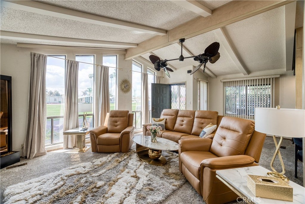 Discover your ultimate peaceful haven in the highly sought after Colonial Country Club, a premium 55+ gated community. Spanning 1,440 square feet, this turnkey two-bedroom, two-bathroom single-story dwelling sits perfectly on the golf course tee. The interior feels incredibly spacious thanks to elevated vaulted ceilings and a brilliant open floor plan with extended living areas. Massive glass windows perfectly capture the sweeping, emerald green fairway right outside your living room. Every appliance is completely new and ready for your culinary adventures, from the oven, dishwasher, and refrigerator to the garbage disposal, as well as the accompanying washer and dryer units. The outdoor private patio invites you to start your day with tranquil sunrise views or wind down with evening breezes overlooking the grass. For creative minds or hobbyists, the property boasts an oversized outbuilding that serves beautifully as a crafter's art studio, a builder's workstation, or simply a massive storage closet. A covered tandem garage ensures a seamless transition into the house, and your golf cart even has its own sheltered parking bay. The community itself is a private oasis. Residents are treated to free access on the 18-hole golf course, a sparkling pool, a soothing spa, and athletic facilities including a gym, pickleball courts, and a billiards lounge. Stroll by the private lake, bring your furry friend to the dog park, or pamper yourself at the neighborhood beauty salon and pet grooming station. Your social calendar will be full with organized activities, movie screenings, and community events. Safety and convenience are paramount, with round the clock security patrols, a quiet library, outdoor picnic and BBQ shelters, and a grand banquet hall. Beyond the gates, you are incredibly close to top tier dining, bustling shopping outlets, local vineyards, and lively casinos. When you want to explore further, the highways provide quick routes to San Diego, Los Angeles, Palm Springs, and Orange County.