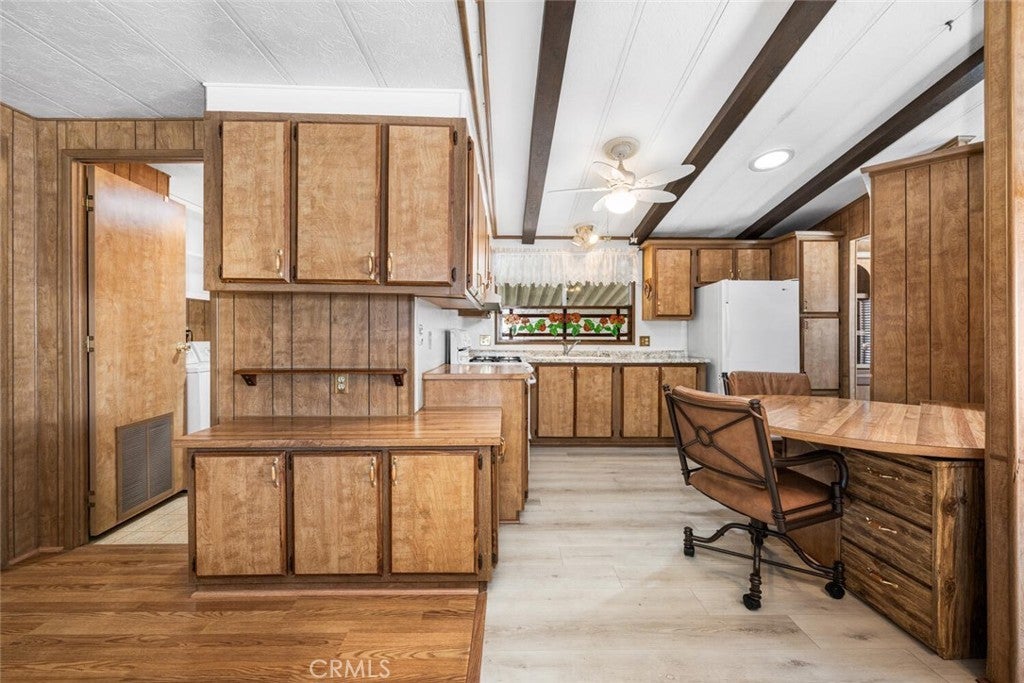 Welcome to one of So. Cal's Finest Active 55-and-older senior parks. Corner home with freshly recoated 2-carport covered parking space. Spacious living room with plenty of windows, and an open floor plan to the dining room, living room, and family room. Inside the laundry room with a washer and dryer included. Back door access to a large back porch covered by a spacious carport. Heavy-duty work shed for his and hers hobby room or storage space. Breakfast nook in spacious kitchen with pantry.