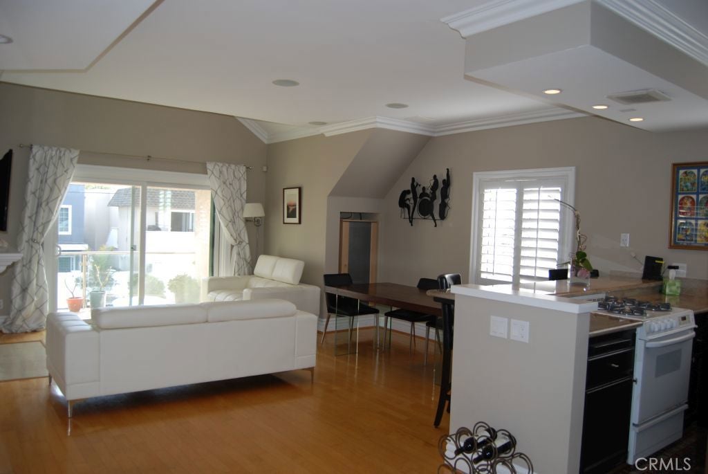 Great Peninsula location on the Bay side with a private roof top deck with ocean and Bay view. This beautiful light and bright upper unit offers 3 bedrooms and 2 bathrooms, hardwood flooring in the living room and kitchen, master bedroom with walking closet, inside laundry which includes stacked washer and dryer and 2 car tandem garage. Gourmet kitchen which is open to the living and dining room featuring granite countertops, stainless steel refrigerator and a breakfast counter/bar. Cozy living room with fireplace opens to a private balcony with a gorgeous Bay view. Enjoy the roof top deck with ocean and bay view.