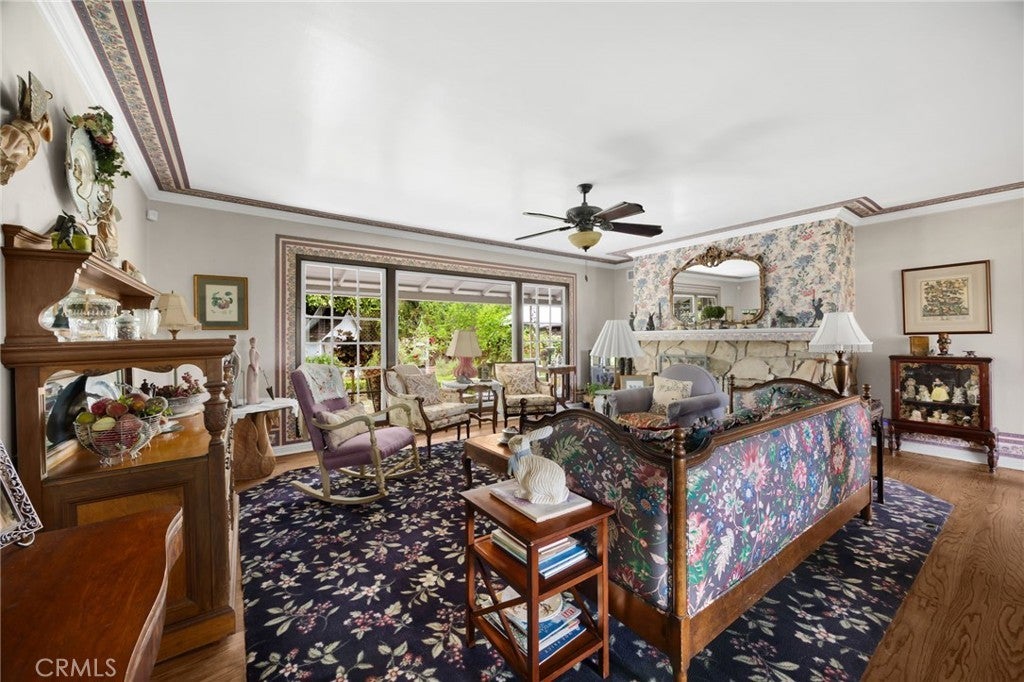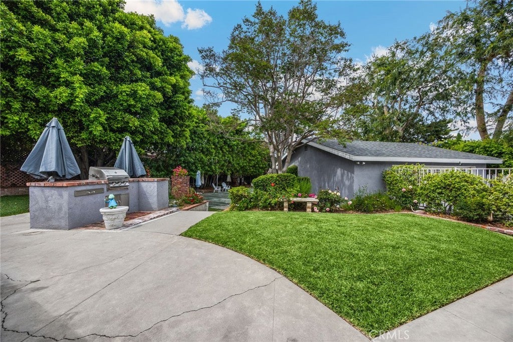 BEAUTIFUL, SINGLE-STORY HOME on a LARGE LOT in a highly sought-after Fullerton neighborhood! This home features 4 bedrooms and 3.5 bathrooms with 3,598 square feet of spacious living space on a 23,870 sq foot lot! Spacious living room at the entry with plenty of natural lighting, cozy stone fireplace, and beautiful view of the backyard. Adjacent to the living room is a small den area. The beautifully designed kitchen features a beautiful kitchen island with Viking electric cooktop, double ovens, recessed lighting and is adjacent to the dining room. The beautiful dining room includes a cozy brick fireplace, ceiling fans and has direct access to the bonus room which features a kitchenette which makes it perfect for entertaining. This home also includes a large family room area that includes large picture window with views of the backyard, and beautiful brick fireplace. The Primary Bedroom Suite includes a beautiful view of the backyard, large bedroom area, beautifully updated ensuite bathroom with glass enclosed shower, bubbling tub and LARGE walk-in closet with closet organization. Next door is another bedroom suite which includes a large bedroom area and beautifully updated bathroom with glass enclosed shower. This home also includes 2 additional HUGE bedrooms with LARGE closets and jack and jill bathroom. This BEAUTIFUL, PRIVATE backyard is made for entertaining! Backyard includes built-in BBQ station, large patio area, grassy areas, sport court, beautiful gardens, and mature landscaping. Additional features of the home include a driveway 2 car detached garage with extended driveway for extra parking, new windows except for den and so much more! Take advantage of NO HOA, close to shopping, restaurants and entertainment. THIS IS A MUST SEE! Come view this house and make it yours today!