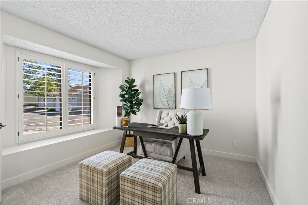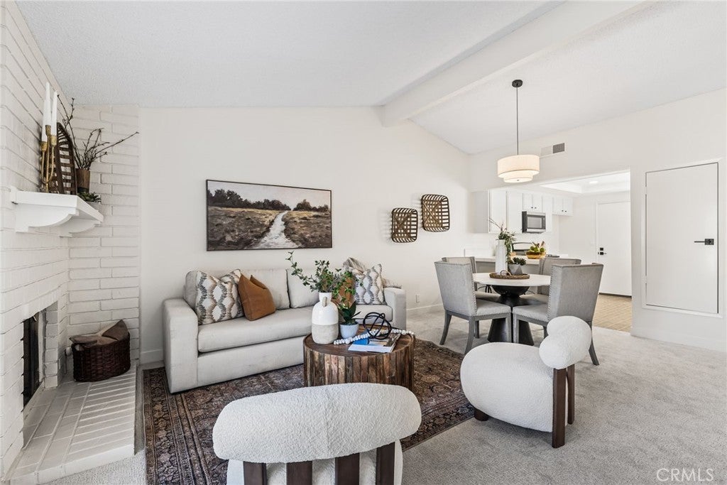 Welcome to this light, bright, and cheerful single level end-unit townhouse in the highly sought-after Woodbridge community of Irvine! Located at 36 Sunfish, this move-in-ready 2-bedroom, 1.5 bath home offers 863 square feet of thoughtfully designed living space that lives larger than expected—perfect for first-time buyers, downsizers, or anyone looking to enjoy this incredible neighborhood. From the moment you step inside, you’re greeted by soaring vaulted ceilings and a cozy fireplace that create an open, airy vibe ideal for both relaxing and entertaining. Fresh interior paint, new carpet and baseboards, LED recessed lighting, and sleek stainless steel kitchen appliances give the home a crisp, modern feel. The kitchen’s seating bar flows effortlessly into the living and dining areas—perfect for casual meals and gathering with friends. The primary bedroom includes a generous walk-in closet while the second bedroom is currently styled as a home office/den with its own bathroom, offering flexible living options for guests or working from home. Step outside to your low-maintenance patio, a private quaint retreat for morning coffee, weekend lounging, or BBQs in the SoCal sunshine. You’ll also enjoy the convenience of an attached 2-car garage and easy guest parking nearby. Just a short stroll to a nearby park and surrounded by Woodbridge’s scenic greenbelts, lakes, pools, and walking paths, this home offers not just comfort—but a lifestyle to love.
