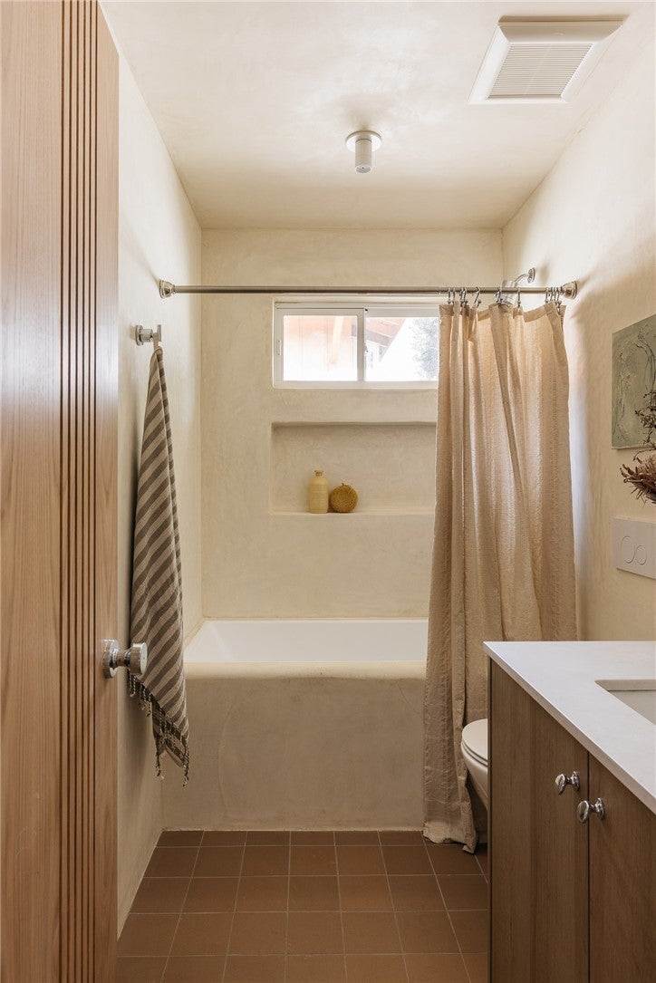 Set along a quiet, peaceful stretch of Round Top Drive, this 3-bedroom, 2-bath residence has been thoughtfully reimagined by Bungalowe, blending elevated design with a warm, livable feel on a generous lot. Inside, the home opens to a calm, cohesive interior where smooth plaster walls, natural textures, and clean lines create a grounded, organic aesthetic. The living space centers around a fireplace and flows effortlessly into a well-designed kitchen, complete with generous storage, designer lighting, and a refined mix of materials that feel both modern and timeless. A dedicated dining area anchors the space, making it equally suited for everyday living or hosting. The primary suite is positioned as a true retreat, spacious, private, and complemented by a large, well-appointed bathroom designed with comfort in mind. Two additional bedrooms offer flexibility for guests, family, or workspace, all tied together by a consistent design language throughout. Outdoors, the property opens to a serene, tree-covered setting that feels private and tucked away. Mature trees provide natural shade and character, while the generous lot offers a peaceful backdrop for relaxing and entertaining. Behind the scenes, major system upgrades, including plumbing, electrical, HVAC, and a tankless water heater, bring a level of quality and peace of mind that matches the design. Round Top offers a lifestyle that’s hard to replicate—quiet and secluded, yet just moments from neighborhood favorites. With a two-car garage, ample parking, and Bungalowe’s signature attention to detail throughout, this is a home that delivers on both design and everyday function