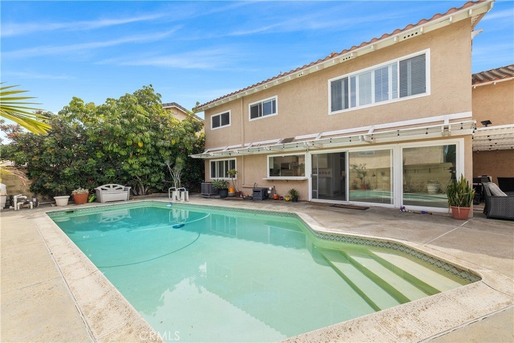 Ideally located on a quiet Cul-de-sac, this 5-bedroom, 2.5-bath Larwin built, Greenbrook Spacemaker 1 home, offers approximately 2,638 sq ft of updated living space in a highly sought-after neighborhood. Featuring top-rated schools including Landell Elementary, Lexington Jr. High, and Oxford Academy. The home's charming curb appeal will immediately catch your eye. From the drought friendly landscaping to the inviting front porch. Thoughtful upgrades include smooth, retextured ceilings with recessed lighting, new vinyl flooring upstairs, ceiling fans, new A/C pump, electrical panel, and solar panels (leased). Wall-mounted outlets create a clean, modern look throughout. The expansive bonus room above the garage is fully renovated, offering flexibility as a 5th bedroom, media room, or office. All the bedrooms are sizable. The Primary bedroom is a true Primary Suite. Offering an extra-large bedroom, walk-in closet, and an ensuite bathroom. Enjoy seamless indoor-outdoor living with sliders to a pergola-covered patio and private backyard with a large Pool, perfect for entertaining. Additional highlights include Spanish tile roof, Dual-pane windows, Copper Plumbing, and a 3-car garage. Walking distance to Landell Elementary, ability to test to the nationally ranked Oxford Academy, close to amazing restaurants, shops like Trader Joe's, Costco, Mistuwa to name a few. A rare opportunity to enjoy the best of Cypress living - An exceptional location and a beautiful home come together in a truly special neighborhood. Welcome to 4395 Avenida Carmel and Welcome Home!