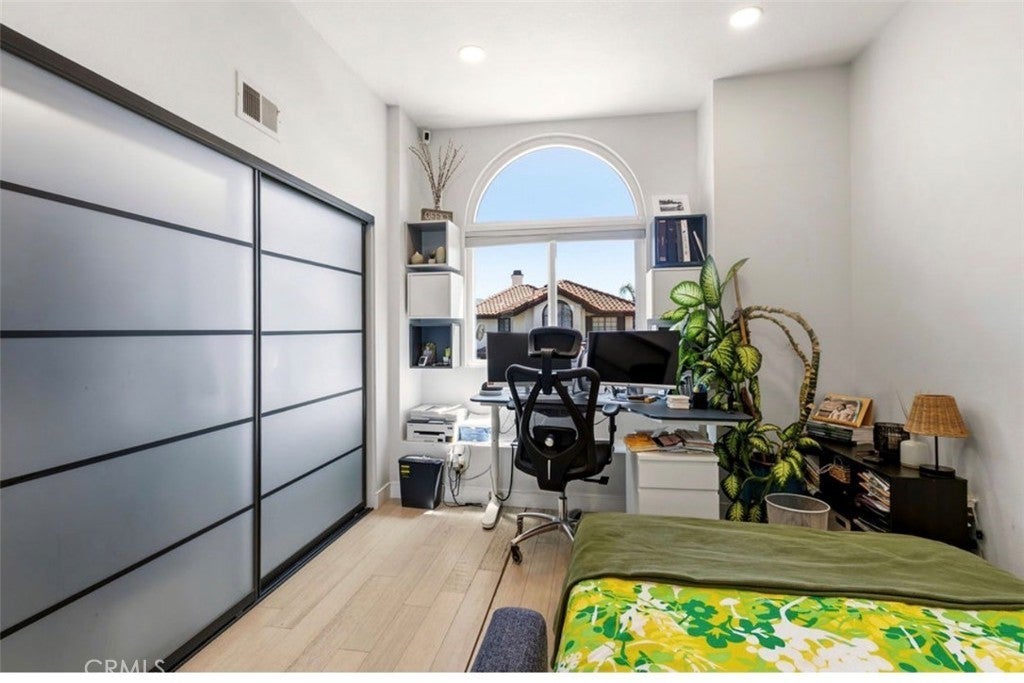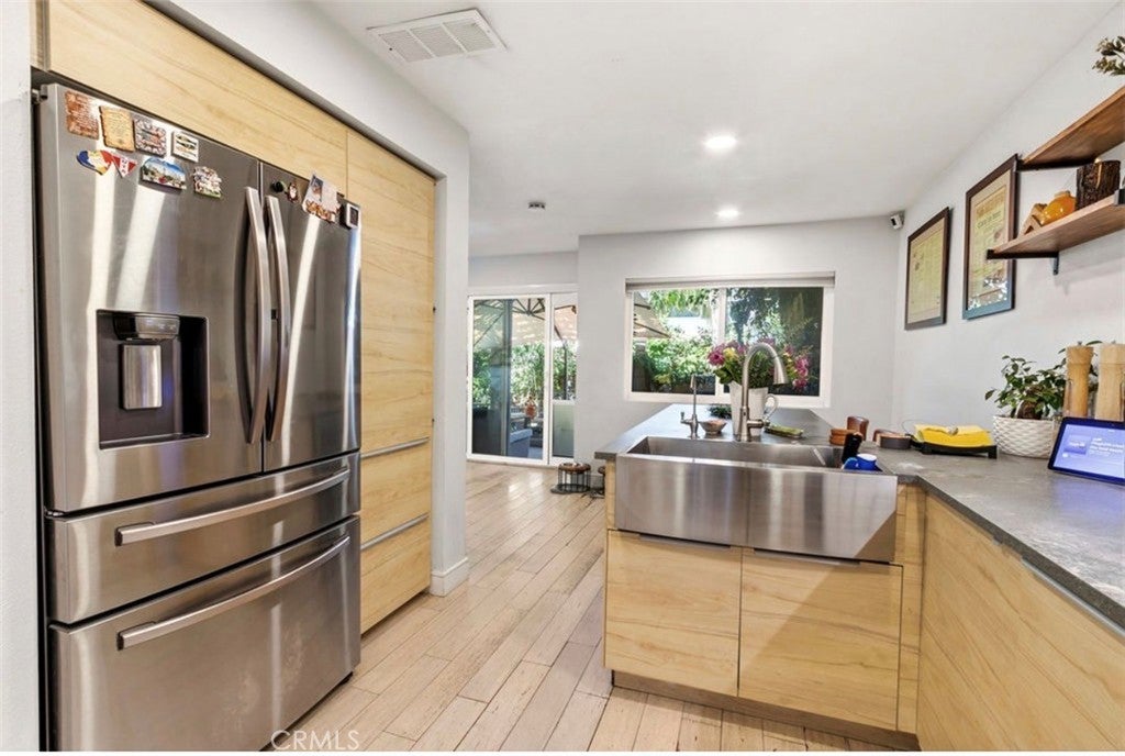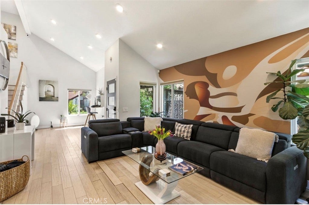 Welcome to this exceptional Anaheim Hills residence offering approximately 1,443 sq. ft. with 2 bedrooms and 2.5 bathrooms. This thoughtfully curated home showcases quality upgrades throughout, including distressed bamboo flooring, recessed lighting, and a light-filled open-concept design. The refined kitchen features a center island and built-in wine cooler, seamlessly blending style and functionality for everyday living and entertaining. Enhancements include energy-efficient windows, updated A/C and water heater, and a whole-house water softener system. The finished garage offers epoxy flooring and custom built-in cabinetry. Outdoors, enjoy a private garden retreat with mature fruit trees—lemon, grapefruit, tangerine, mango—and a passion fruit vine, creating a serene and inviting setting. A truly turnkey home reflecting comfort, elegance, and pride of ownership.