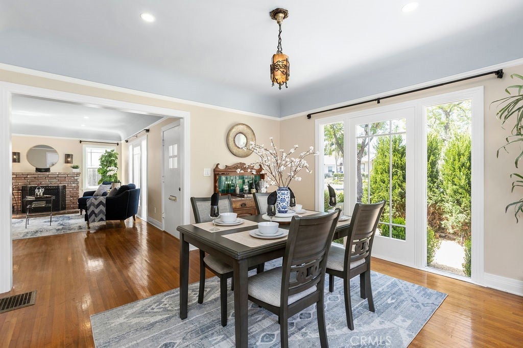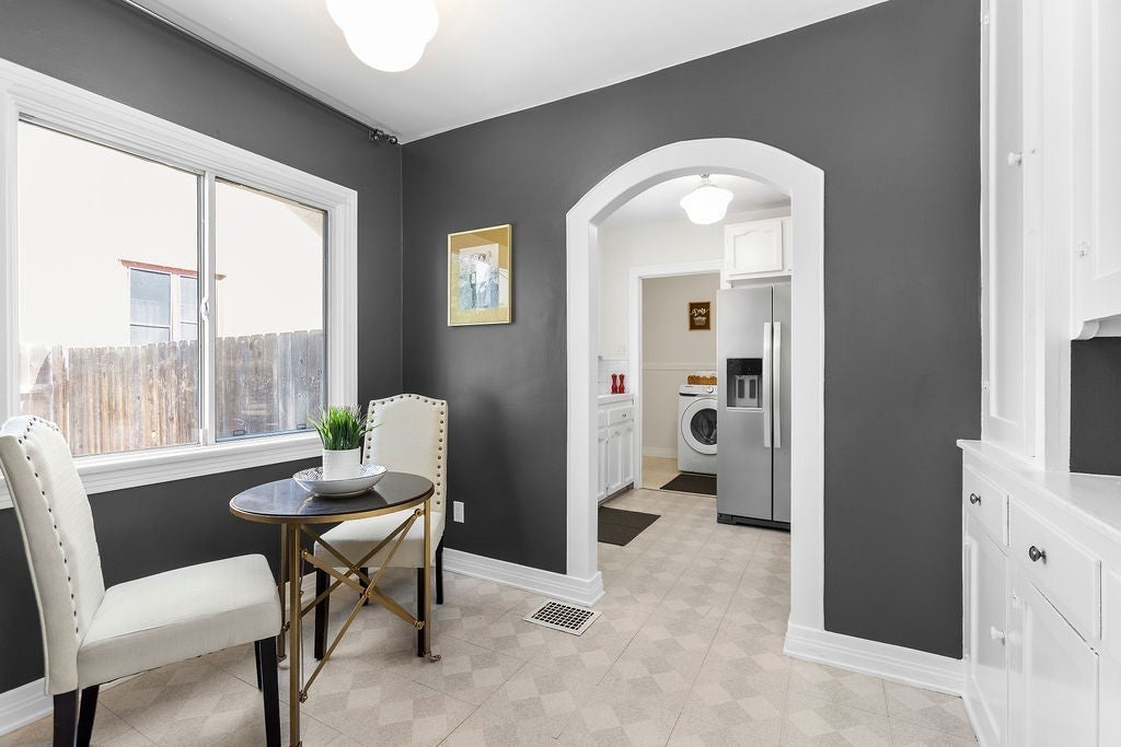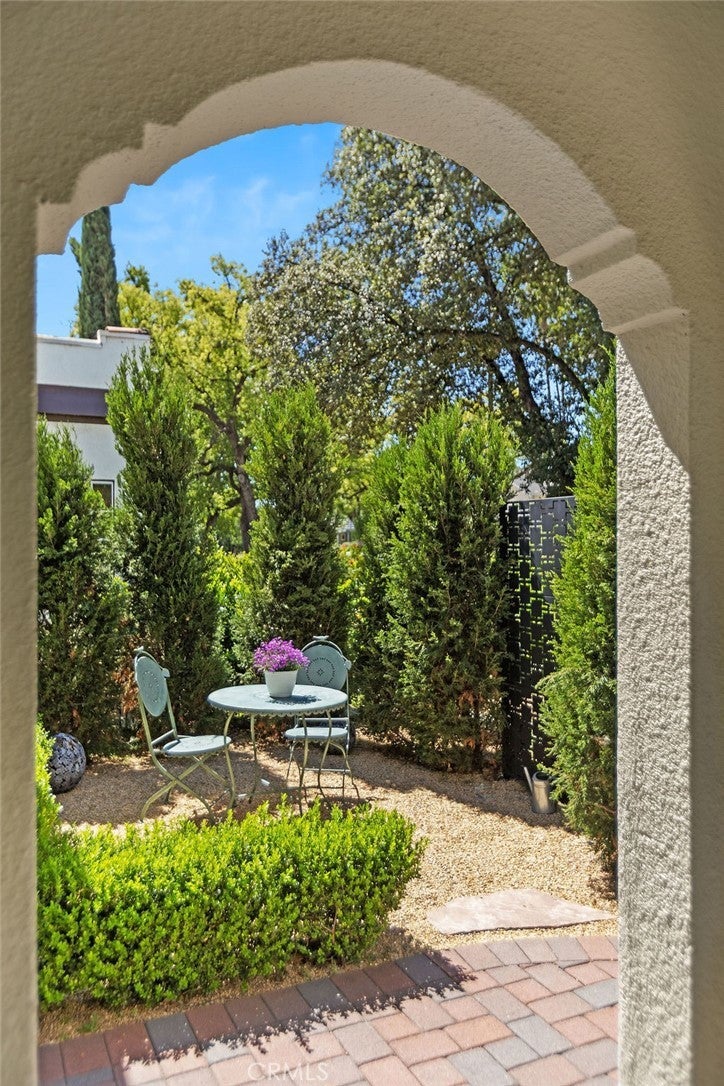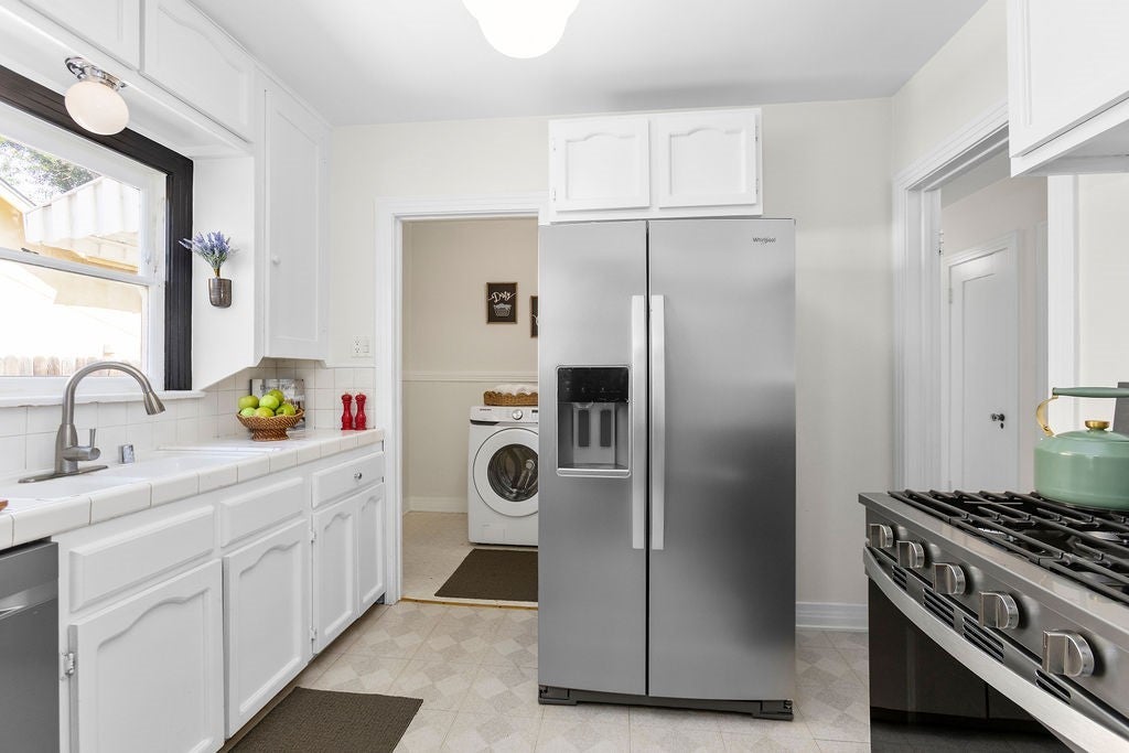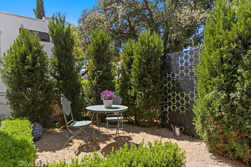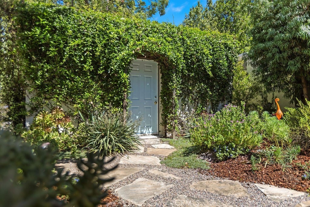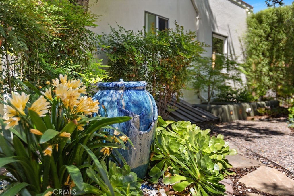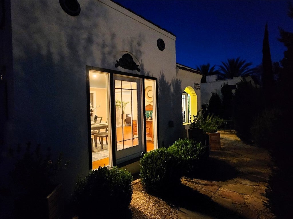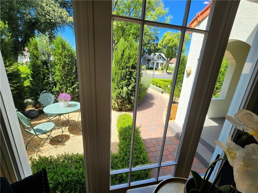 Simply Magical! This vintage Spanish-style is beautifully preserved from a bygone era, blending timeless character with thoughtful modern updates. Meticulous landscaping and raised planter with Spanish inlay guide you to a welcoming front porch, covered in Ludowici roof tile and complemented by a private sitting area framed by mature juniper for added privacy. This 3-bedroom, 1 spacious bathroom with dual sinks and custom tile, offers old-world charm at every turn. Enter and you will be greeted with a light filled living room anchored by a classic brick fireplace and dramatic floor-to-ceiling windows. The formal dining room continues the elegance with matching windows and a vintage statement light fixture. The kitchen is both charming and functional, offering new stainless-steel appliances (including refrigerator) and a cozy breakfast room with a built-in-buffet. A separate laundry room just off the kitchen includes a new washer and dryer, along with direct access to the driveway. Outside the property continues to shine. A long driveway leads to a single car detached garage and a grand garden archway that opens to a serene backyard retreat! Enjoy a terracotta tile-covered patio with a rustic teak dining table seating eight, while flagstone pathways wind through lush, raised garden beds and a tranquil water feature - all surrounded by mature foliage for ultimate privacy. Additional amenities: hardwood flooring; architectural plans to add bathroom + remodel kitchen and laundry without expanding the homes footprint; 2021 - central air conditioning, seismic foundation retrofit with bolting & recessed lighting in living & dining rooms; 2022 - water drainage system (backyard); 2025 - attic insulation replacement, gazebo (backyard) & the list goes on... This home truly has the "IT" factor - an exceptional blend of character, comfort, and charm.