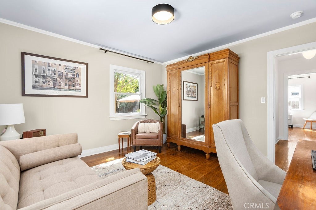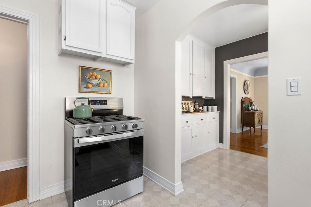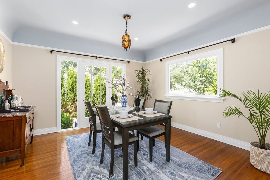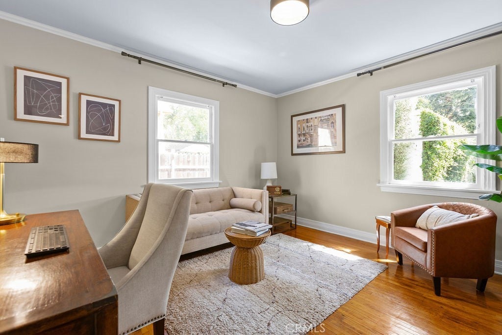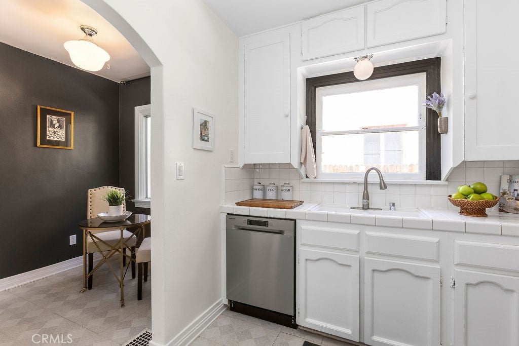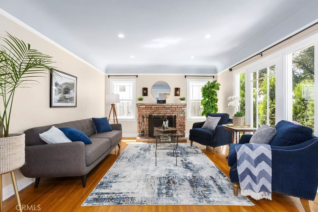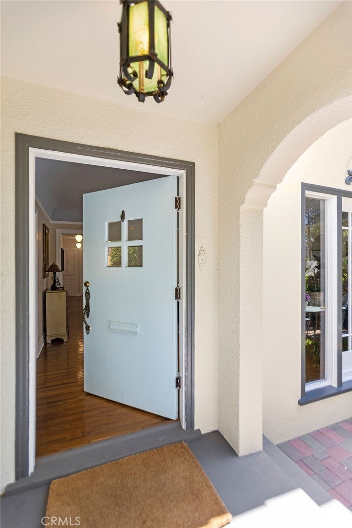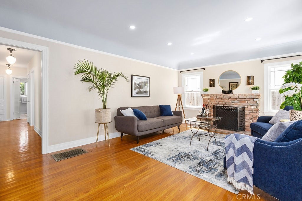 Simply Magical! This vintage Spanish-style is beautifully preserved from a bygone era, blending timeless character with thoughtful modern updates. Meticulous landscaping and raised planter with Spanish inlay guide you to a welcoming front porch, covered in Ludowici roof tile and complemented by a private sitting area framed by mature juniper for added privacy. This 3-bedroom, 1 spacious bathroom with dual sinks and custom tile, offers old-world charm at every turn. Enter and you will be greeted with a light filled living room anchored by a classic brick fireplace and dramatic floor-to-ceiling windows. The formal dining room continues the elegance with matching windows and a vintage statement light fixture. The kitchen is both charming and functional, offering new stainless-steel appliances (including refrigerator) and a cozy breakfast room with a built-in-buffet. A separate laundry room just off the kitchen includes a new washer and dryer, along with direct access to the driveway. Outside the property continues to shine. A long driveway leads to a single car detached garage and a grand garden archway that opens to a serene backyard retreat! Enjoy a terracotta tile-covered patio with a rustic teak dining table seating eight, while flagstone pathways wind through lush, raised garden beds and a tranquil water feature - all surrounded by mature foliage for ultimate privacy. Additional amenities: hardwood flooring; architectural plans to add bathroom + remodel kitchen and laundry without expanding the homes footprint; 2021 - central air conditioning, seismic foundation retrofit with bolting & recessed lighting in living & dining rooms; 2022 - water drainage system (backyard); 2025 - attic insulation replacement, gazebo (backyard) & the list goes on... This home truly has the "IT" factor - an exceptional blend of character, comfort, and charm.