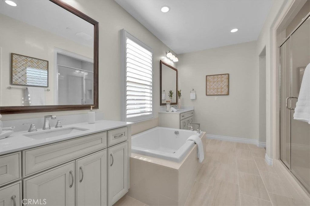 RARE - Upgraded, Bright and Airy, Single-family Home located in the highly desirable Eastwood Village in Irvine! This large home includes 4 bedrooms and 3 bathrooms + an upstairs flex area! The very bright and open floor plan has a spacious living room that flows seamlessly to both kitchen and dining room. The living area opens to the gourmet kitchen with a large center island. Features granite kitchen countertops with upgraded full backsplash and white kitchen cabinets, stainless steel appliances = 6-burner cook top, build-in ovens, microwave, refrigerator and dishwasher. One Bedroom with Bathroom/Shower on the first floor. On the second floor, you will find a loft and three bedrooms! A master bedroom suite with walk-in closets, double sinks, stand-alone tub and large walk in shower! Enjoy the parks, swimming pools, and kids playground and just a short walk to Eastwood Elementary School! Zoned to Sierra Vista Middle School and Northwood High School! Close to the Jeffrey Trail Open Space Trail, Woodbury town center, and major Freeways. Welcome Home!