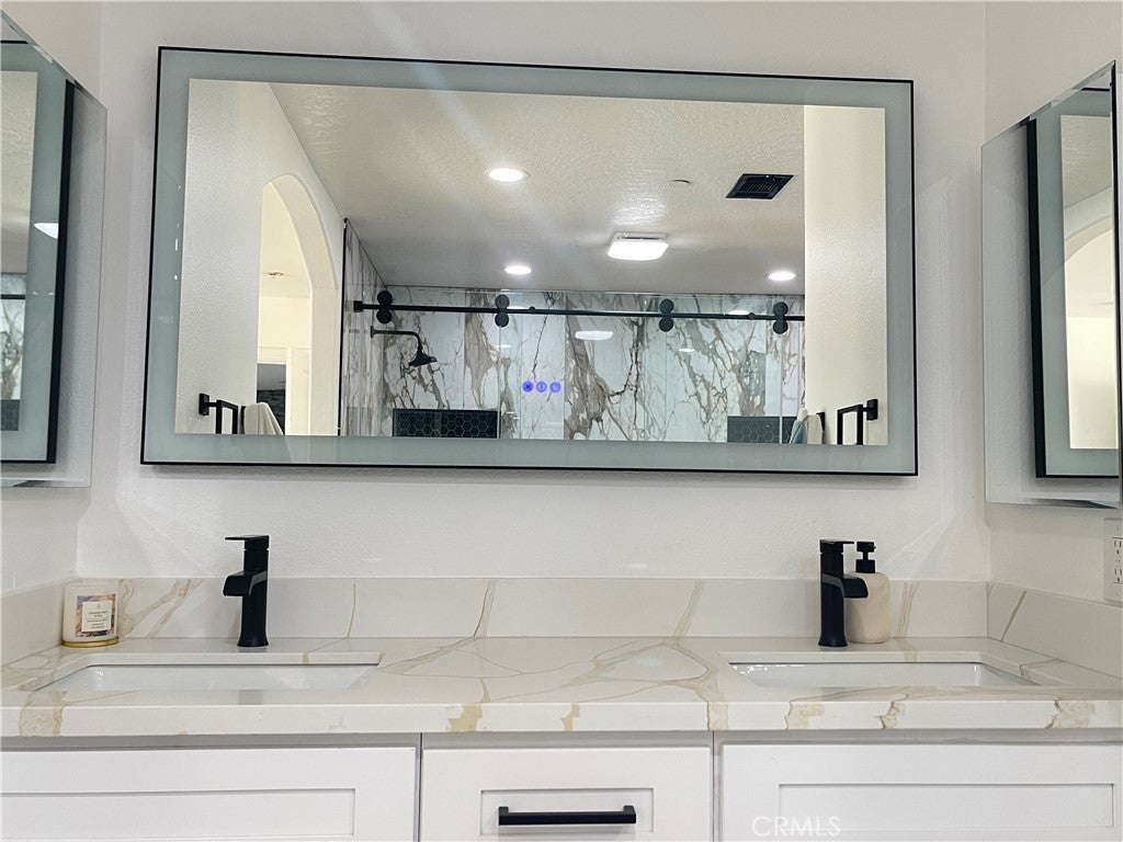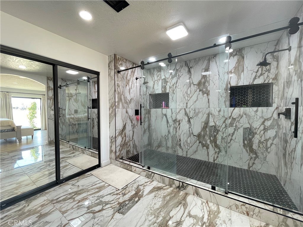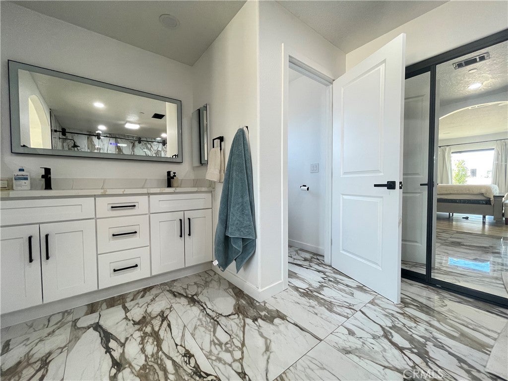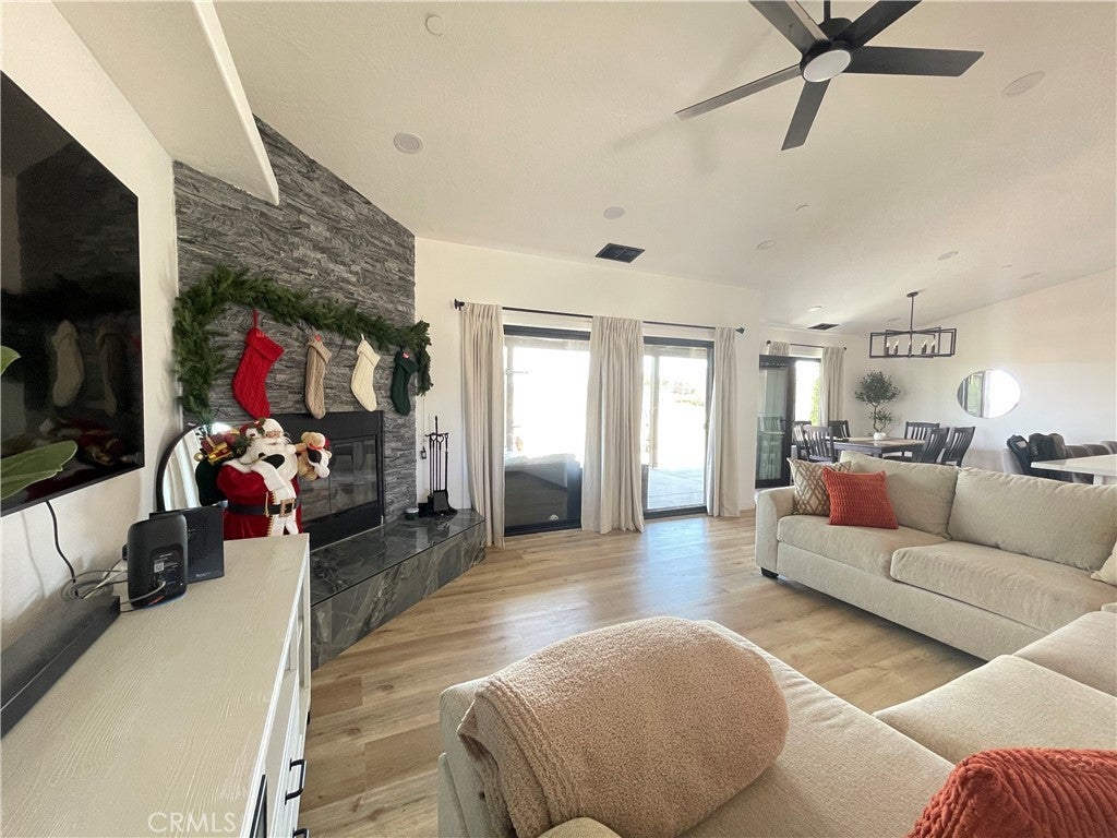 Welcome to this stunning ranch style home sitting on one acre lot, featuring many modern upgrades and a functional open concept floor plan that offers both sophisticated style and cozy comfort. The inviting living room, anchored by a charming fireplace, transitions through an elegant new door to a private patio; your own serene retreat for morning coffee or sunset entertaining. Soaring ceilings and modern black-framed windows bring an abundance of natural light throughout the house. The master suite is a true sanctuary, featuring a large upgraded sliding door that opens to the back yard and a masterfully designed walk-in shower enclosure, highlighting dual rainfall showers and sleek matte black hardware. The oversized design offers a seamless, spa-inspired experience. A beautiful and functional gourmet kitchen flows into the living area with ample new white shaker cabinets, large walking pantry and thoughtfully designed quartz counter space that comfortably accommodates seating for casual dining or evening cocktails perfect for everyday living and entertaining. New beautiful large format tiles, water proof luxury vinyl plank flooring, windows, doors and recessed lights have been installed throughout. Additional upgrades include fresh interior and exterior paint, bathrooms with new vanities, sinks, hardware, toilets, shower doors, a LED anti-fog mirror in the master, laundry room with white shaker cabinets, quartz countertops and more. A generous driveway leads to a huge 3-car garage and a large 1 acre lot to park your RV and bring all your toys. No mello-roos, no HOA and fully paid solar panels. This house offers the perfect blend of beauty, comfort, and easy truly a place you’ll love to call home.