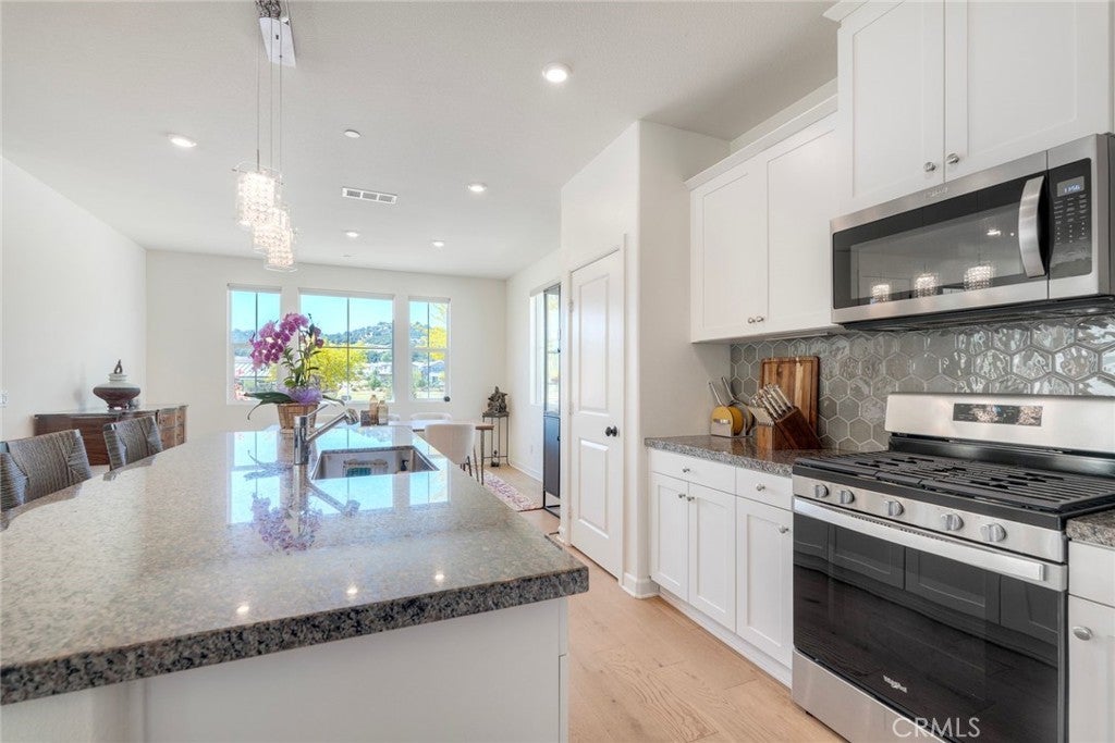Welcome to 27909 Silo Lane, a stunning contemporary home in the highly sought-after Park Circle community of Valley Center, in Northern San Diego. Built in 2022, this beautifully designed residence blends modern, quiet elegance with everyday comfort, offering 4 spacious bedrooms, 3 bathrooms, a 3-car garage, and approximately 2,421 sq. ft. of thoughtfully designed living space. Step into an inviting open-concept floor plan, filled with natural light and elevated finishes throughout. The open kitchen is the heart of the home, featuring granite countertops, stylish backsplash, abundant cabinetry, and a large island perfect for entertaining. From here, there is a seamless flow into the dining and living areas for a warm yet sophisticated atmosphere. The luxurious primary suite offers a private balcony overlooking a scenic park and mountain views—perfect for morning coffee or evening relaxation. The spa-inspired bathroom and spacious walk-in closets offer both comfort and functionality. Generously sized bedrooms offer flexible living options to suit a growing family.Perfectly positioned across from a vibrant park, this home offers a rare setting where scenic views and neighborhood charm come seamlessly together. The Zen-inspired backyard offers a quiet elegance, which is low-maintenance, functional, and versatile. This outdoor space is ideal for relaxing and enjoying indoor-outdoor living, amidst the backdrop of bright light and stunning views. Residents of Park Circle enjoy year-round access to parks, walking trails, community spaces, and a vibrant neighborhood atmosphere. Whether you're seeking a move-in-ready home, picturesque surroundings, or a peaceful community lifestyle, 27909 Silo Lane delivers the perfect balance of sophistication and effortless comfort.