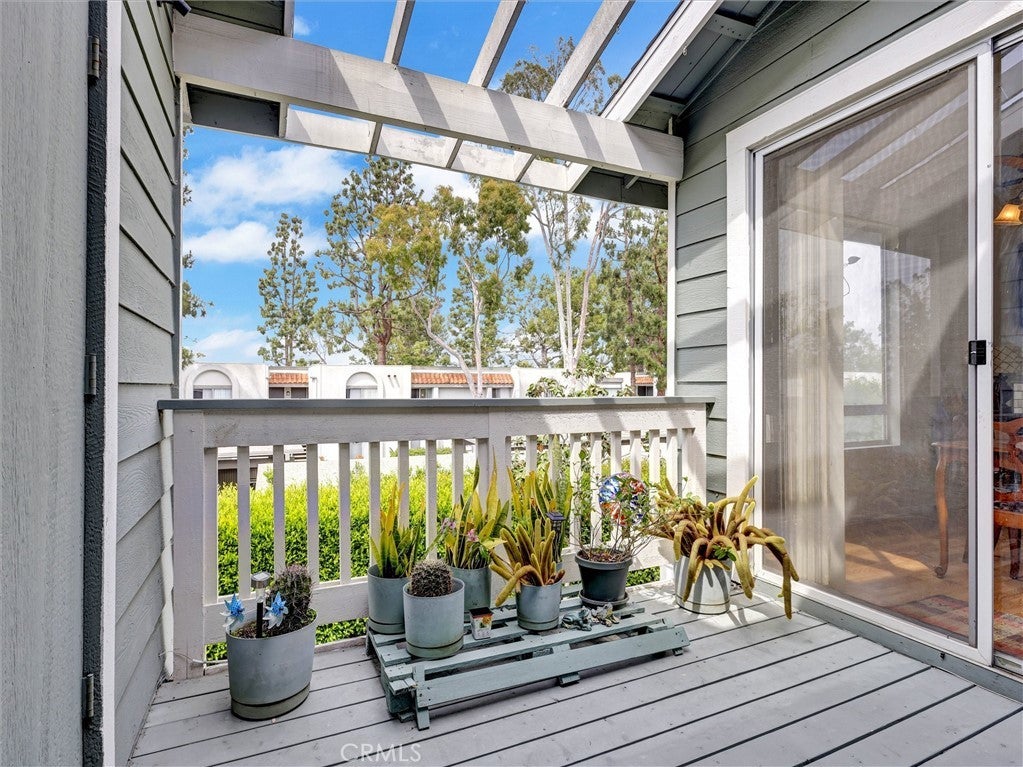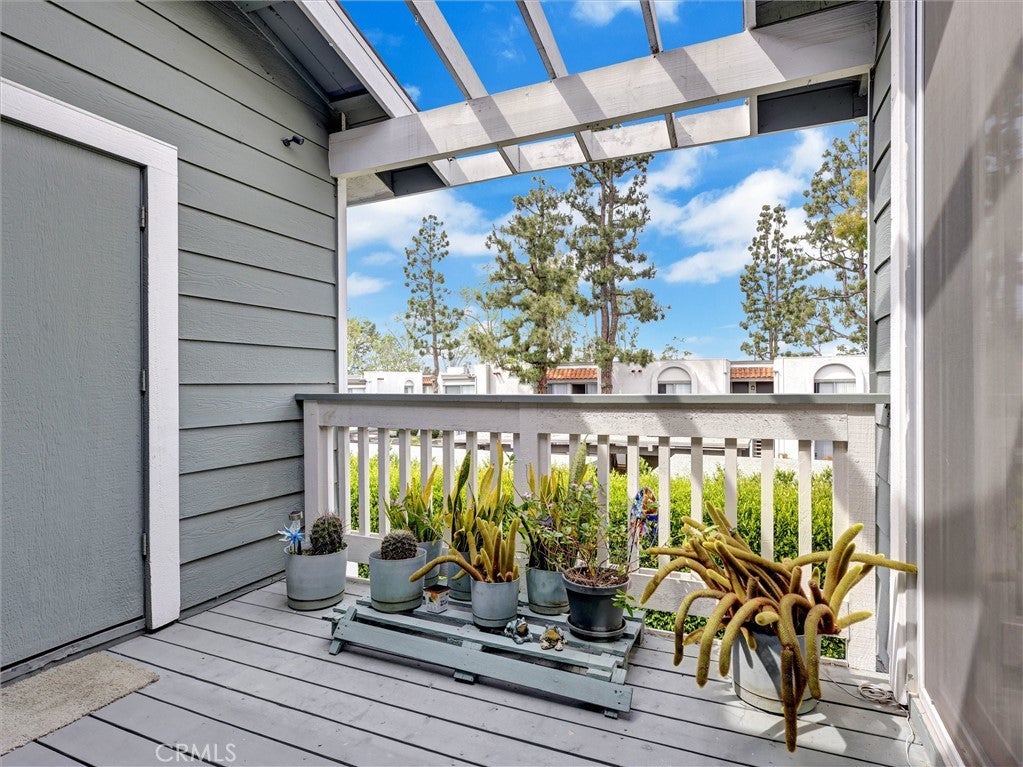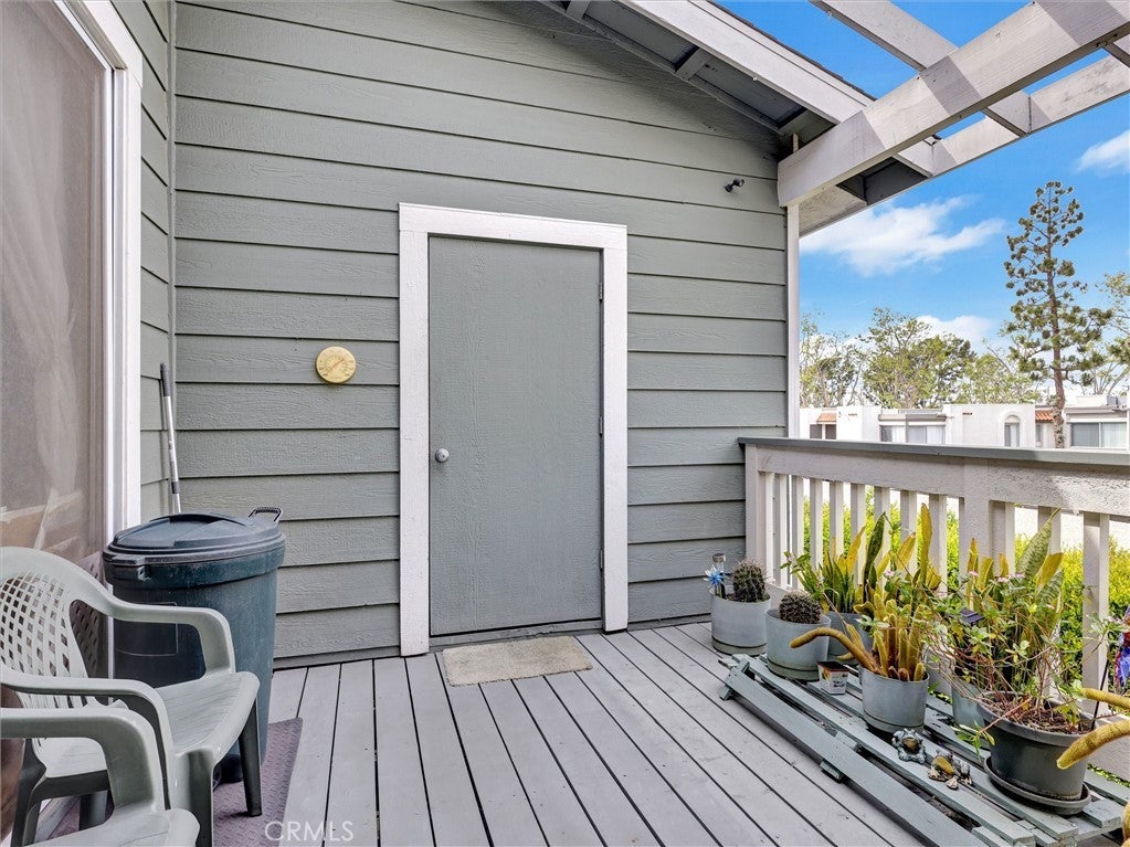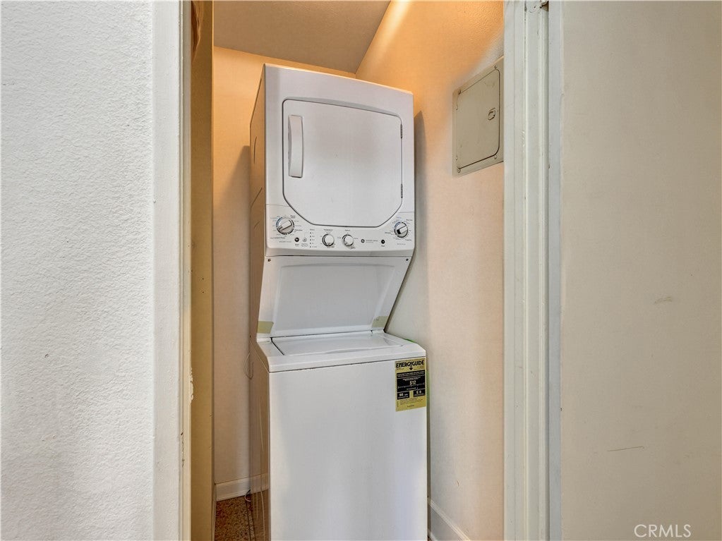 You are invited to make your home at this private and quiet New Chase condominium, in a premium location, priced to give you the savings to make it a trophy! This building side offers the most private and quiet situation, facing greenery and a community greenbelt, with no drive-by traffic. The vaulted ceilings of this 2 bedroom 1.25 gem make it feel and appear larger than it’s size. The large primary bedroom offers a separate vanity and sink, a huge walk-in closet, and a sliding door exit to the private balcony patio. A second bedroom has its own large closet with sliding door, and easy access to the bathroom and laundry closet. A stackable washer/dryer unit is included! The balcony is also accessible from a slider in the dining area, and a large exterior storage closet is great for your season decorations, or other items. Everyone loves the New Chase grounds, where residents have an assigned covered carport space (#284) and permits for additional vehicles. Parking is a breeze inside this gated community, and a convenient online temporary permit portal is available for overnight guests. The dues at $515/month are incredibly low, as they include hot and cold water, trash, a sparkling pool and two spas—recently remodeled. The lovely grounds are extremely well-kept, and the community is very amenable to pet ownership. Your FHA/VA is welcome, as the responsibly managed association is approved for government financing programs. Nearby within walking distance are the amazing Mile Square Park, Centennial Park, scenic trails, shopping centers, fine dining, and top rated schools. You will be a short drive to the 405 & 22 freeways. Costco, and South Coast Plaza-and a wonderful 7 mile bike ride to the beach. Don’t miss it!