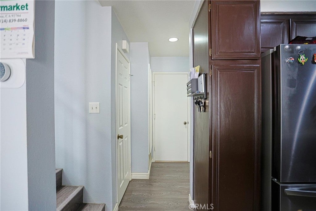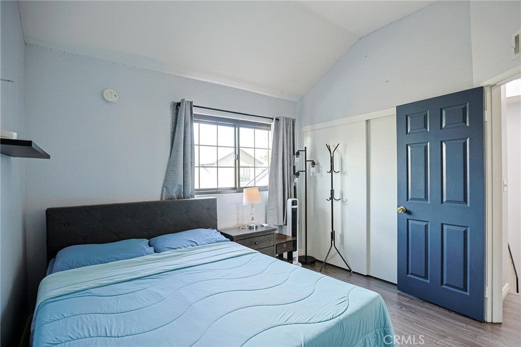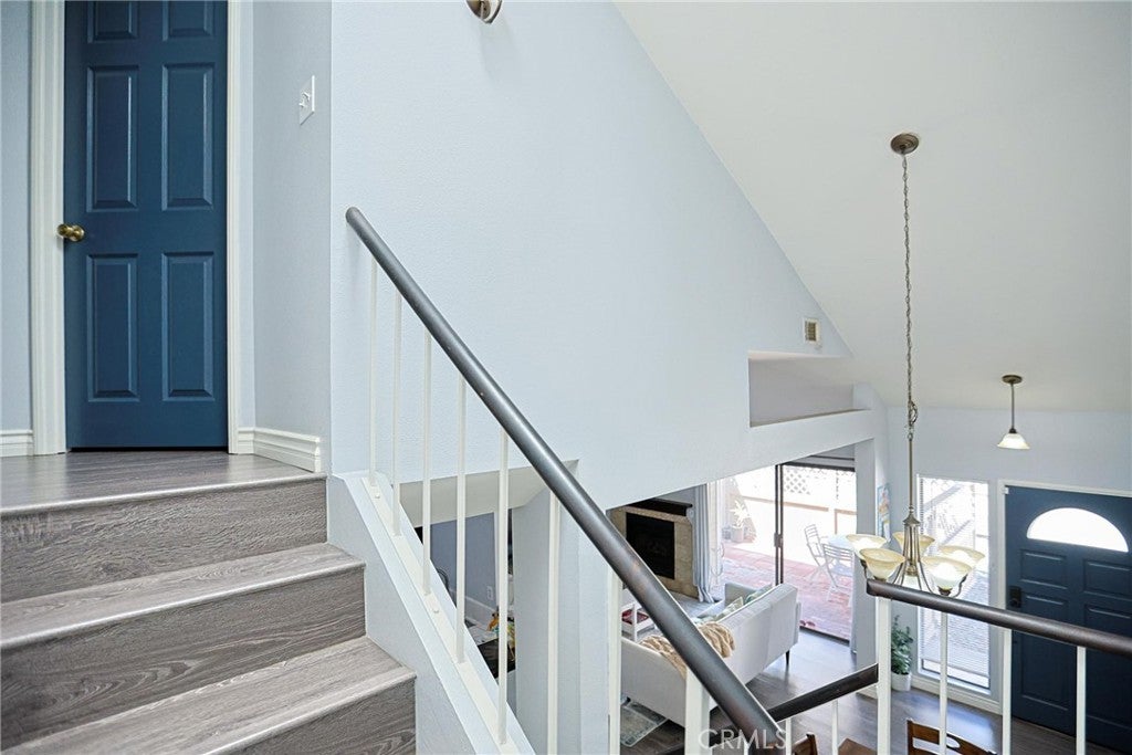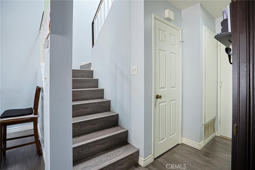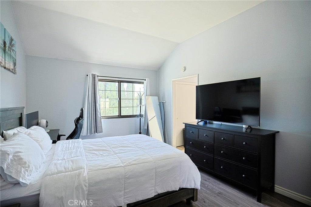 Welcome to this beautifully maintained condo in the gated community of Wellington Landing, where soaring ceilings, abundant natural light, and multiple skylights create a bright and inviting atmosphere for both everyday living and entertaining. The main level features a spacious family room, dining area, open kitchen, convenient half bath, central A/C and heat, and direct access to the attached two-car garage. Just steps from the garage, you will also find multiple easy-access community parking spaces with no permit required, offering added convenience for guests and extra vehicles. The home is further enhanced by double-pane windows and modern laminate flooring throughout, adding both comfort and efficiency. Upstairs, both bedrooms feature private en-suite bathrooms, including a generously sized primary suite with the comfort and scale often found in single-family homes. Move-in ready and exceptionally well cared for, this home shows beautifully. Residents enjoy access to a community pool and spa, while nearby John Marshall Park, highly regarded public and private schools, and convenient access to the 5 Freeway further enhance the home’s outstanding location and appeal.