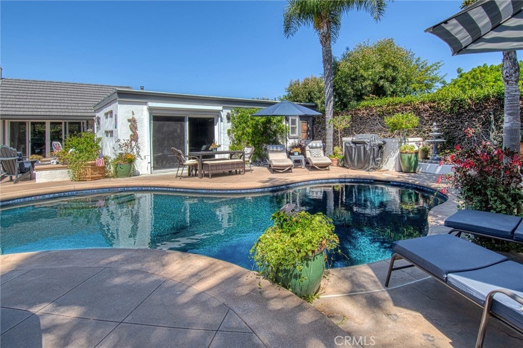 Beautiful FULLY FURNSIHED POOL home in the Coastal Community of Niguel Shores. This single story 3 bedroom, 2 bath property has been fully furnished. Perfect location on the ocean side of Pacific Coast Highway. Property can sleep up to 8 adults with one cal king in primary bedroom, 2 queen beds in the guest bedrooms and 1 queen murphy bed in living room including 4 TVs throughout home. Upgrades include, Travertine floors, water softener/purification system with pressure booster, upgraded bathrooms and kitchen, vaulted ceilings in living room with exposed beams. Enjoy the fully landscaped backyard paradise with private pebble tech pool , SPA, fire pit, 4 fountains, outdoor dining area, lounge chairs, gas grill, pizza oven and herb garden. HOA amenities include junior Olympic sized pool (heated year-round), spa, tennis courts, sports courts, playground, park, clubhouse and private beach bluff park/private beach access/parking at Strands Beach (8 min walk, 2 min drive). Close to Salt Creek Beach (15 min walk, 5 min drive), Monarch Beach Resort and Golf Course (21 min walk, 5 min drive), Dana Point Harbor (10 min drive). Fully Furnished including all kitchenware, 8 beach chairs, beach towels, wet suits, 4 boogie boards, sand toys and beach mat. Washer/dryer included with all utilities and cleaning service. Recent upgrades include: Pool resurfaced with pebble tech, new epoxy floors in garage, electrical updated with fast EV charger and added extra touches to the landscaping around property.