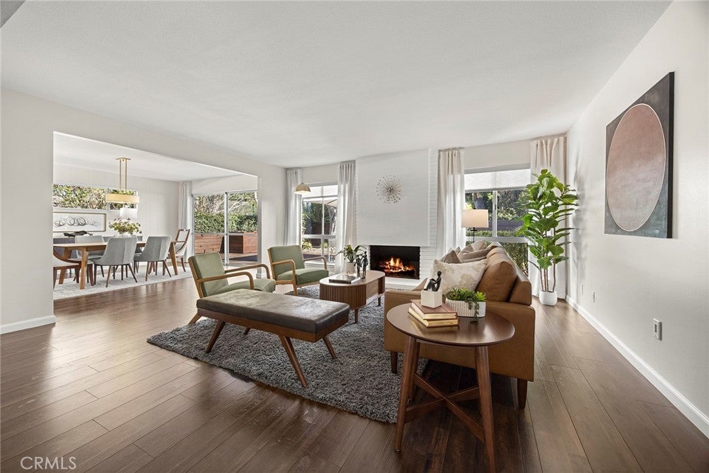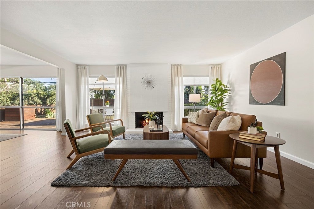Stylish, striking and exuding an understated cool vibe, this stunning mid-century modern residence is sure to impress, welcome to 620 E. Glenwood Avenue. Tucked into a quiet, tree lined cul-de-sac; crisp, sharp architectural details are complimented by a lush, tropical landscaped entryway. Double doors lead into a spacious, meticulous and FRESHLY PAINTED interior with wood flooring throughout the living areas and main hallway. The striking fireplace is balanced by two large windows overlooking the manicured backyard, the spacious living room flows perfectly into the formal dining room with stylish chandelier and a sliding door to the backyard and patio. A remodeled and perfectly appointed kitchen features quartz counters with a contrasting wood breakfast bar, a full suite of KitchenAid SS appliances including a 5-burner gas cooktop, side-by-side fridge and quality shaker white cabinetry. A breakfast nook, ½ guest bathroom and direct garage access complete this side of the home. Down the light filled hallway with skylight, double doors lead into a surprisingly spacious primary suite with dual closets, one a walk in, and a sliding door to the backyard. The en-suite has been remodeled with a perfect mid-century modern style featuring custom tile flooring and shower enclosure and a beautiful dual sink vanity. Three secondary bedrooms with new carpet and an updated full bathroom are found as you continue down the hallway. The private and stylish backyard enjoys a wood slat patio and great horizontal fencing detail. Owned, fully paid off 3.6 Kw SOLAR system too. 7 year old membrane GTA roof too! Water heater is 1 year old. Don’t miss this spacious and stylish home – it likely won’t remain on the market long.