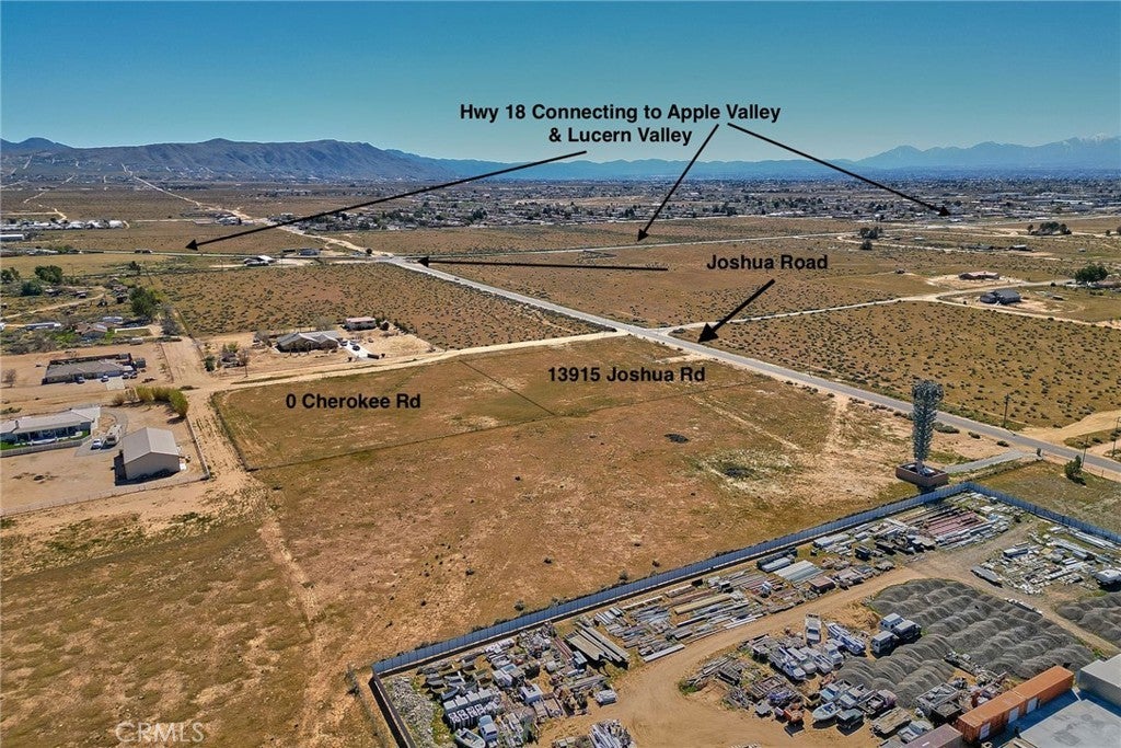 Great opportunity to start or expand your business endeavors on a main street corner lot. This lot is flat / leveled and wire fenced with spaces left open for future doors. The lot next to it (0 Cherokee Rd) is also for sale and is not currently fenced in between. These lots have tons of potential for business development in an expanding housing area of Apple Valley, CA. They are on a prime location since they are at less than a mile from the 18 Hwy which rubs through Apple Valley and leads to Lucerne Vally too! According to the San Bernardino county Land Use Services, there are many business options for this zoning *supplement included - check them out! Around these lots, there are many existing homes and many more being built, so these homes will need goods and services ... perfect business opportunity! Invest today!