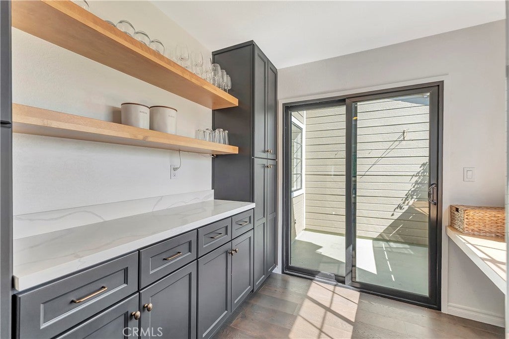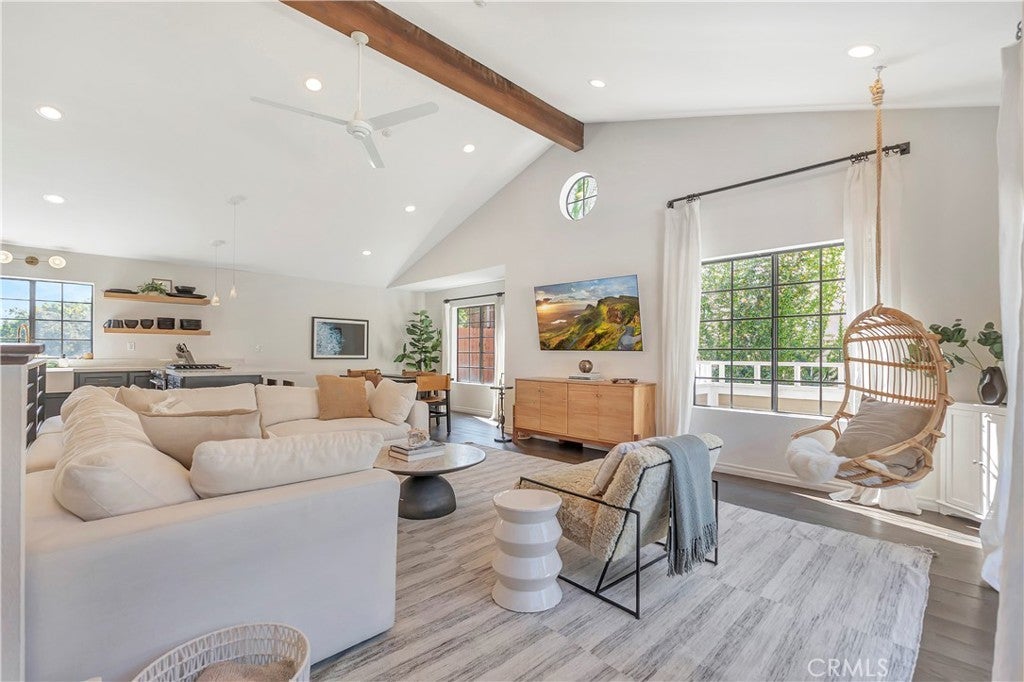 • Interior FeaturesBeamed Ceilings, Built-in Features, Balcony, Ceiling Fan(s), Separate/Formal Dining Room, High Ceilings, Living Room Deck Attached, Open Floorplan, Quartz Counters, Recessed Lighting, Bedroom on Main Level, Primary Suite, Bar, Dry Bar