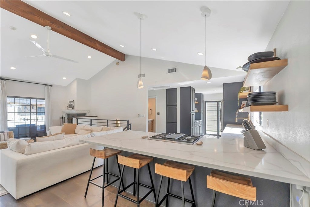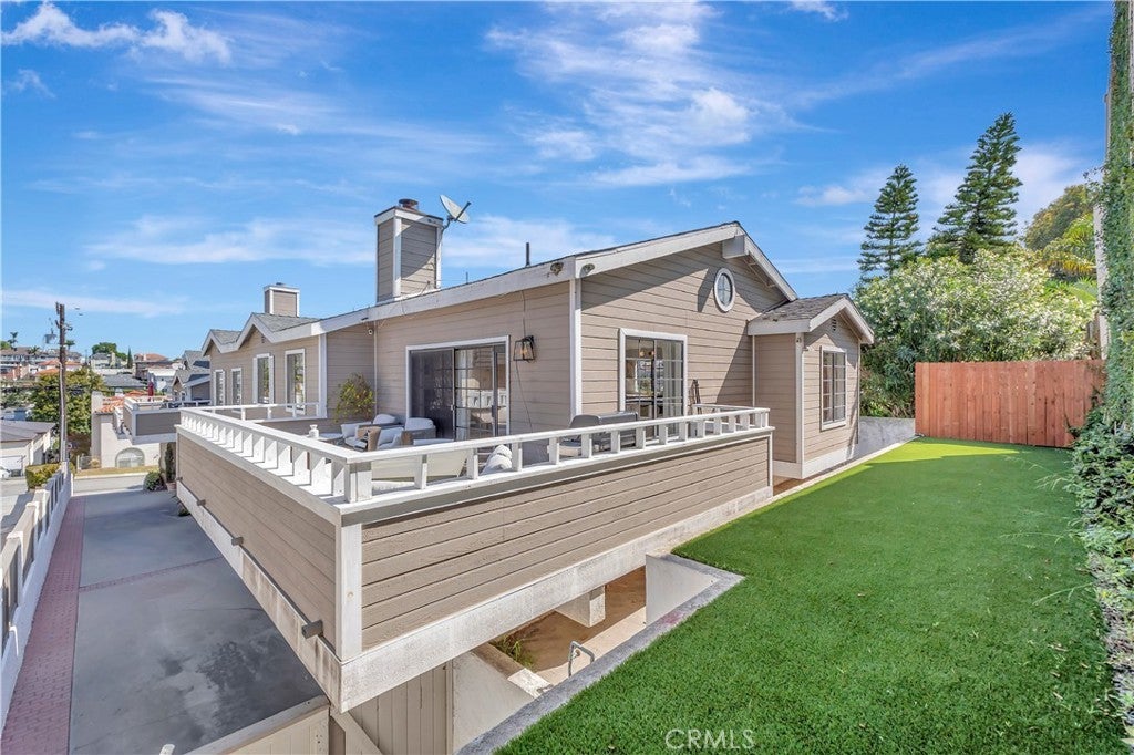 Located in Redondo Beach, this completely remodeled, turnkey condo/townhome offers three bedrooms and two baths, including a primary suite. Situated as the rear unit in the complex, the home provides enhanced privacy along with a nearby guest parking space located just outside the unit. The interior features vaulted ceilings, hardwood flooring throughout, and an open kitchen floor plan with updated finishes and a functional layout. Multiple private decks extend the living space outdoors, supporting coastal indoor-outdoor living. The property is located less than 2 miles from the beach, offering convenient access to the coastal lifestyle. It is also close to shopping, dining, and everyday conveniences, including nearby Starbucks and Chick-fil-A. Additional features include a two-car garage with direct access, finished with drywall and custom epoxy flooring. HOA amenities include a maintained common grass area.