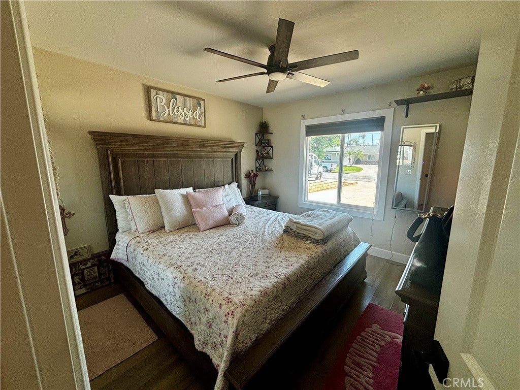 Welcome home to this beautifully maintained 3 bedroom, 2 bathroom single-family residence that offers comfort, style, and functionality in one of the area's most desirable neighborhoods. Step inside to discover gorgeous granite countertops throughout the kitchen and both bathrooms, paired with a spacious breakfast bar island perfect for casual meals and entertaining. The home features beautiful laminate flooring, ceiling fans in all bedrooms, and central air conditioning and heating for year-round comfort. The attached 2-car garage provides direct access into the house, and the oversized driveway offers ample parking plus plenty of room for your RV or boat. Outside, enjoy the relaxing backyard oasis complete with a covered patio, lush grass yard, planters, and a convenient storage shed—ideal for outdoor gatherings, gardening, or simply unwinding. Located in a friendly, peaceful, and meticulously maintained neighborhood with excellent schools and easy access to shopping, dining, parks, and all major conveniences. This turn-key home is move-in ready and perfect for families or anyone seeking a great place to call home.