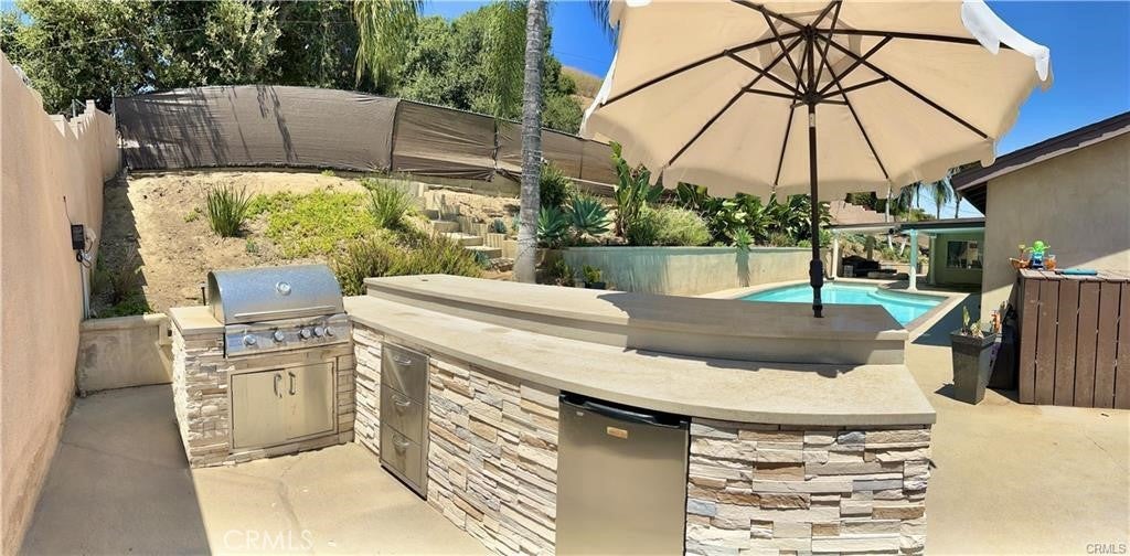 Newly remodeled and full of charm! This 3-bed, 2-bath home offers an open layout with a spacious dining area and a bonus flex space great for a home office, reading nook, or studio. Enjoy the updated kitchen and baths, modern recessed lighting, and a 2-car garage. Step outside to your private backyard oasis featuring a 12-foot deep heated pool, built-in gas grill, dishwasher, and plenty of space to entertain. Located in a peaceful cul-de-sac with private access to nearby hiking trails perfect for morning or evening walks. A great mix of comfort, style, and versatility this home has it all!