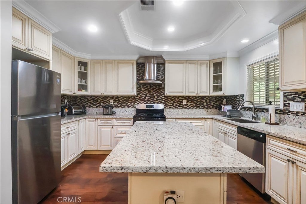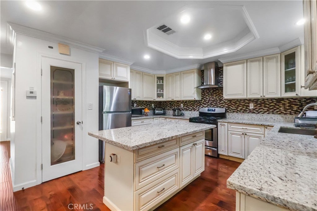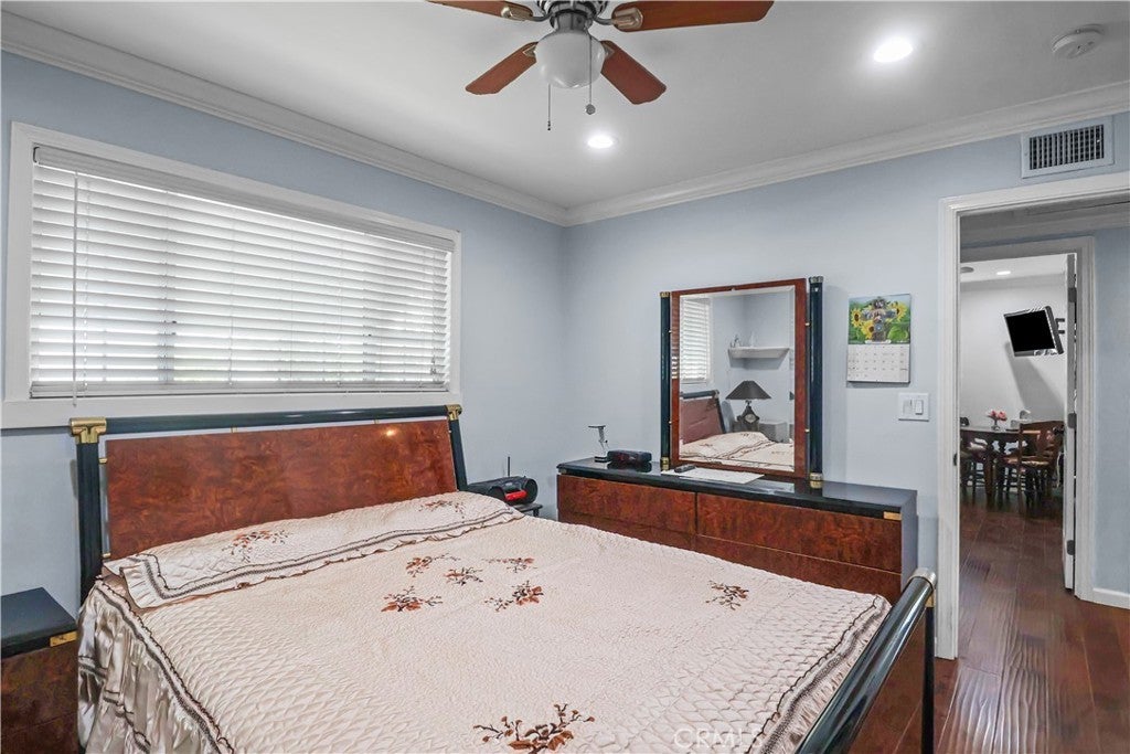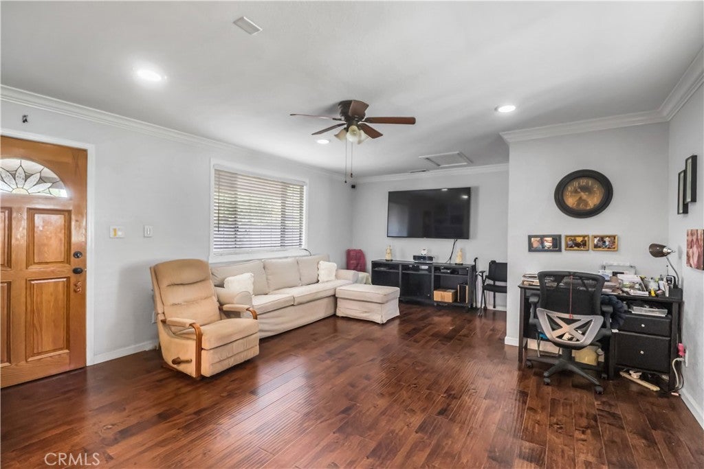 Welcome to this beautifully maintained three-bedrooms, two bath, single story home located just walking distance from schools, shopping and transportation. This home features a beautifully remodeled chef's kitchen with island and full backsplash, remodeled bathrooms, hardwood flooring throughout, and central heat and air conditioning. A spacious family room goes out to the lovely private backyard with a covered patio, perfect for year round use and ideal for family gatherings. There is also an additional covered patio on the side of the house, with fruit bearing trees. Set on a 7,574 sq. ft. lot, the home also includes an attached 2-car garage and a spacious driveway-ideal for additional parking. Also, brand new plumbing/sewage line throughout the house. This move-in ready home truly offers the perfect balance of modern design and practical living, the list of upgrades is too extensive to detail - you really have to see it in person!