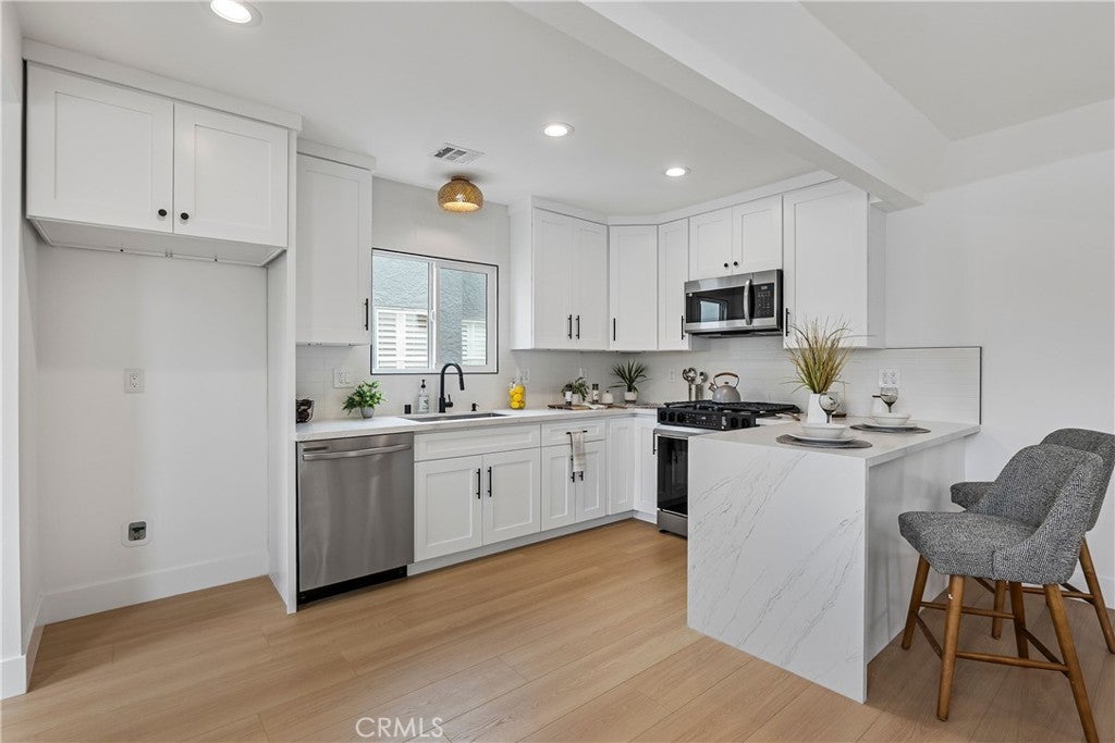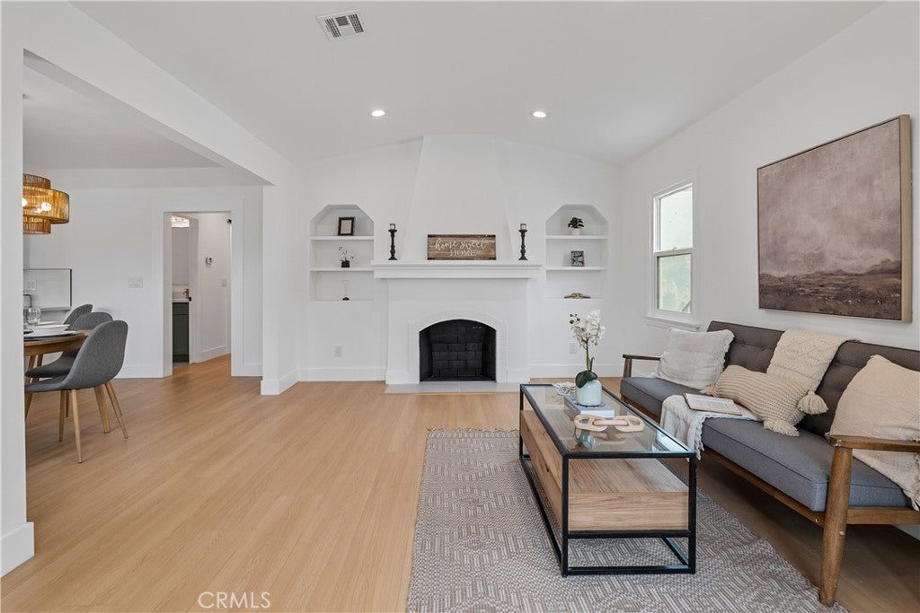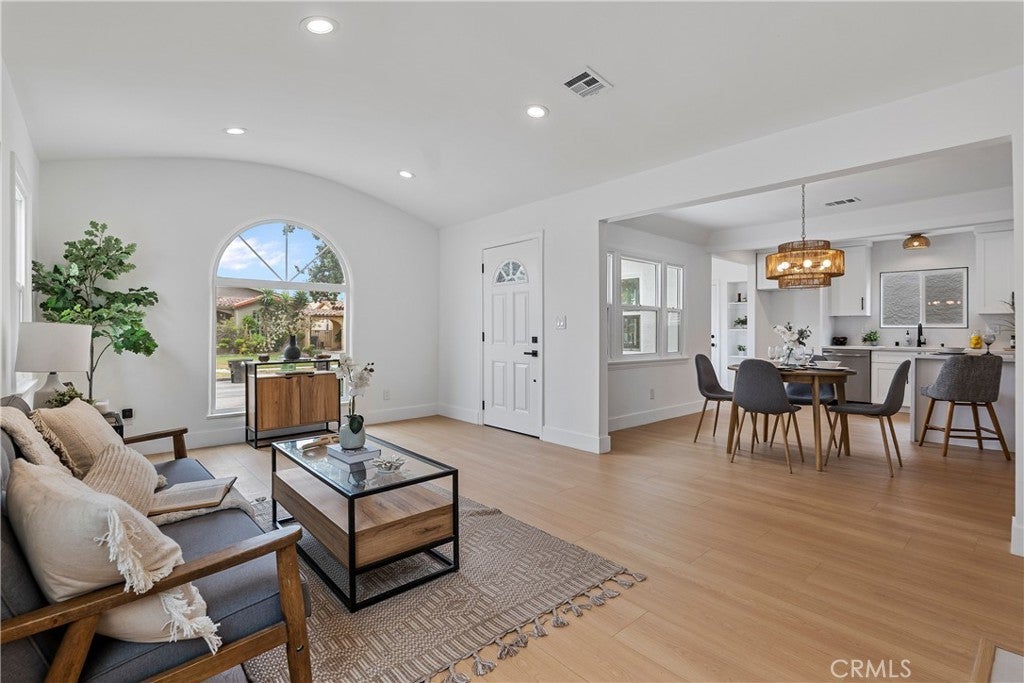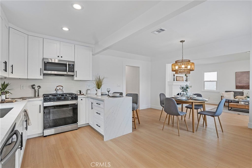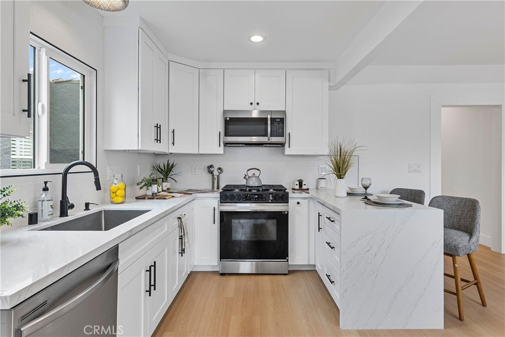 Welcome to this beautifully renovated single-story, Spanish-style home, where modern design meets luxurious comfort. Located in a highly desirable neighborhood in Los Angeles, CA. This stunning property boasts a spacious open floor plan with three generously sized bedrooms and various premium features that elevate your living experience. Two full bathrooms have been tastefully renovated with modern mid-century touches. Step inside through a chic front door and be greeted by the inviting ambiance, enhanced by recessed lighting, new white interior paint, and premium laminate wood flooring throughout the home. The heart of this home is the chef-inspired kitchen, complete with gleaming quartz countertops, all-new stainless steel appliances, shaker-style slow-close cabinetry, and a custom peninsula with a waterfall finish perfect for both cooking and entertaining. There is a warm and inviting family room, featuring a beautiful wood-burning fireplace that provides an ideal setting for relaxation. This home offers a detached garage that has been cleanly finished with drywall and paint, providing ample storage or to use as a gym/entertainment space. Enjoy the private and cozy backyard to host all of your special gatherings. With its thoughtful design, premium finishes, and a fantastic layout, this home is the perfect blend of modern living and comfort. Great location with all the amenities that Los Angeles has to offer, don't miss this chance to make this property your DREAM HOME!
