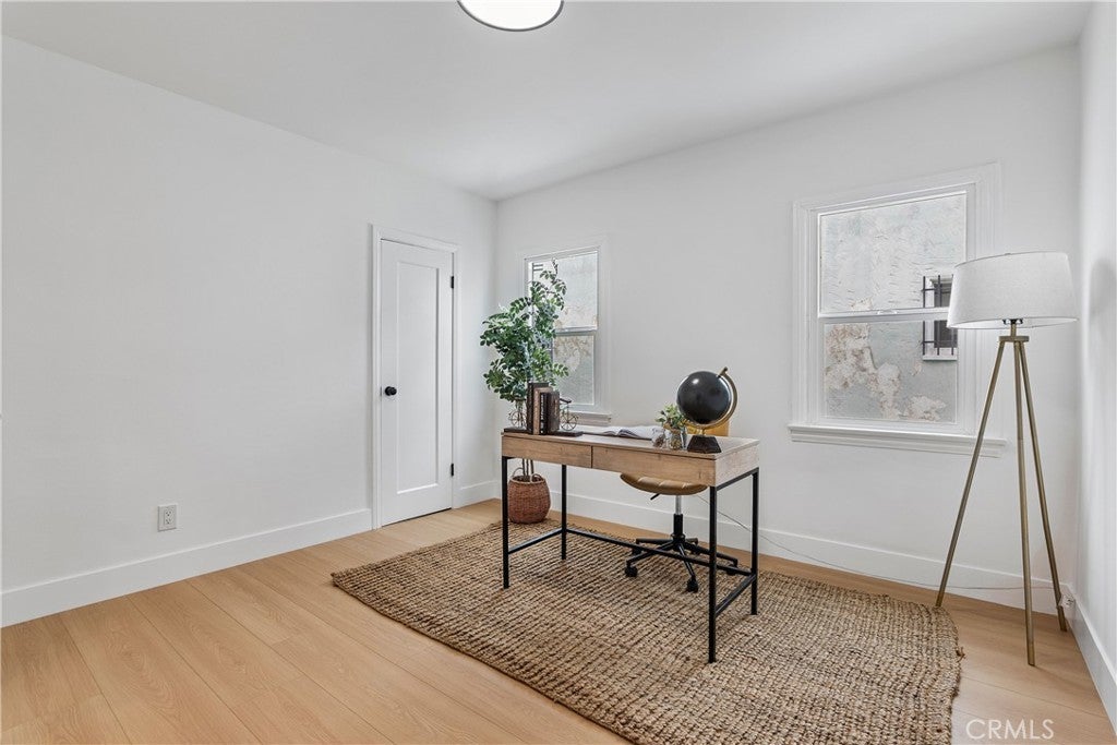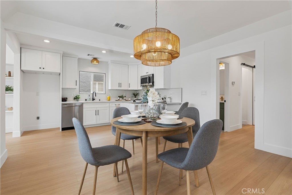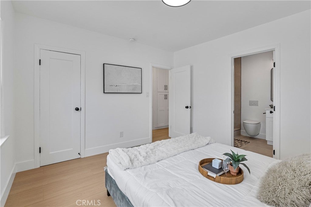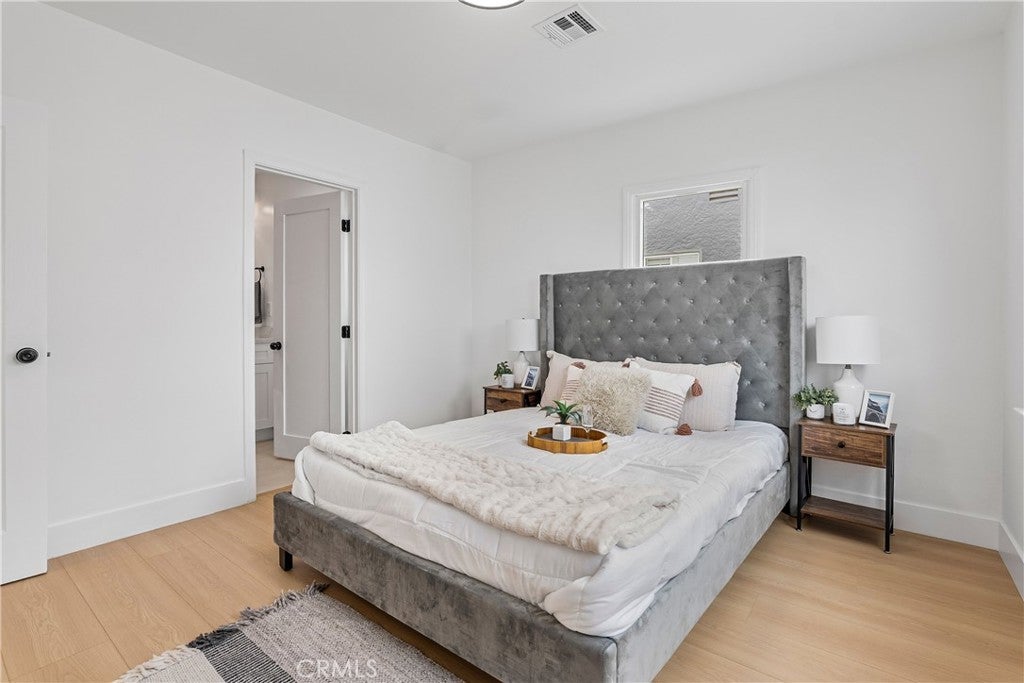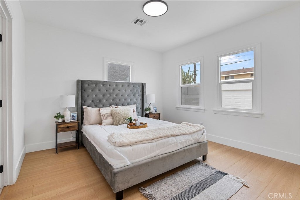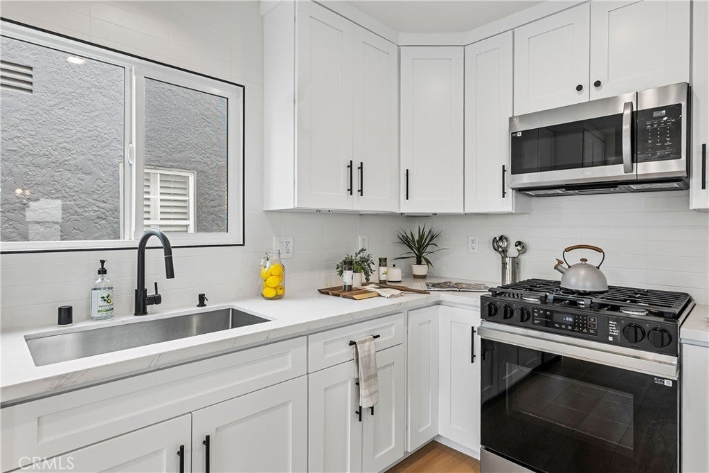 Welcome to this beautifully renovated single-story, Spanish-style home, where modern design meets luxurious comfort. Located in a highly desirable neighborhood in Los Angeles, CA. This stunning property boasts a spacious open floor plan with three generously sized bedrooms and various premium features that elevate your living experience. Two full bathrooms have been tastefully renovated with modern mid-century touches. Step inside through a chic front door and be greeted by the inviting ambiance, enhanced by recessed lighting, new white interior paint, and premium laminate wood flooring throughout the home. The heart of this home is the chef-inspired kitchen, complete with gleaming quartz countertops, all-new stainless steel appliances, shaker-style slow-close cabinetry, and a custom peninsula with a waterfall finish perfect for both cooking and entertaining. There is a warm and inviting family room, featuring a beautiful wood-burning fireplace that provides an ideal setting for relaxation. This home offers a detached garage that has been cleanly finished with drywall and paint, providing ample storage or to use as a gym/entertainment space. Enjoy the private and cozy backyard to host all of your special gatherings. With its thoughtful design, premium finishes, and a fantastic layout, this home is the perfect blend of modern living and comfort. Great location with all the amenities that Los Angeles has to offer, don't miss this chance to make this property your DREAM HOME!