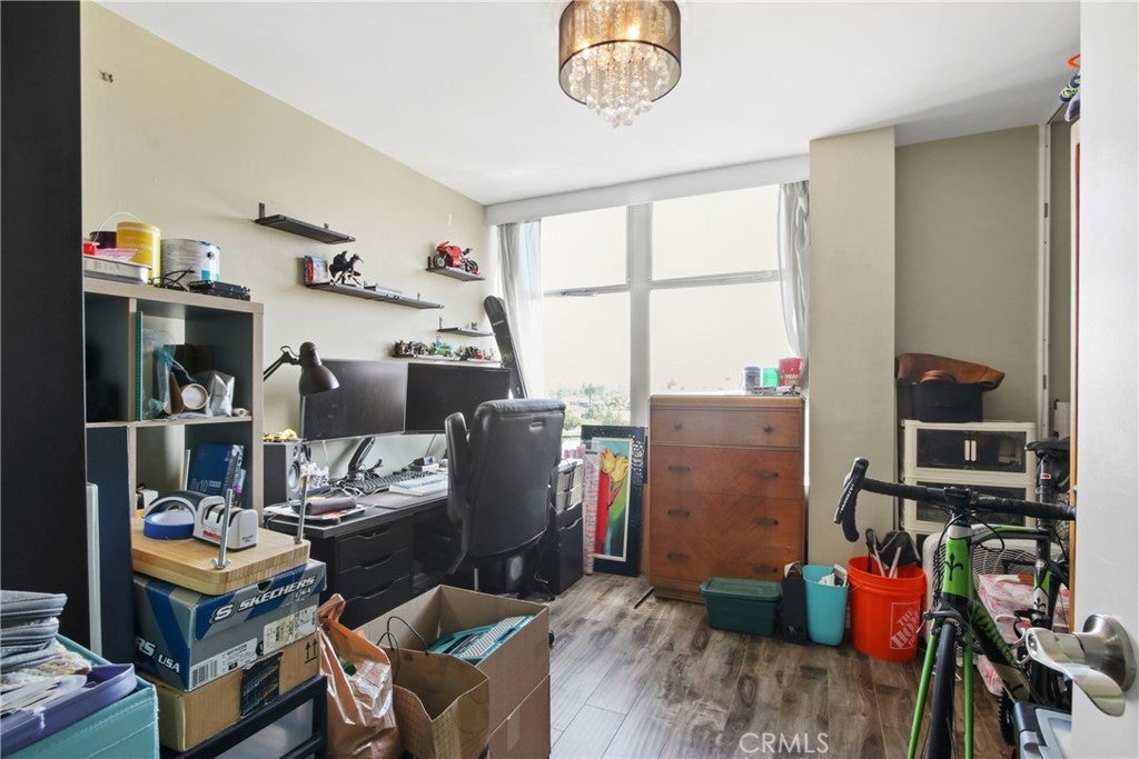 Welcome to urban coastal living in the heart of downtown Long Beach. This light-filled 2 bedroom, 1 bath condo offers an open living space framed by city skyline views and a delightful peek-a-boo water view. The living room flows to a dining area perfect for entertaining, while the kitchen features an efficient layout, all with wonderful views.. Both bedrooms are comfortably sized; the primary enjoys natural light and easy access to the bathroom. Hardwood/laminate flooring runs throughout the main areas, convenient building laundry, You can add laundry to your unit. Steps from restaurants, shops, nightlife, and transit — ideal for commuters or anyone who wants a true downtown lifestyle with occasional coastal breezes. Low-maintenance condo living with community amenities (secure entry) and just minutes to the waterfront and Shoreline Village. THE SELLER IS OFFERING 1% BACK OF THE PURCHASE PRICE TOWARDS BUYERS' CLOSING COSTS. unit #609