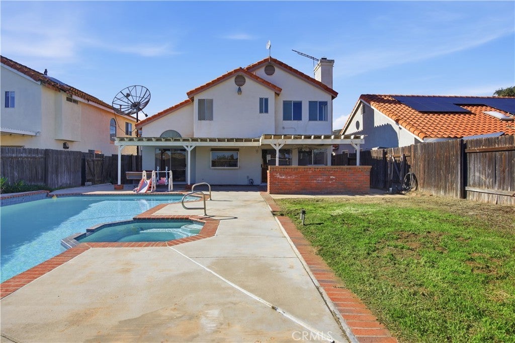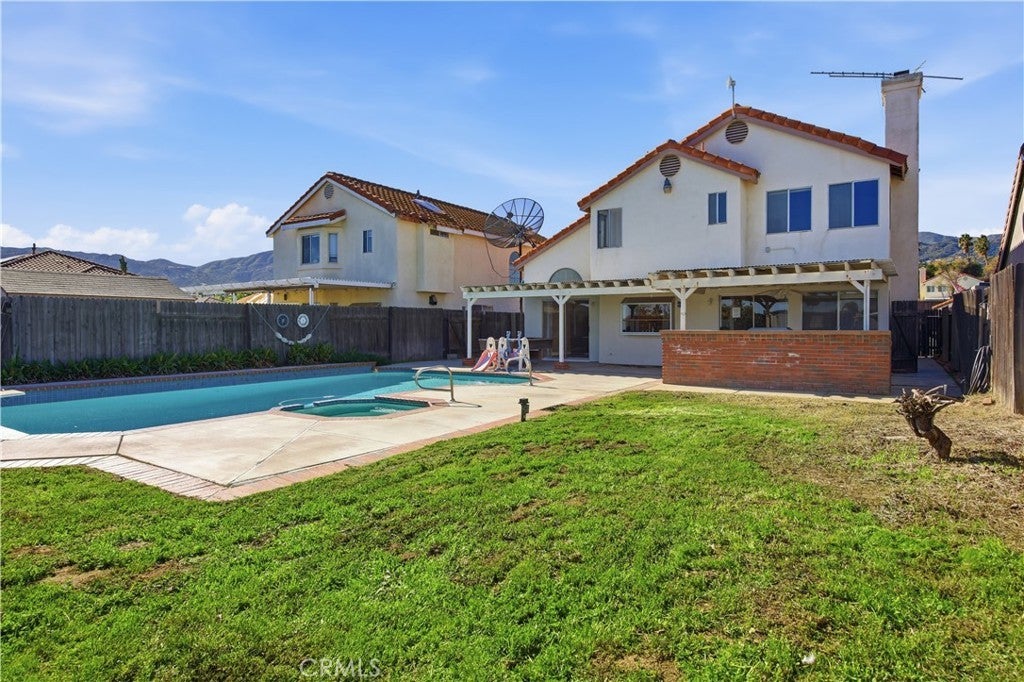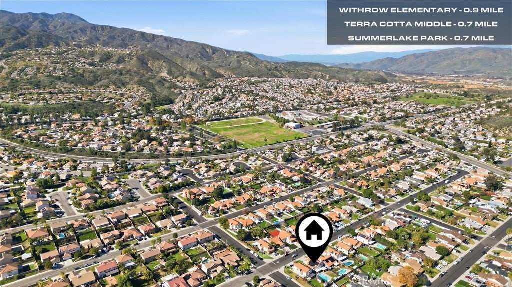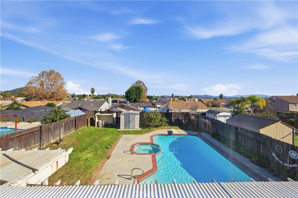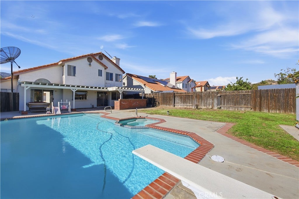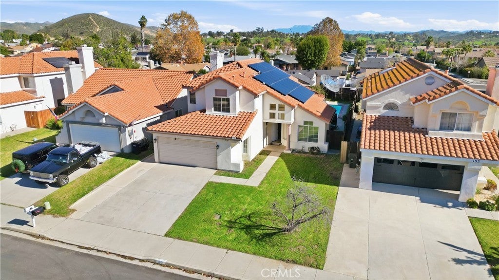 Welcome to this charming spacious 4-Bedrooms, 3 Full bath with Olympic Size POOL & PAID-OFF SOLAR Home nestled in the highly sought-after City of Lake Elsinore, known for its Top-Rated Schools and Safe, Family-Friendly neighborhoods, making it perfect for families of all sizes. All New Central HVAC System, Energy saver variable speed Pool Pump, Electric Water Heater, Fresh Interior & Exterior Paint, Mix of Carpet, Tile & Laminate floor throughout. This home also has A whole house fan, Ceiling fans in rooms- an added Bonus on top of the Central Cooling & Heating System! Attached double car garage has 240v Fast Charging option, EV Plug-in-Ready Outlet to charge all current Electric Vehicles on the market. Excellent choice for Current & Future Electric Vehicle Owners. Strategically designed 1 bedroom & 1 full bathroom with double doors on the first floor, perfect for guests or a home office. The ample sized primary suite provides views of the lush backyard- Private Pool & Mountain view! The open floor plan boasts vaulted ceilings throughout the living and dining area. The spacious family room, complete with fireplace, flows seamlessly into a generously sized area, ideal for family gatherings. Walk through the sliding glass door from the family room, you are greeted by a very large sized covered patio structure with ceiling fan, a sparkling pool, BBQ area with sink to entertain large crowd on the weekends and to enjoy pool party on summer days with outdoor misting system to cool the entire patio area. Enjoy breathtaking view of the Mountain from the Front and Back of the home. Some Fruit Trees are in the backyard and front yard of the Home. Low Property Tax, NO MELLO ROOS & NO HOA! 28 Panels SOLAR that is PAID OFF! NO LEASE to Deal with!! A wonderful opportunity for first-time buyers. Don’t miss the opportunity to make this charming residence your forever home!