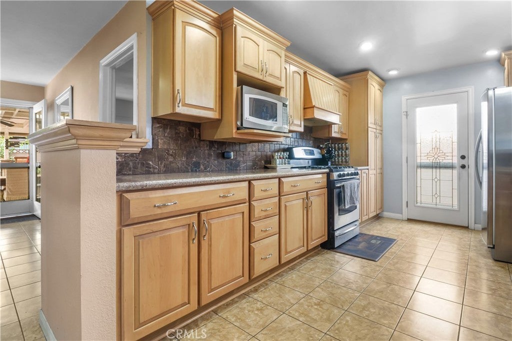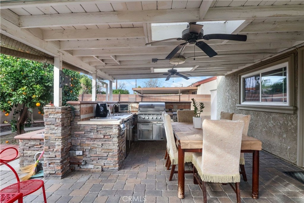 You've found it! This well-maintained 4-bedroom Buena Park home offers comfortable indoor-outdoor Southern California living. The spacious living room features a wood-burning fireplace and energy-efficient double-pane windows. The primary bedroom includes hardwood flooring, walk-in closet, and upgraded bath. The kitchen offers functional upgrades including pull-out pantry drawers, double-drawer dishwasher, and matching stove. Outdoor features include a covered patio and built-in outdoor kitchen with barbecue range and sink, plus landscaped front and back yards with automatic sprinklers. Mature fruit trees include four cherimoya trees, a Golden Nugget orange tree, guava tree, and two peach trees. Conveniently located near freeways, schools, shopping, dining, parks, and recreational amenities. Buyer to verify all information including square footage, permits, and property features.