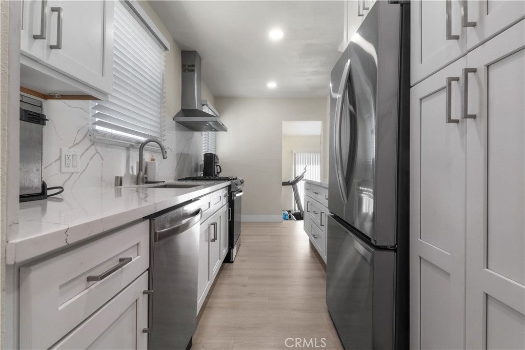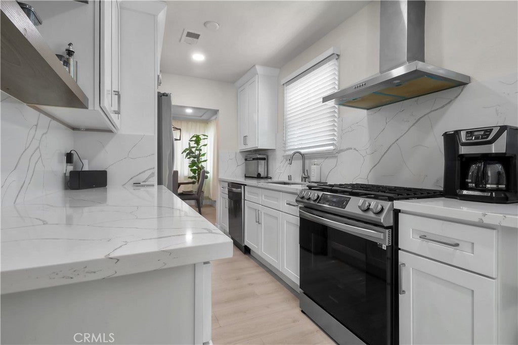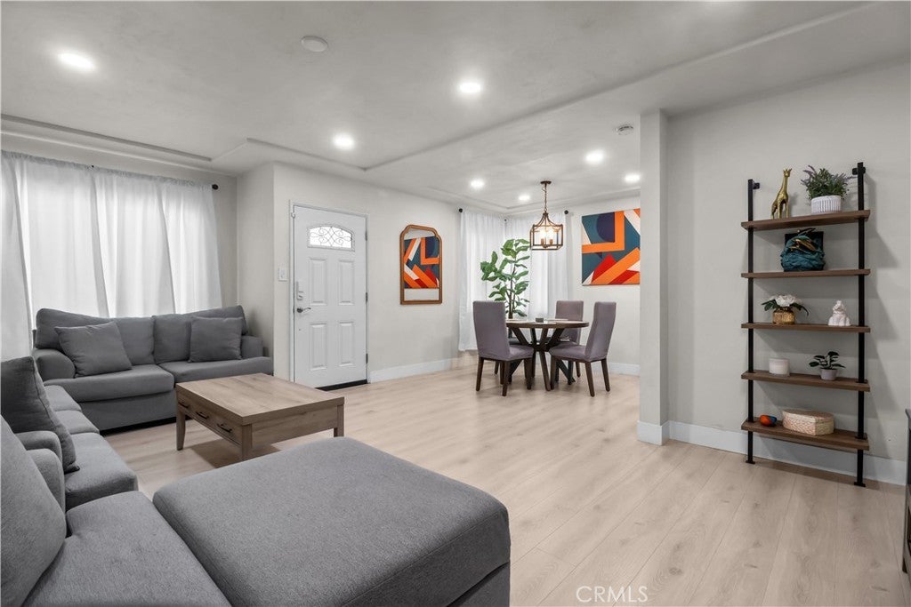 Welcome to the beautiful community of Long Beach! This charming home offers 3 bedrooms, 1 bathroom, and 1,227 sq.ft of comfortable living space. The open-concept living and dining area features recessed lighting and creates a warm, inviting atmosphere perfect for both relaxing and entertaining. The modern, remodeled kitchen showcases white shaker-style cabinets with ample storage, recessed lighting, and elegant quartz countertops with gray veining. Stainless steel appliances, including a gas stove and range hood, complete the space while a matching quartz backsplash adds a seamless and cohesive design touch. A spacious den provides flexible living options—ideal for a home office, guest room, or potential bedroom. Engineered wood flooring runs throughout the home with the exception of bathrooms, adding both style and durability. The remodeled bathroom features quartz countertops and a beautifully updated walk-in shower. Additional highlights include double-pane windows and a fully paid solar panel system for enhanced energy efficiency and long-term savings. The house also comes with a new EV charger and white vinyl fencing. Don’t miss this incredible opportunity to own a thoughtfully upgraded home in Long Beach!