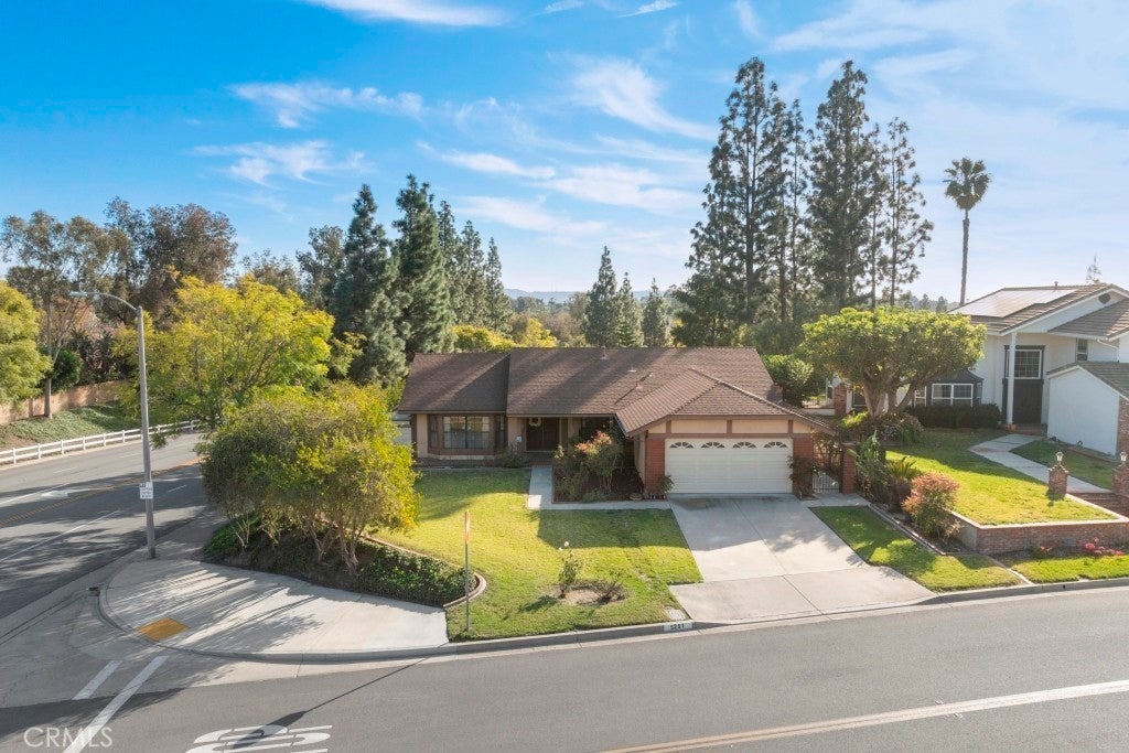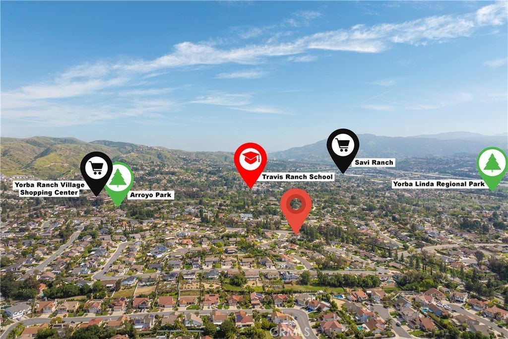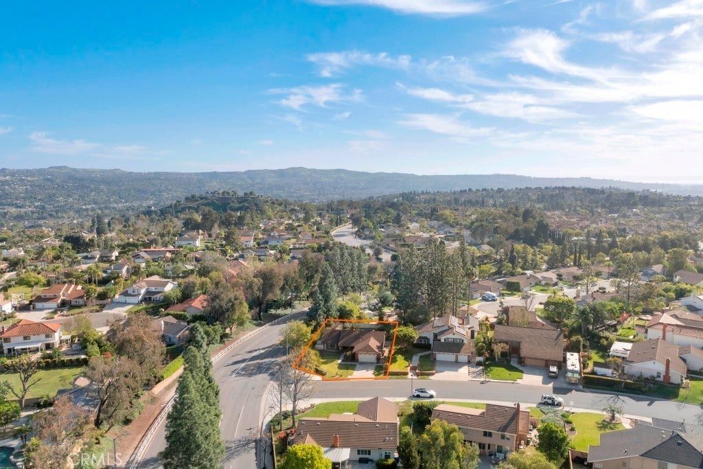 Nestled in the Travis Ranch neighborhood of Yorba Linda, this charming property is situated on an elevated hillside with beautiful mountain views, walking-horse trail and mature tree-lined streets — offering a perfect blend of comfort, space, and scenic surroundings. NO HOA! Step inside to a welcoming living room featuring high vaulted ceilings and a cozy fireplace, creating a bright and inviting space ideal for relaxing or entertaining. Designed for both comfort and functionality, the home also offers a separate family room and a dedicated dining room, providing flexible spaces for gatherings and daily routines. The kitchen and living areas overlook the spacious backyard, offering peaceful views of lush greenery and fruit trees — perfect for gardening enthusiasts or for enjoying your own private outdoor retreat. The oversized lot provides exceptional potential for outdoor living and entertaining. With its elevated setting and generous yard, this property captures both privacy and picturesque surroundings. Enjoy close proximity to Yorba Linda Regional Park, with its trails, lakes, and picnic areas, as well as Travis Ranch School, a highly regarded TK–8 campus serving the neighborhood. Shopping, dining, and everyday conveniences are just minutes away at Yorba Ranch Village Shopping Center and Savi Ranch, offering a variety of retail stores, grocery options, and popular restaurants. Ideally positioned as a gateway to the Inland Empire while still enjoying the charm and community feel of Yorba Linda, this home offers convenient access to major commuting routes, making it an excellent choice for both work and lifestyle balance.